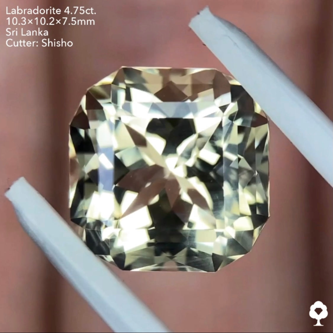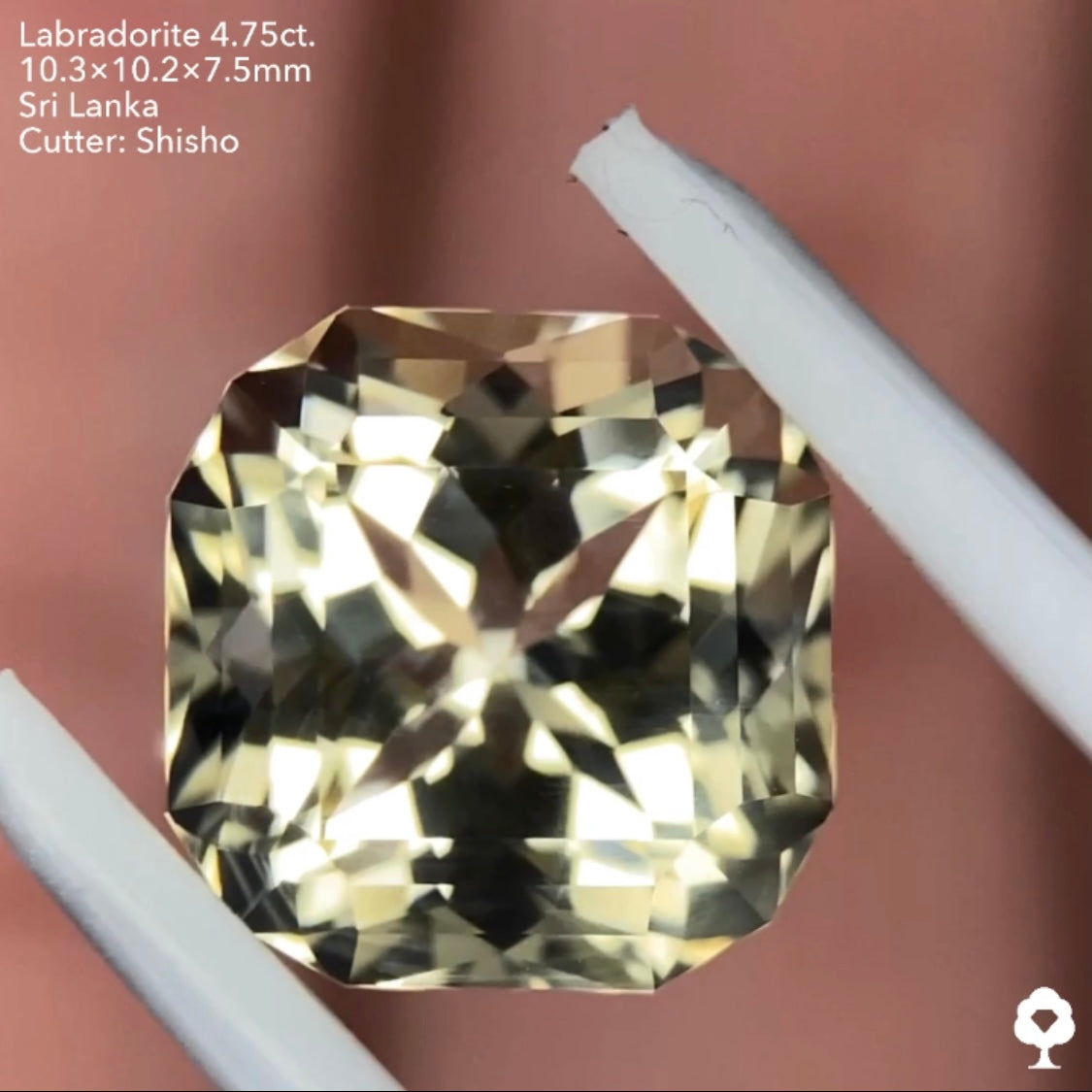 【エレガントカット】角が細かく切られたクロスが浮かぶ3ステップファンシーオクタゴン★ゴールデンラブラドライト4.75ct. 師匠作品
