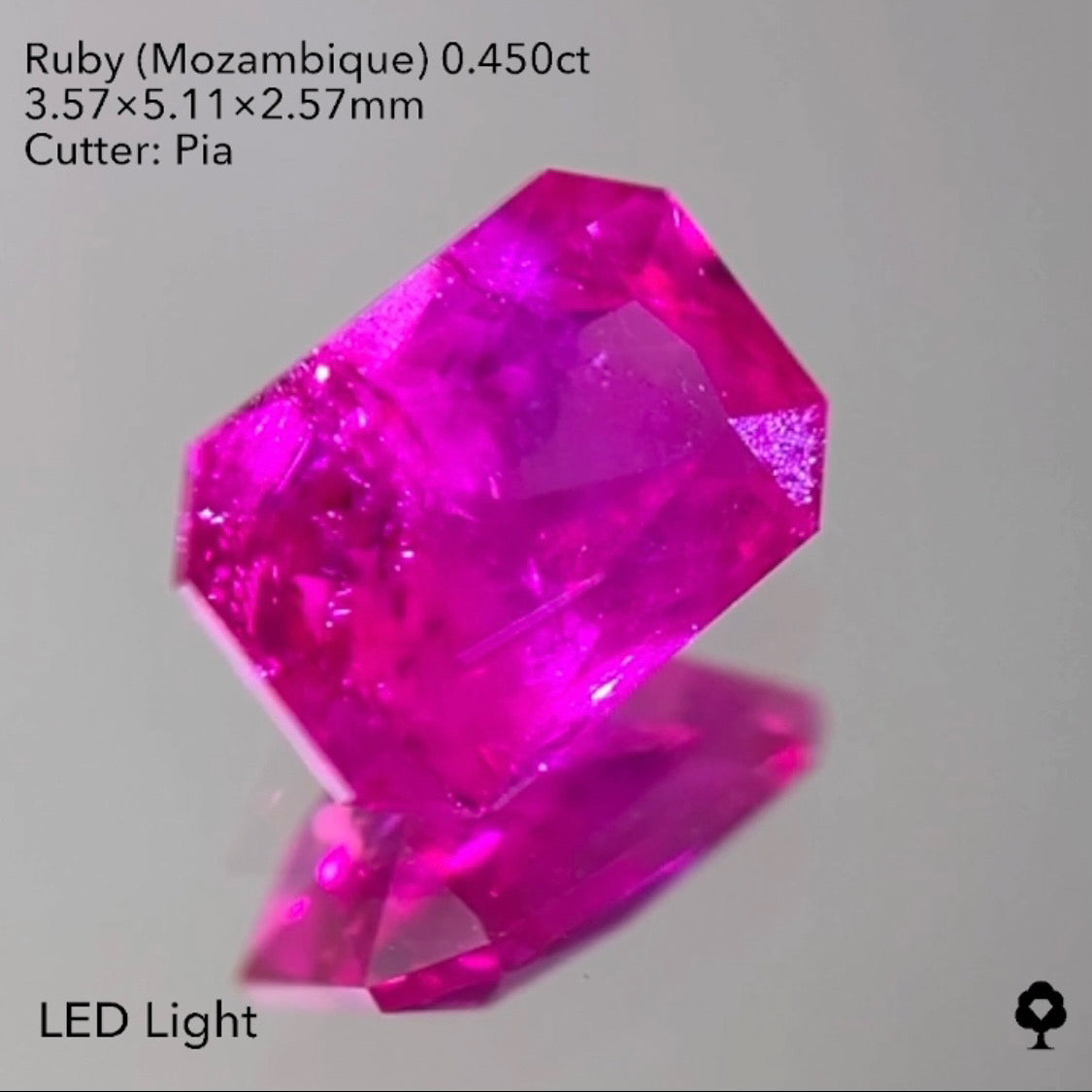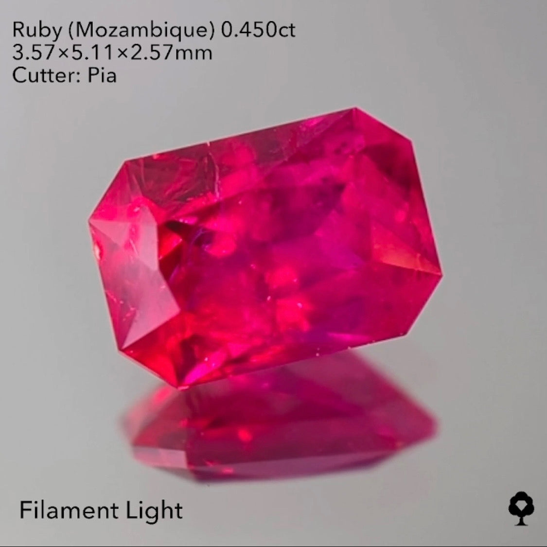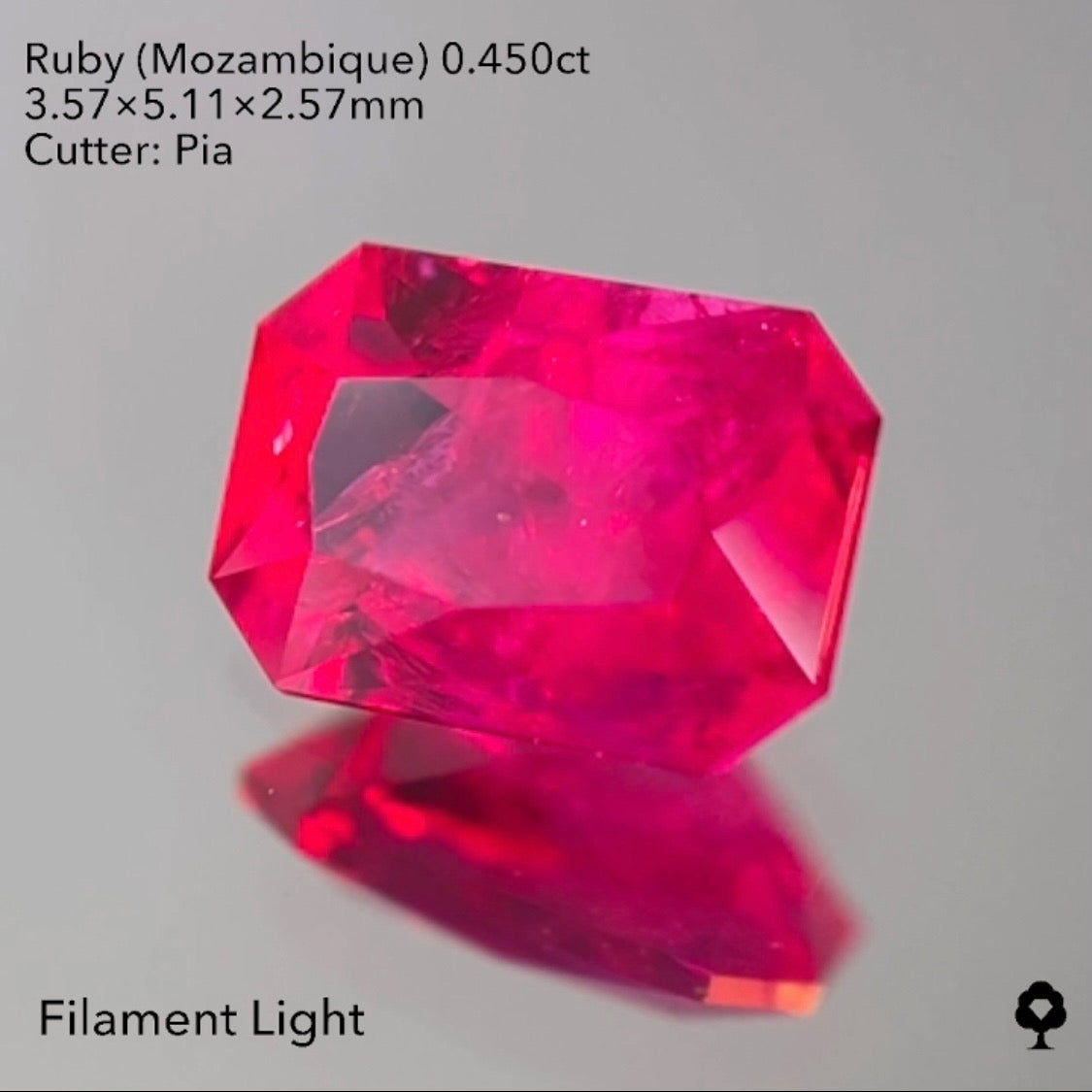 モザンビーク産らしい明るく鮮やかな色合いが美しく、ベールのようなシルクインクルージョンと煌めくシルクインクルージョンがどちらも見られ、角度によっては透明感もある面白い趣のルビーです。