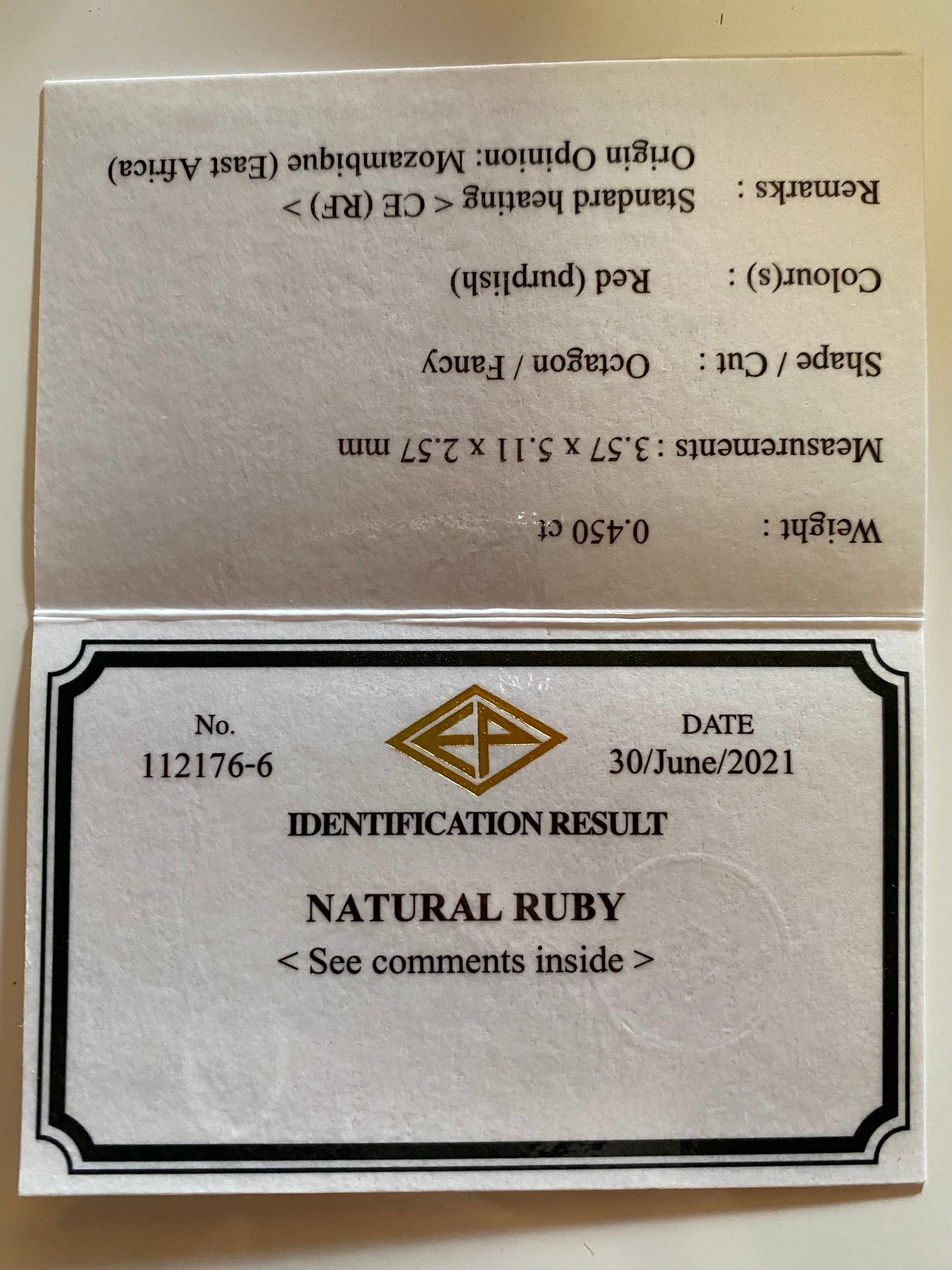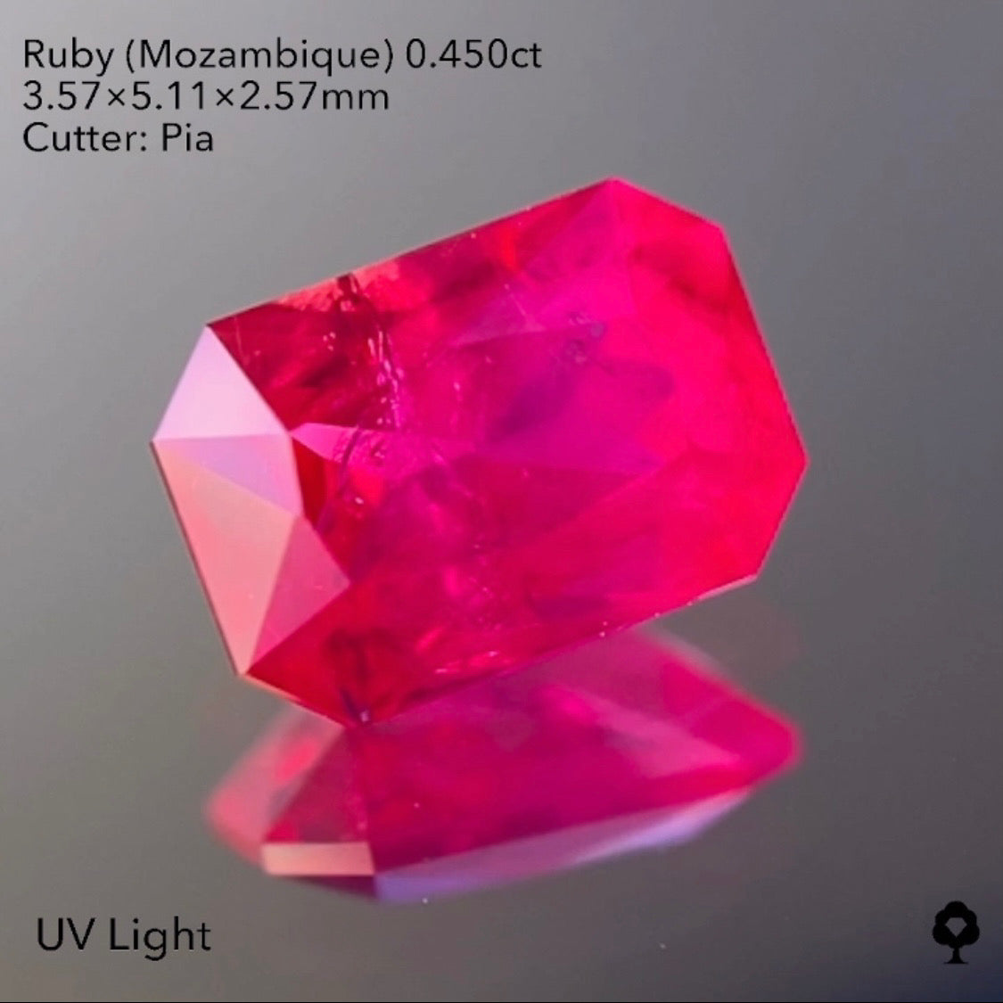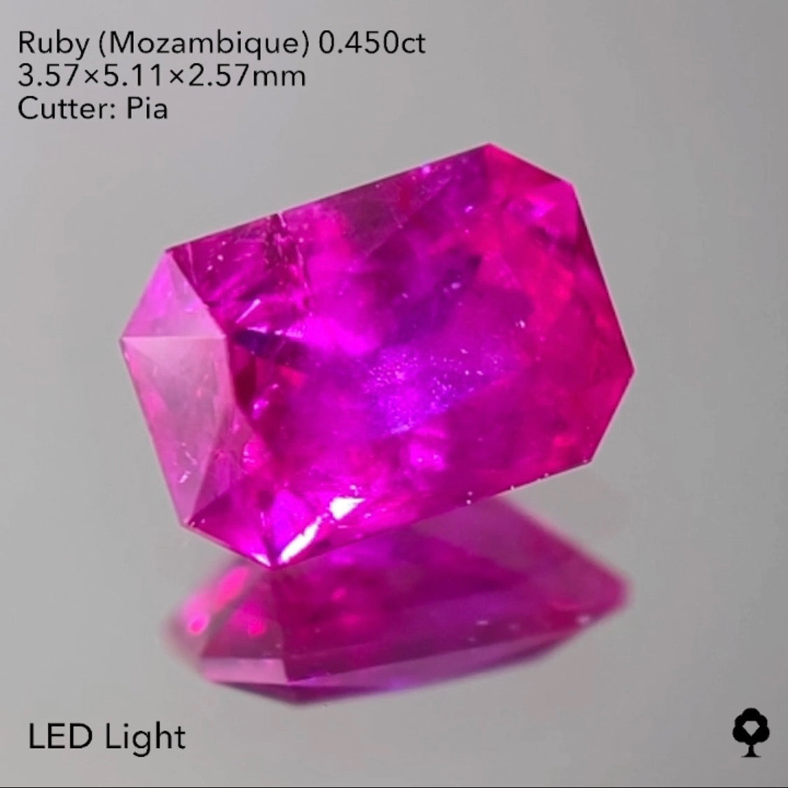 モザンビーク産らしい明るく鮮やかな色合いが美しく、ベールのようなシルクインクルージョンと煌めくシルクインクルージョンがどちらも見られ、角度によっては透明感もある面白い趣のルビーです。