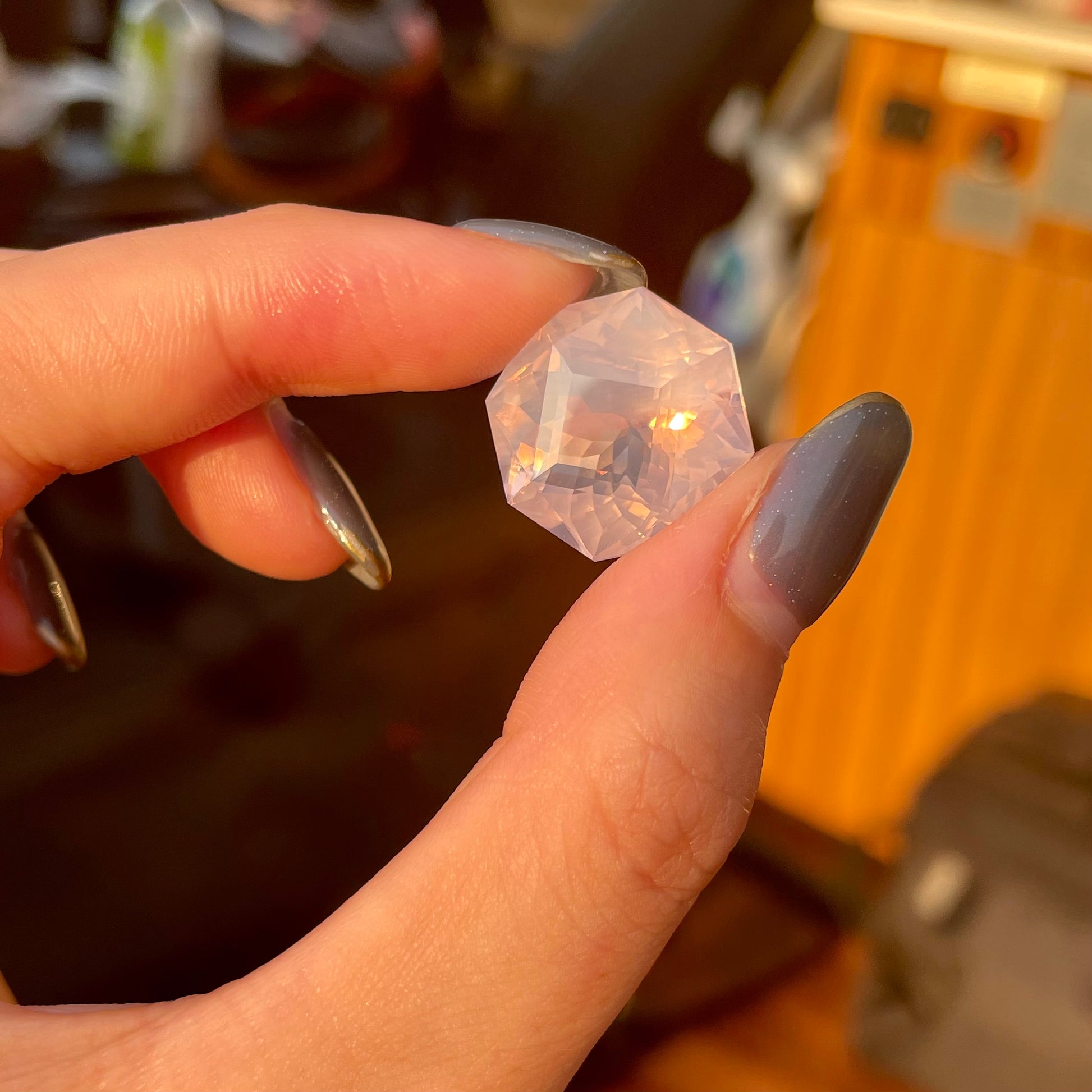 大人気ステップ付きスクエアテーブルの八角形カットで仕上げられたミルキーアメジスト〜👏💜