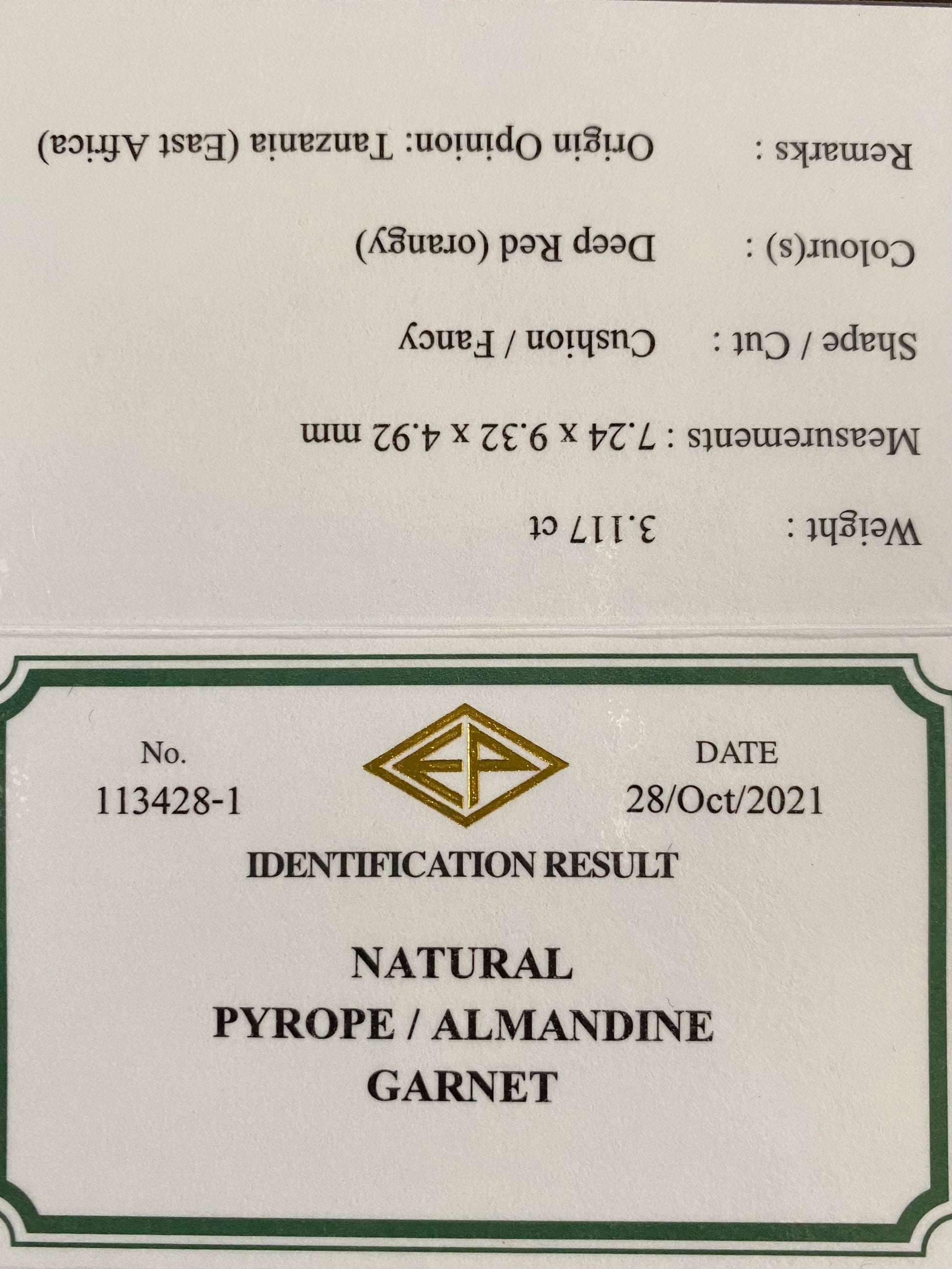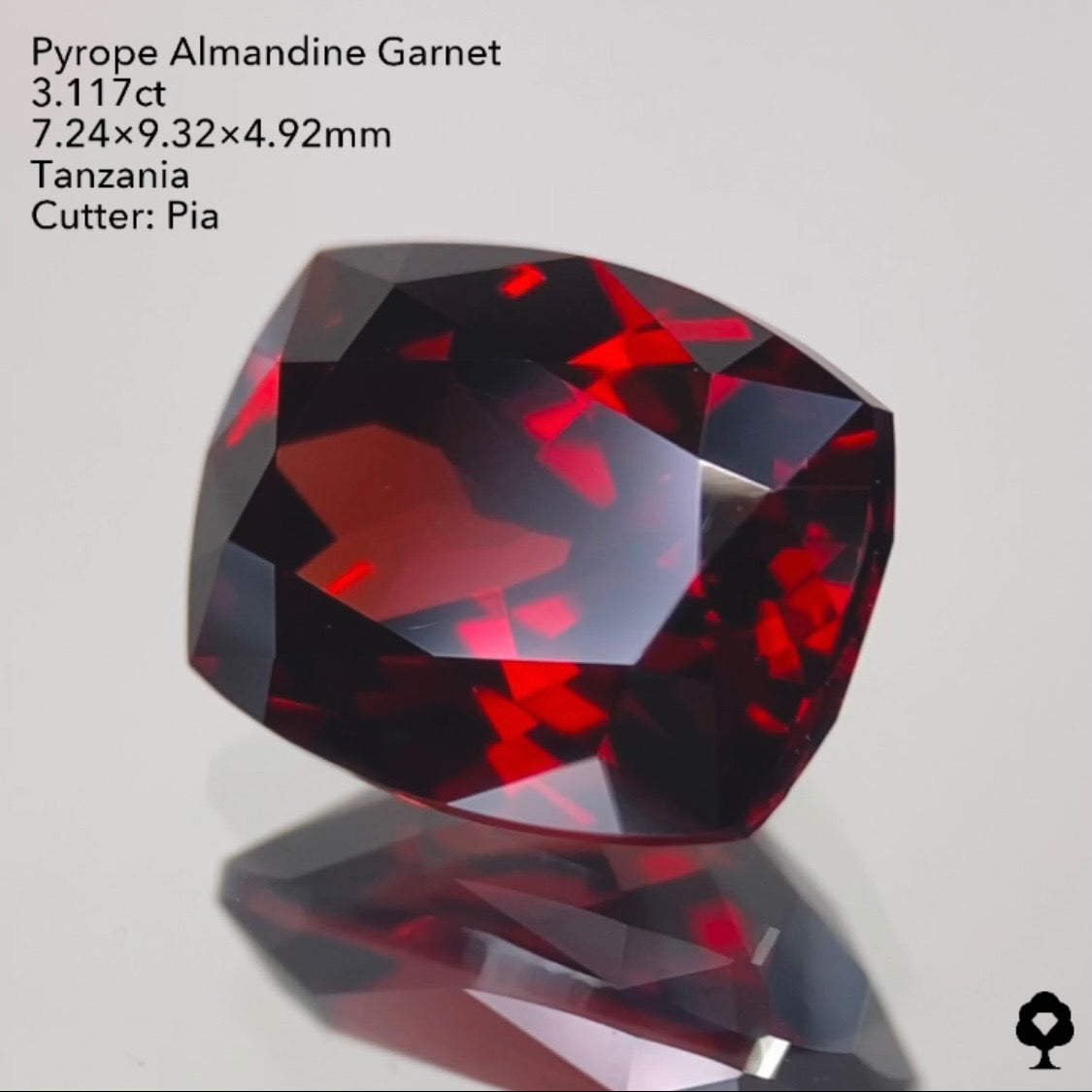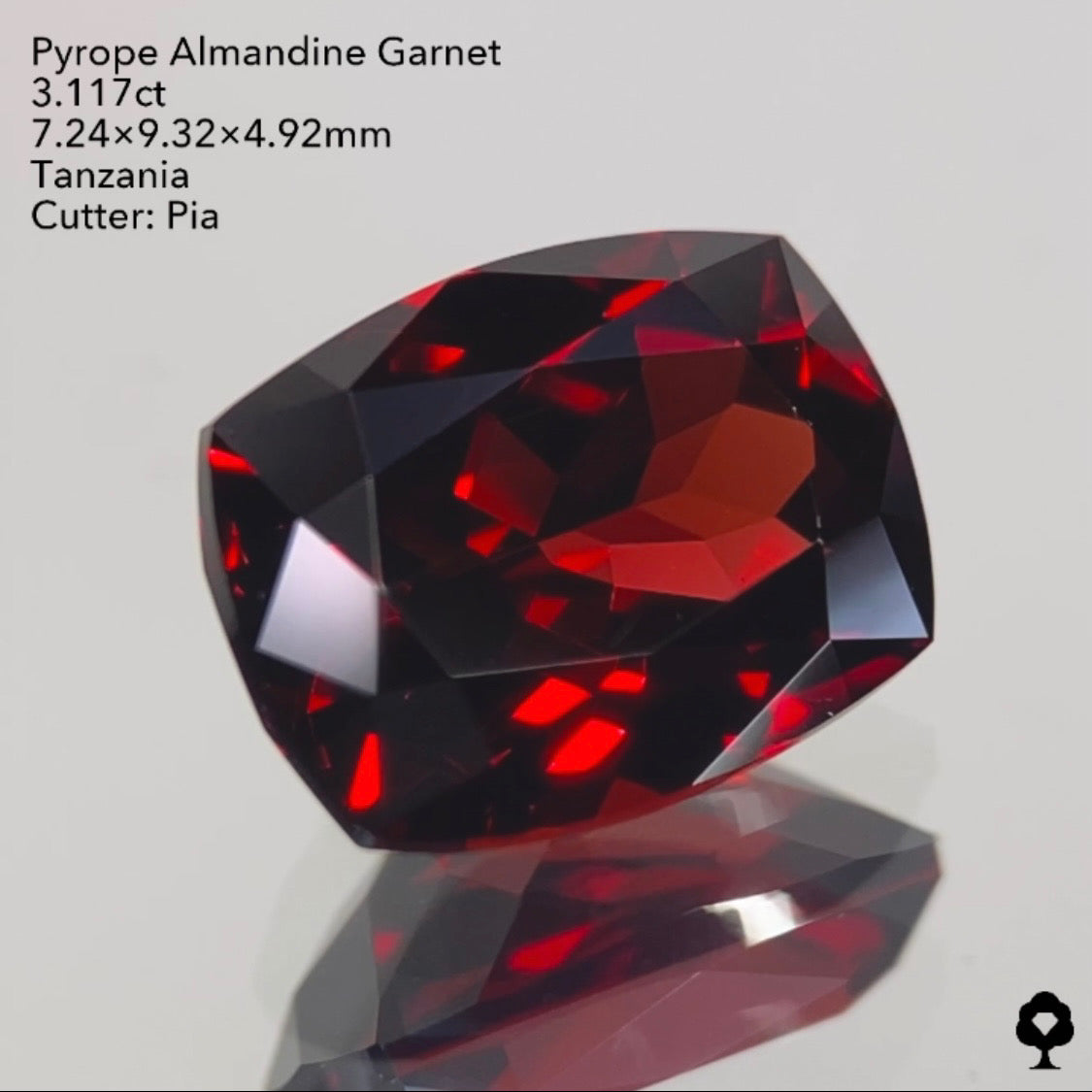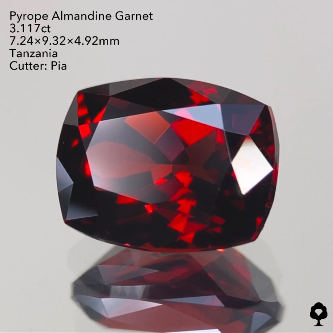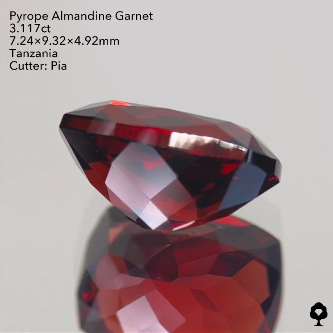 真紅の輝きがたまらない美ロングクッション★パイロープアルマンディンガーネット3.117ct ピアッちゃん作品