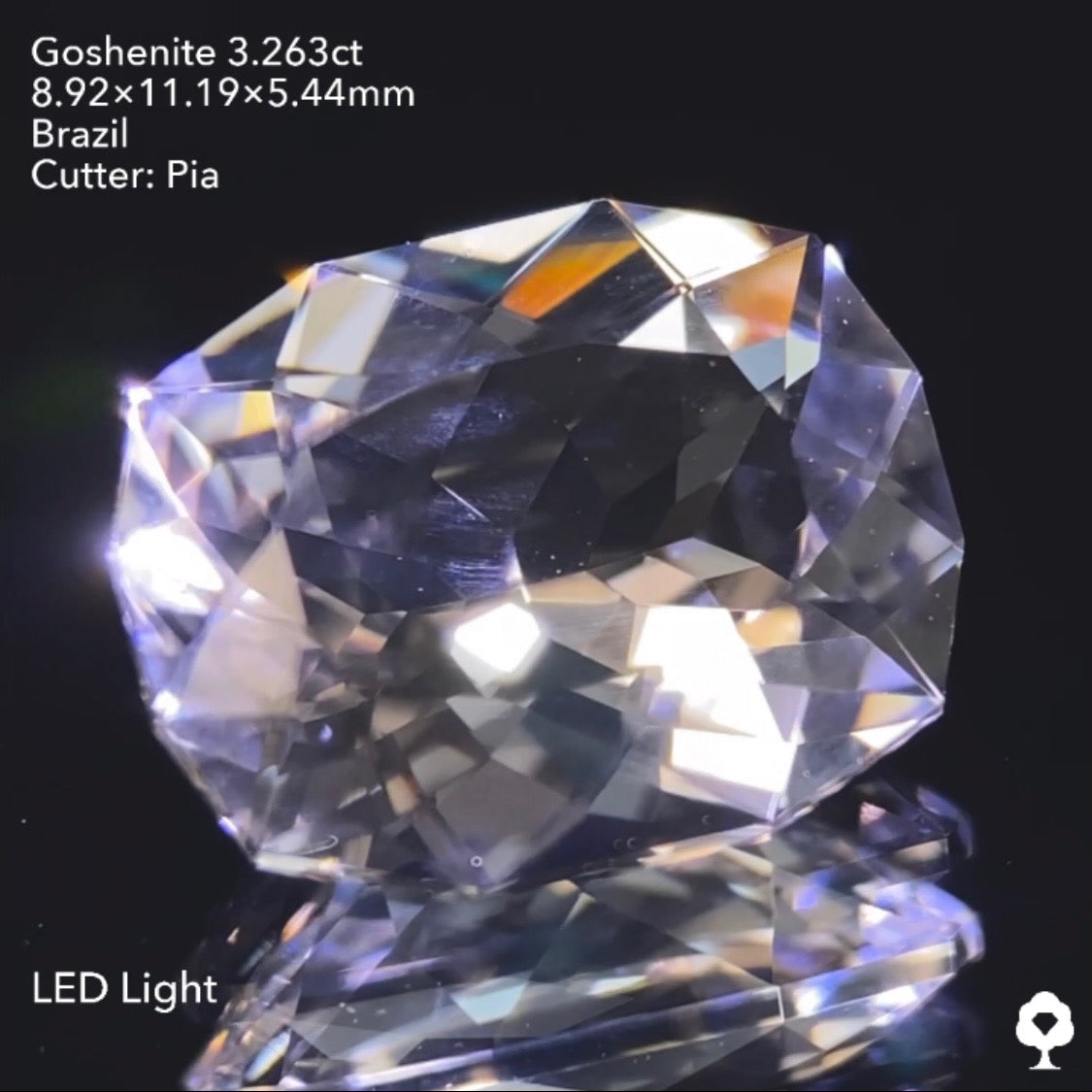 純白で輝き抜群のファンシークッション★ゴッシェナイト3.263ct ピアッちゃん作品