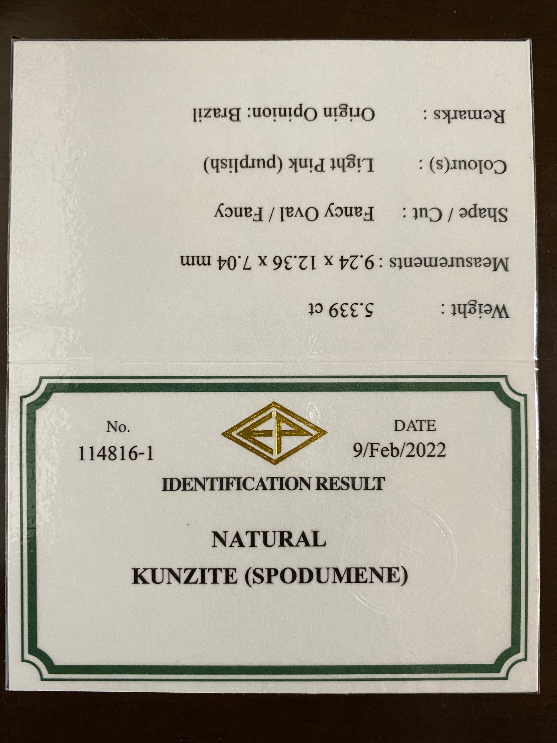 大粒ながら繊細なピンクのキラキラファンシーオーバル★クンツァイト5.339ct ピアッちゃん作品