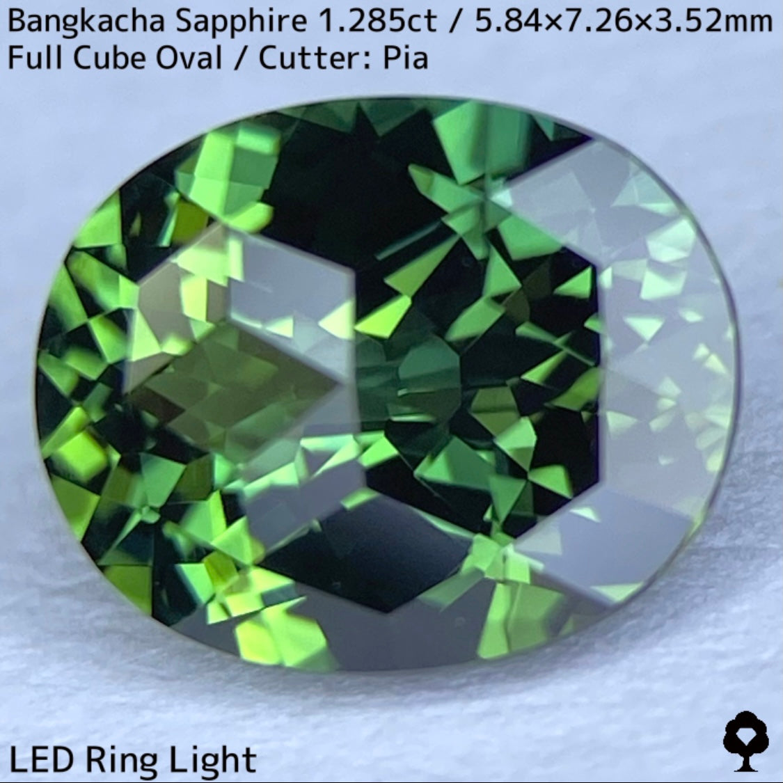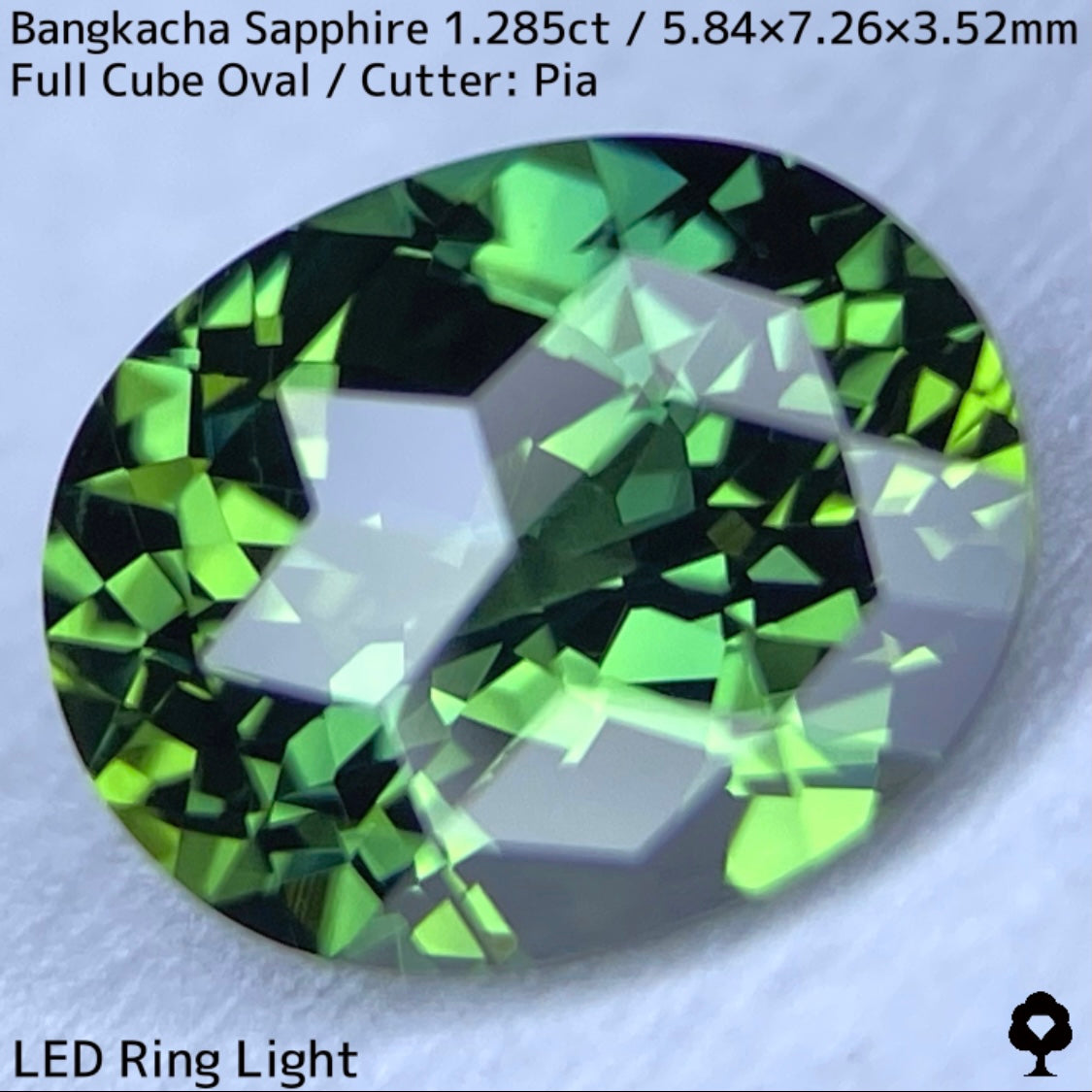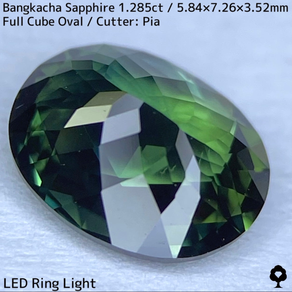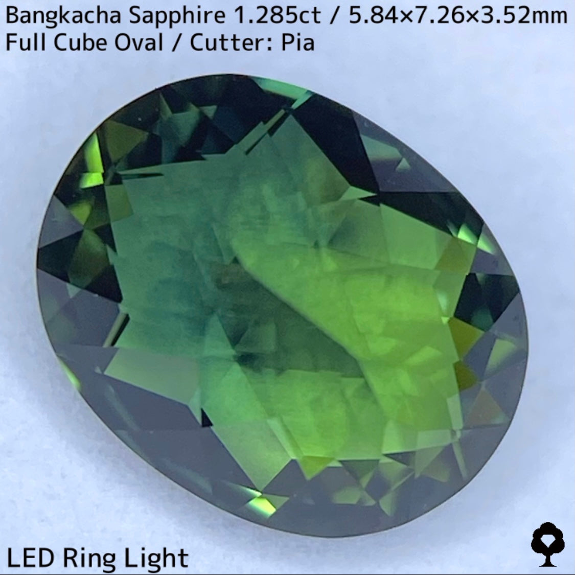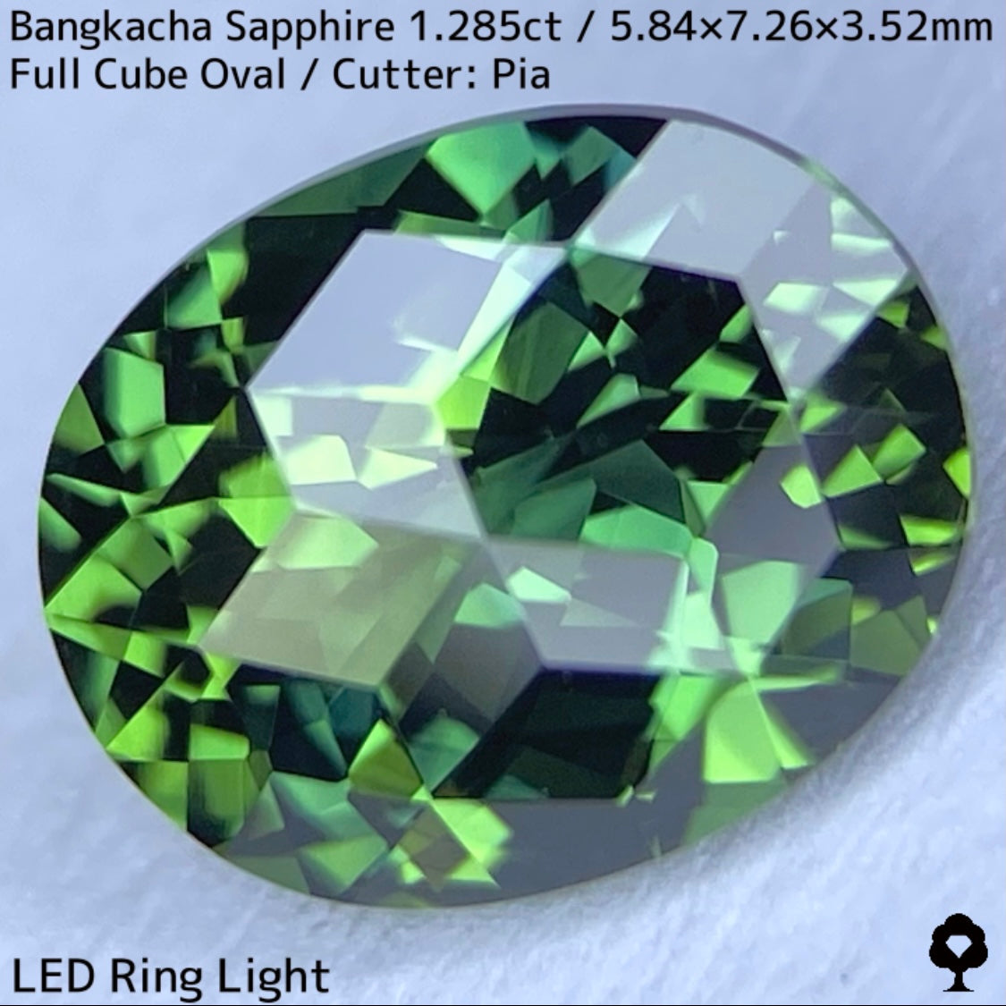 タイ・バンカチャ産サファイア1.285ct★箱のカタチが浮かぶフルキューブカットに仕上げたブルーイッシュグリーンの美結晶