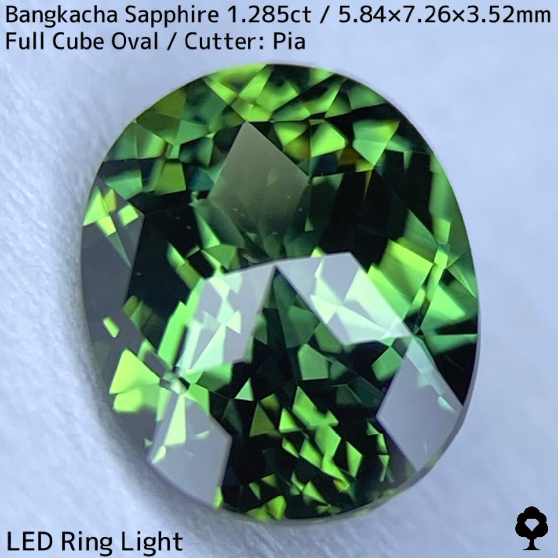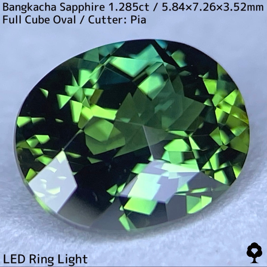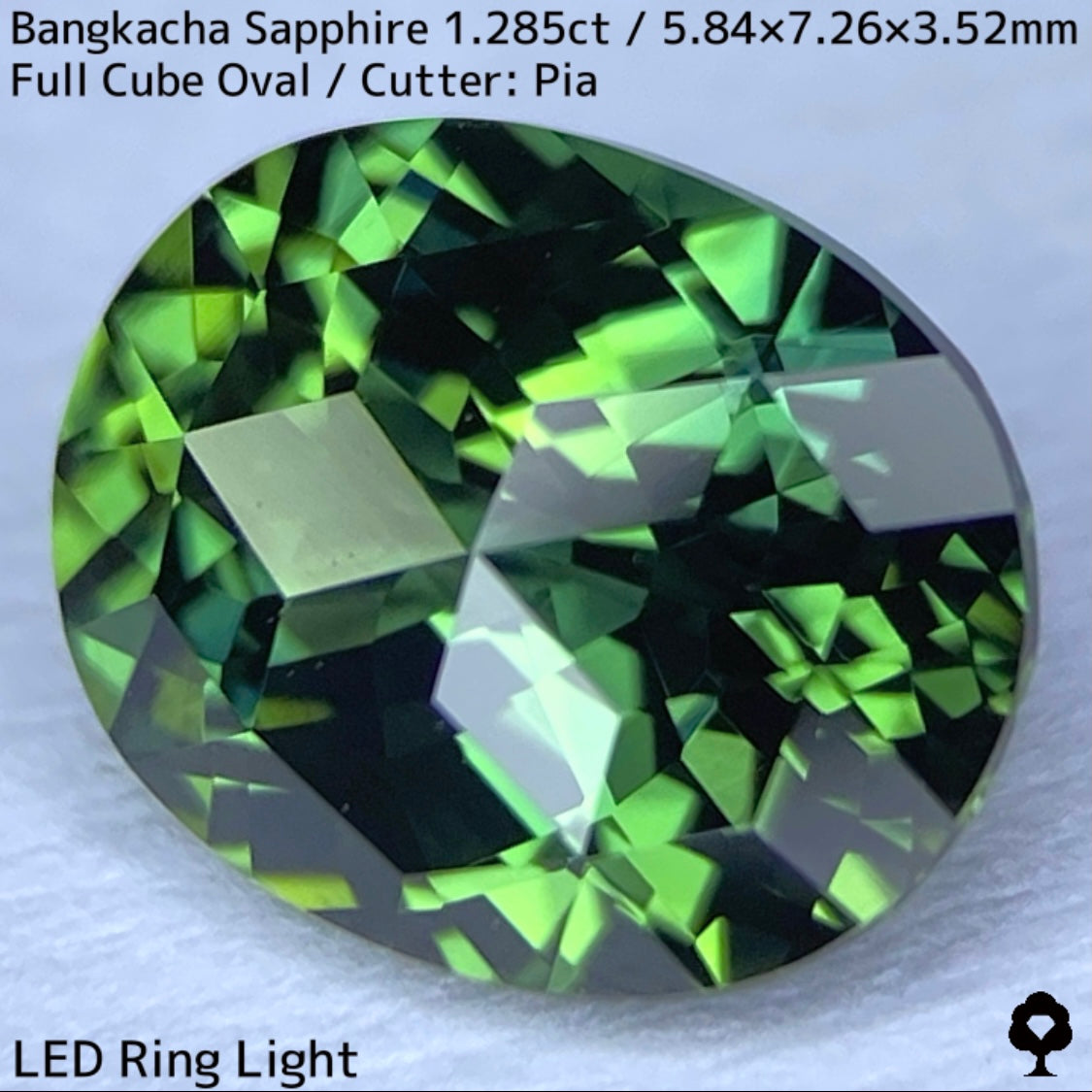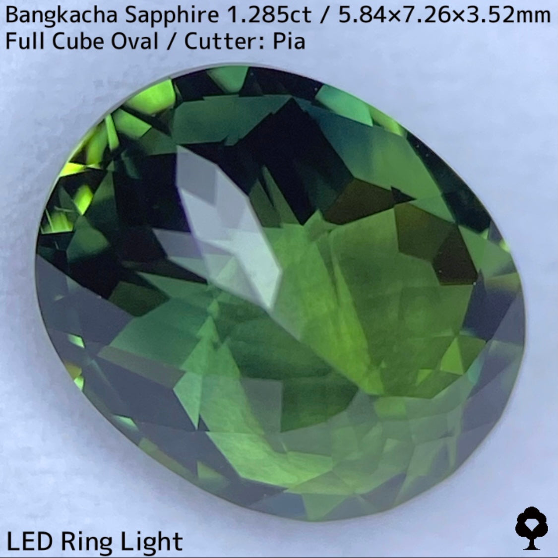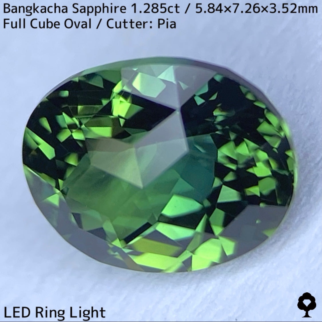 タイ・バンカチャ産サファイア1.285ct★箱のカタチが浮かぶフルキューブカットに仕上げたブルーイッシュグリーンの美結晶
