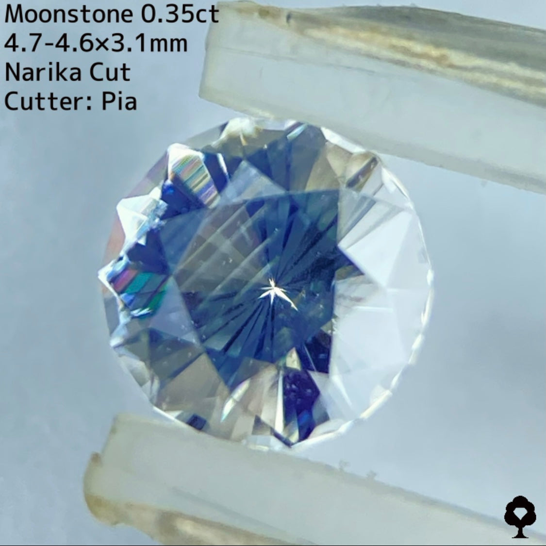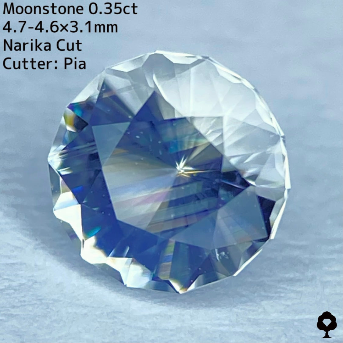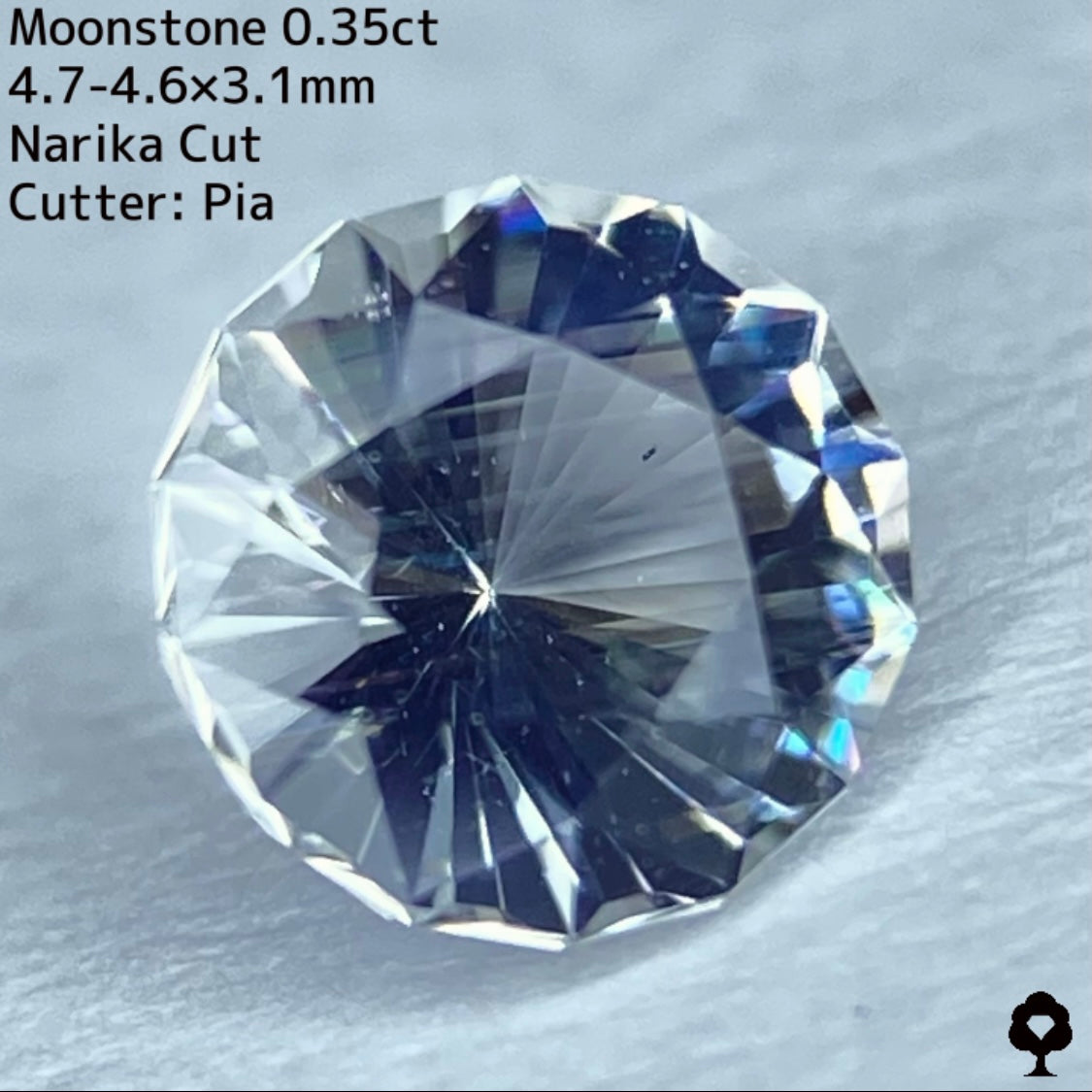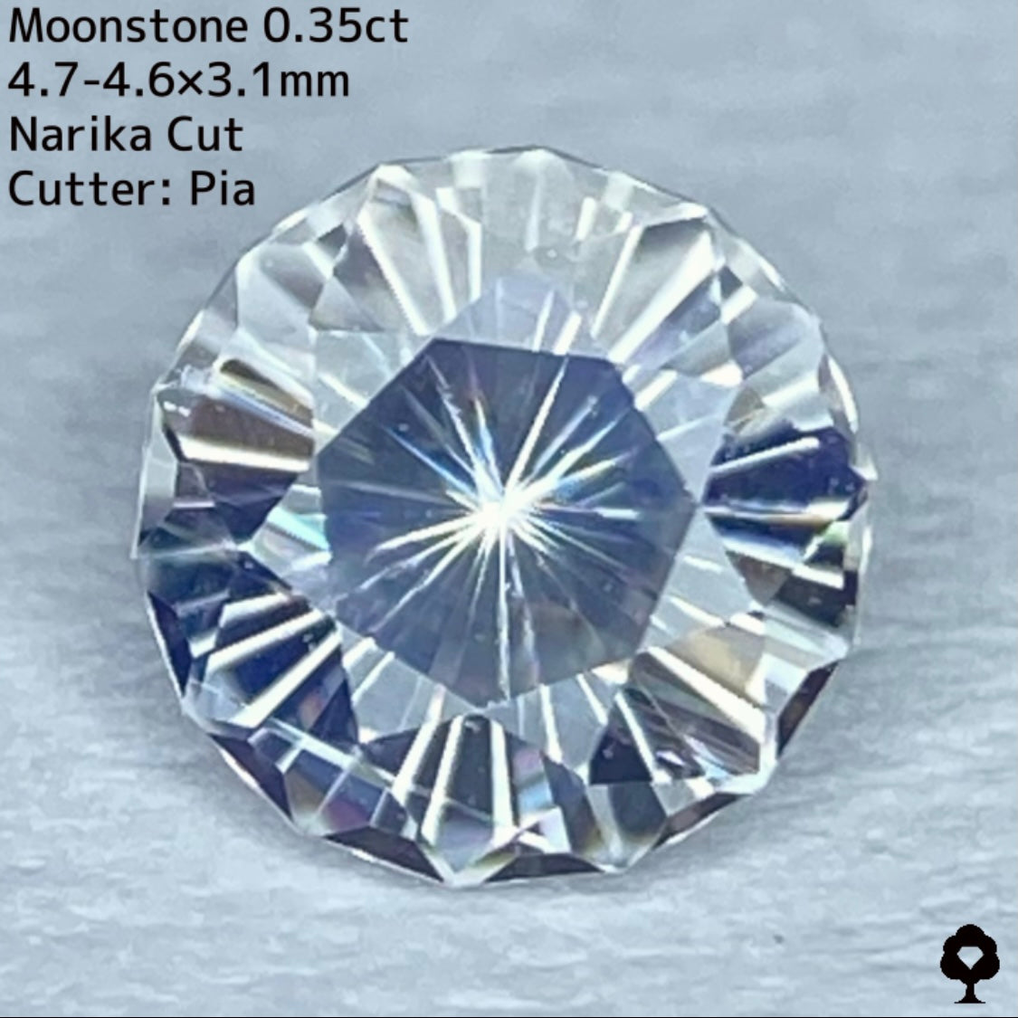 こちらのムーンストーンは、GTJ最新カットのタイ語で時計という意味を持ったナリカーカットで、秒針のような煌めきが中央から放たれ、一見はカラーレスの美しい作品に仕上がっています。