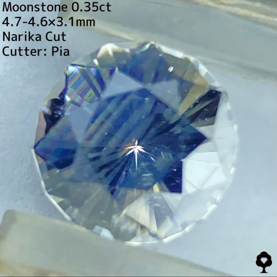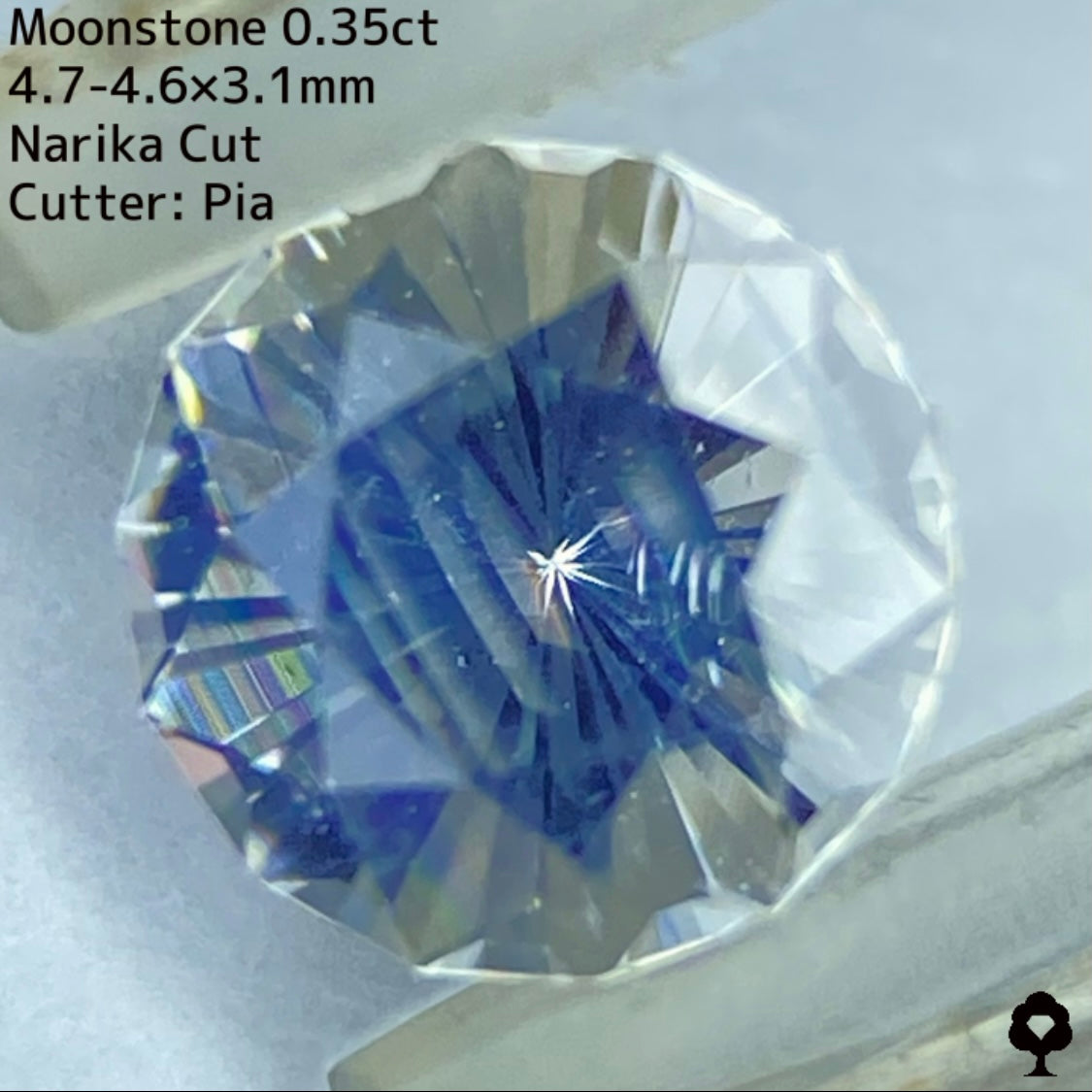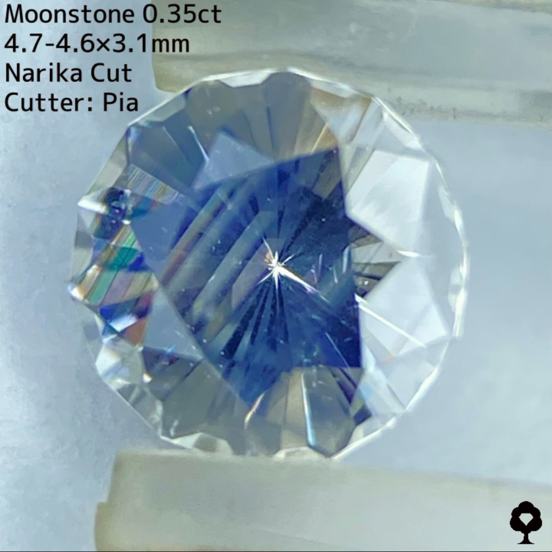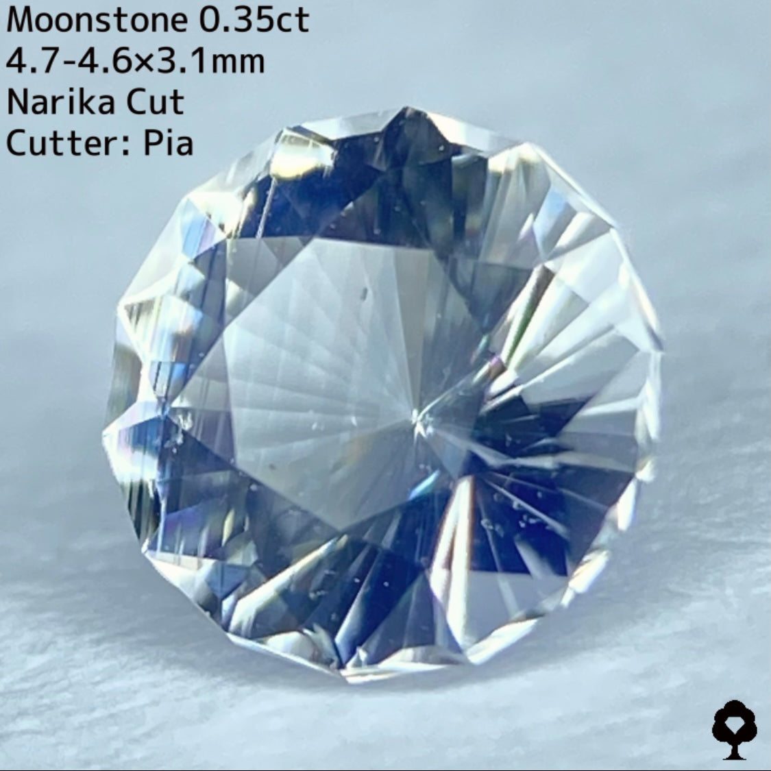 こちらのムーンストーンは、GTJ最新カットのタイ語で時計という意味を持ったナリカーカットで、秒針のような煌めきが中央から放たれ、一見はカラーレスの美しい作品に仕上がっています。