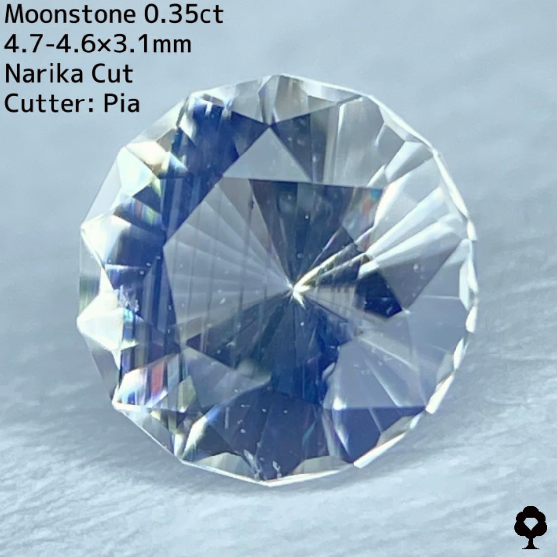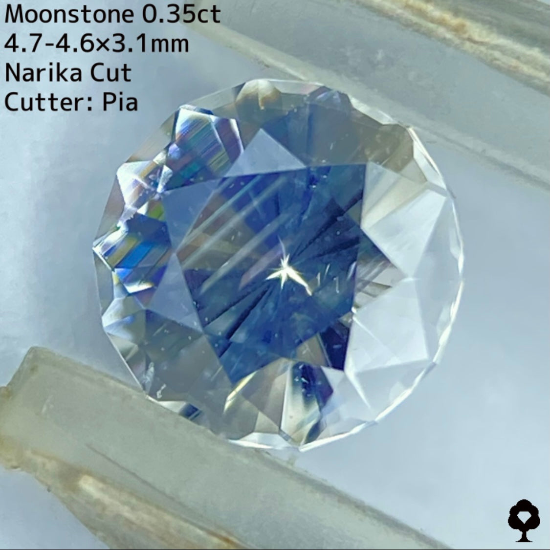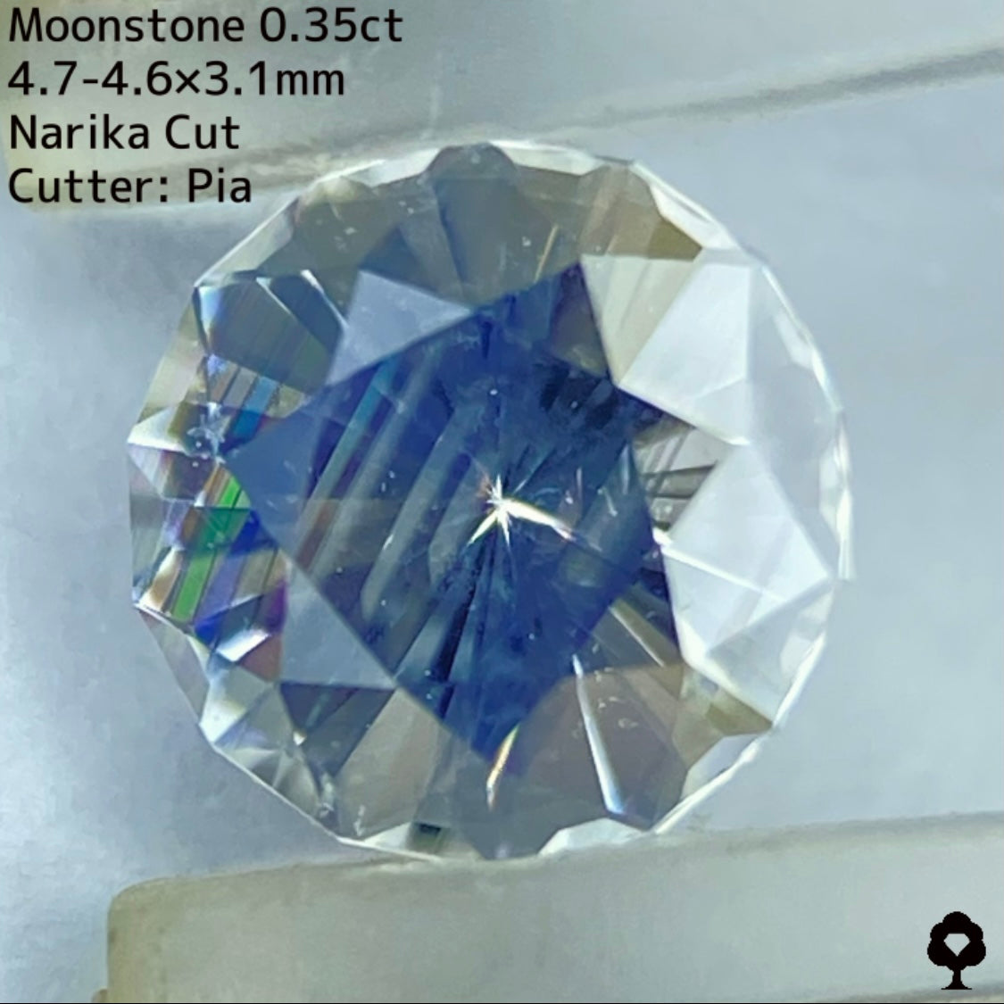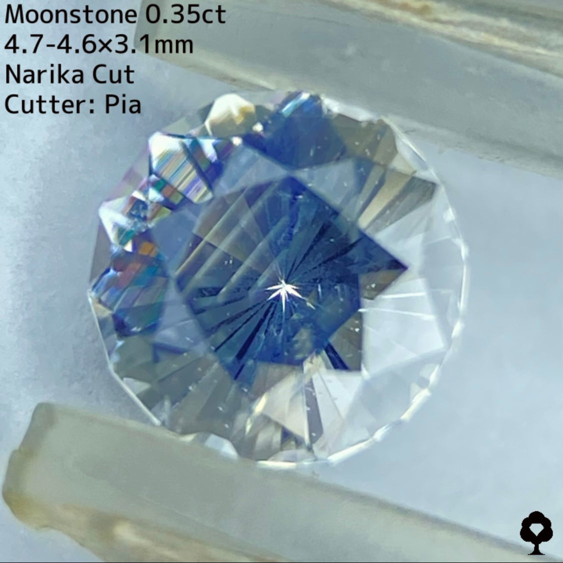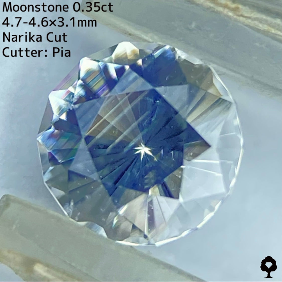 こちらのムーンストーンは、GTJ最新カットのタイ語で時計という意味を持ったナリカーカットで、秒針のような煌めきが中央から放たれ、一見はカラーレスの美しい作品に仕上がっています。