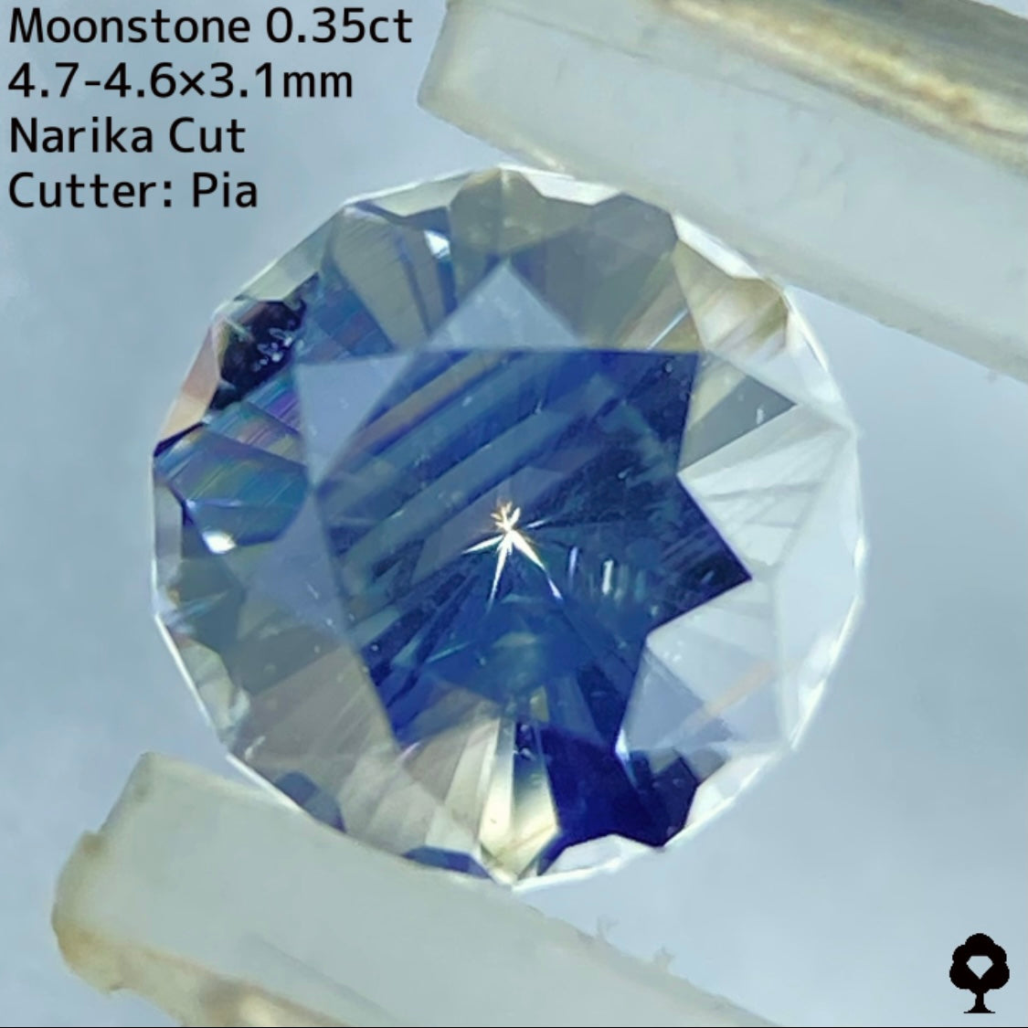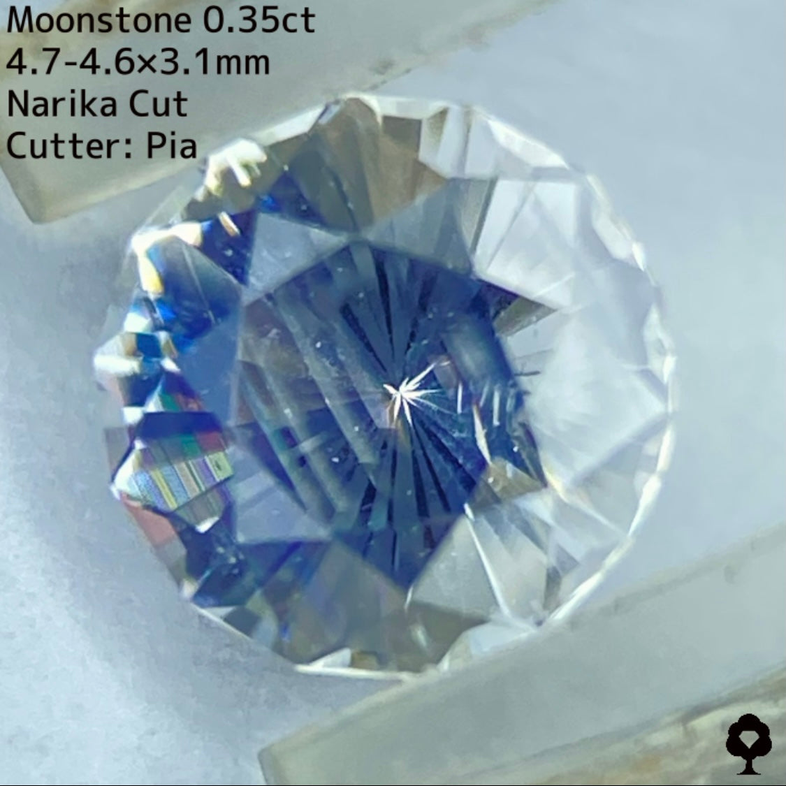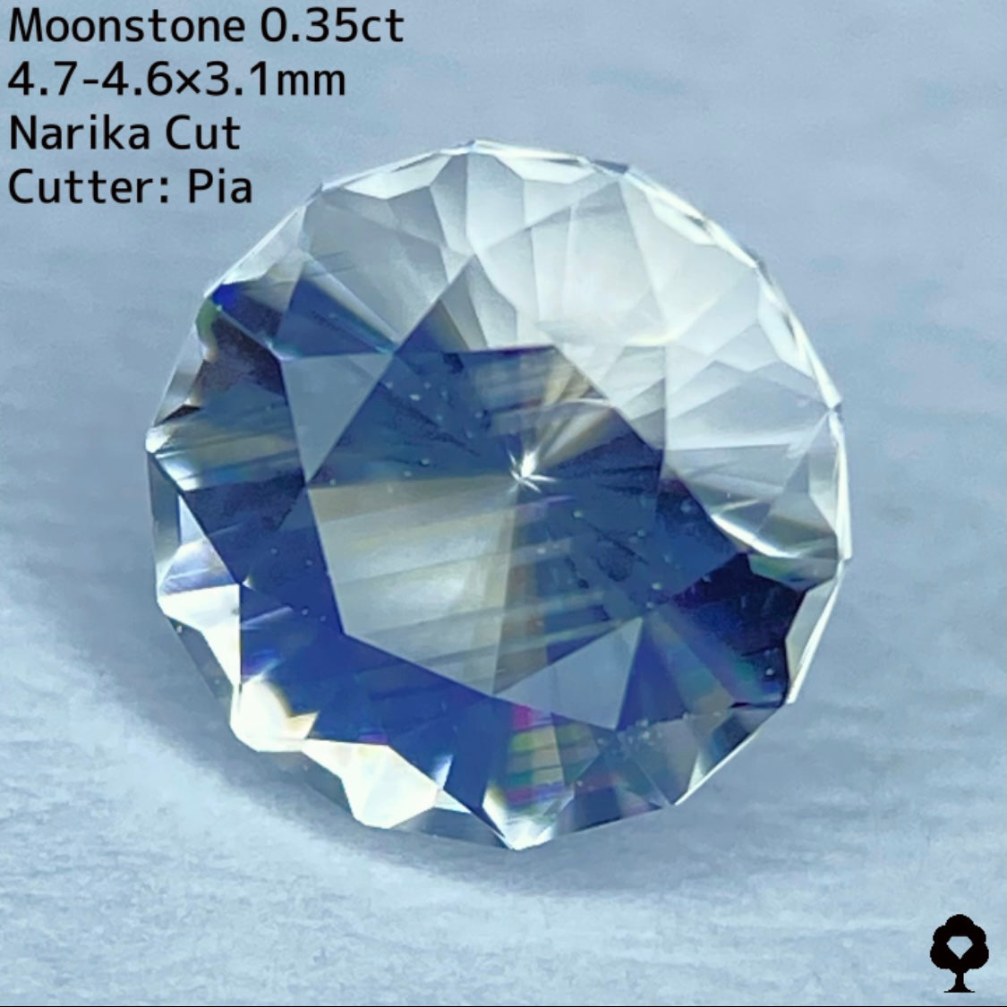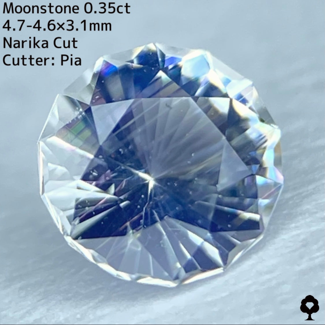 こちらのムーンストーンは、GTJ最新カットのタイ語で時計という意味を持ったナリカーカットで、秒針のような煌めきが中央から放たれ、一見はカラーレスの美しい作品に仕上がっています。