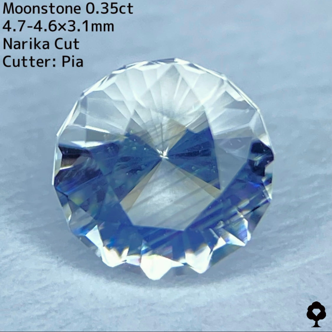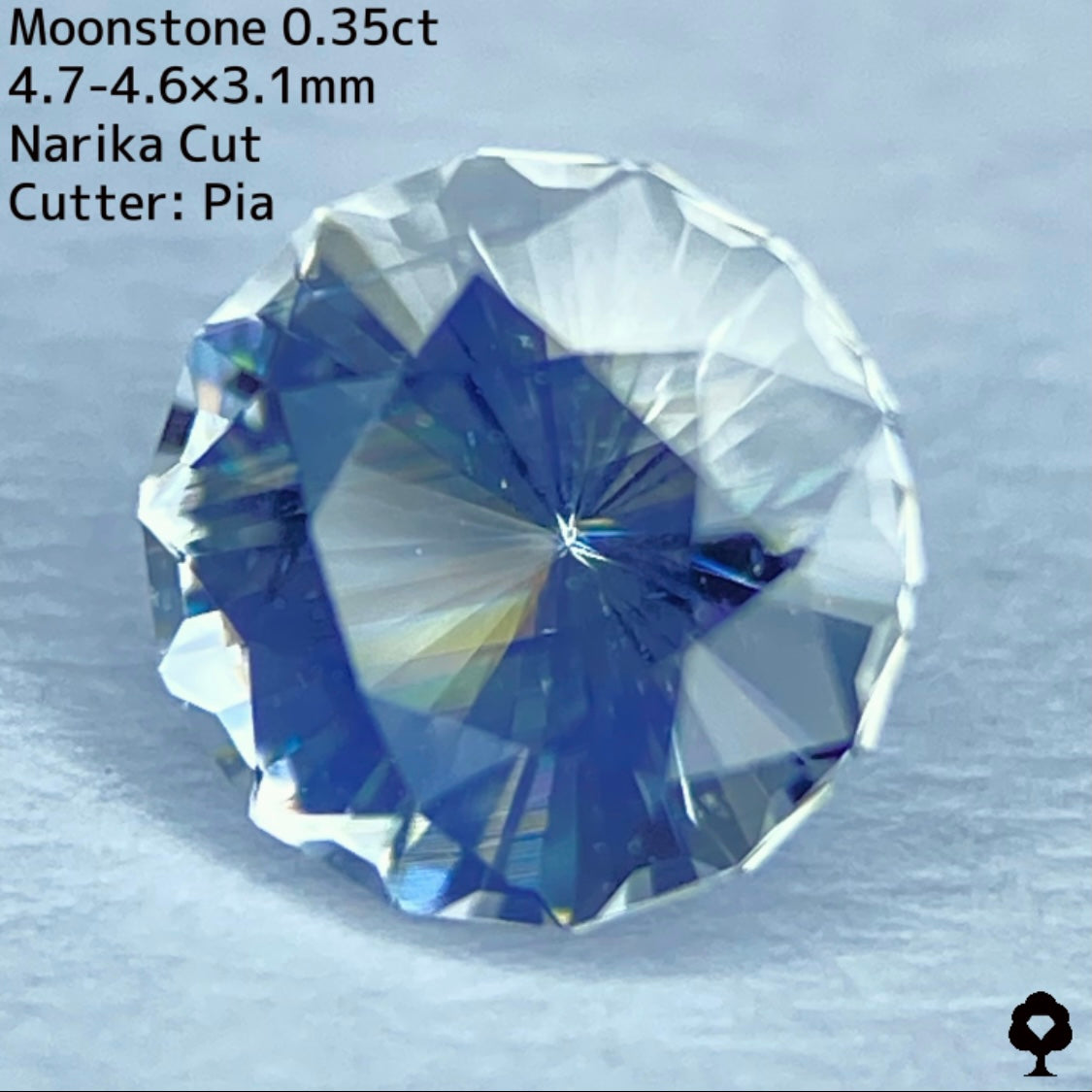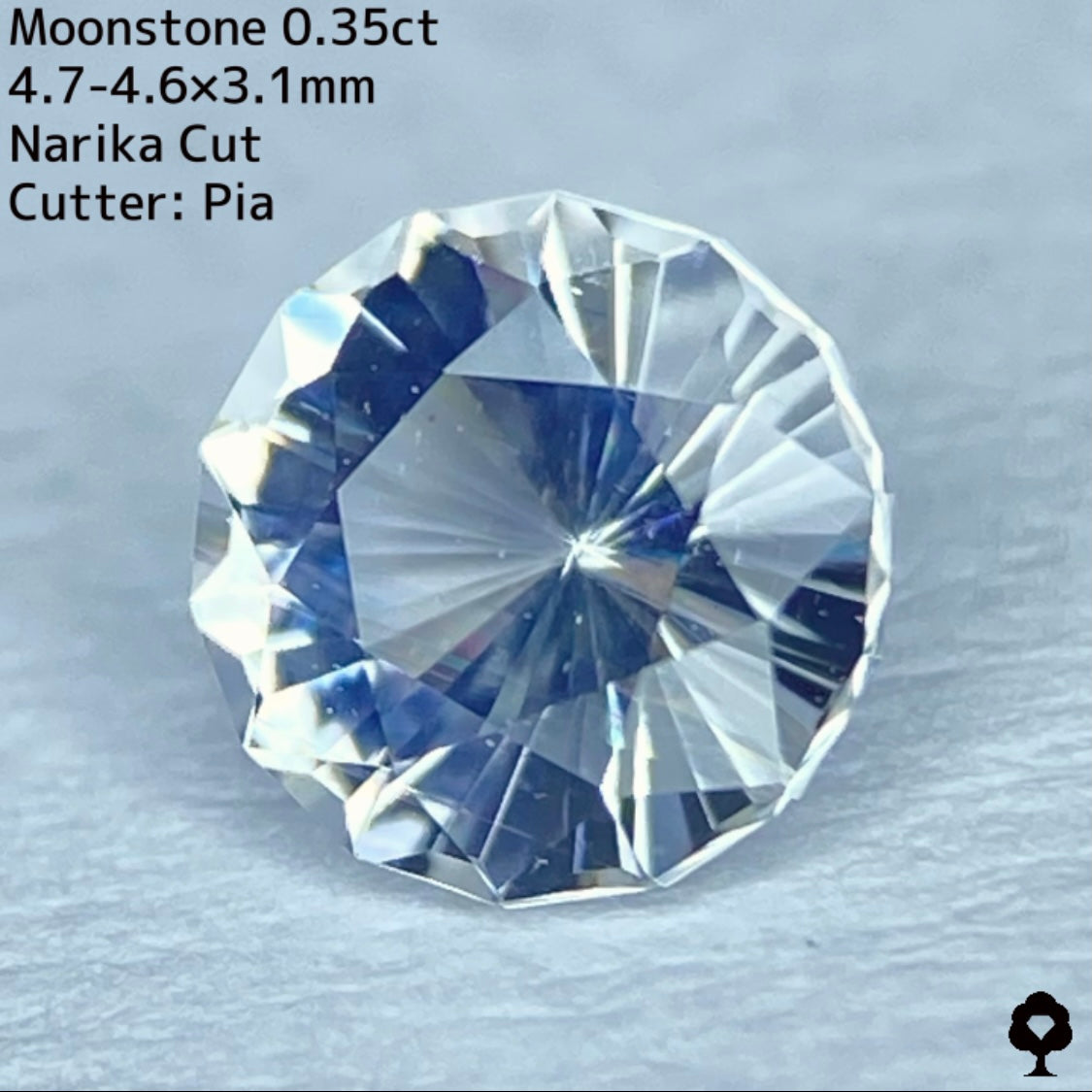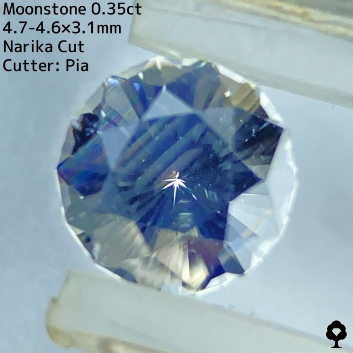 こちらのムーンストーンは、GTJ最新カットのタイ語で時計という意味を持ったナリカーカットで、秒針のような煌めきが中央から放たれ、一見はカラーレスの美しい作品に仕上がっています。