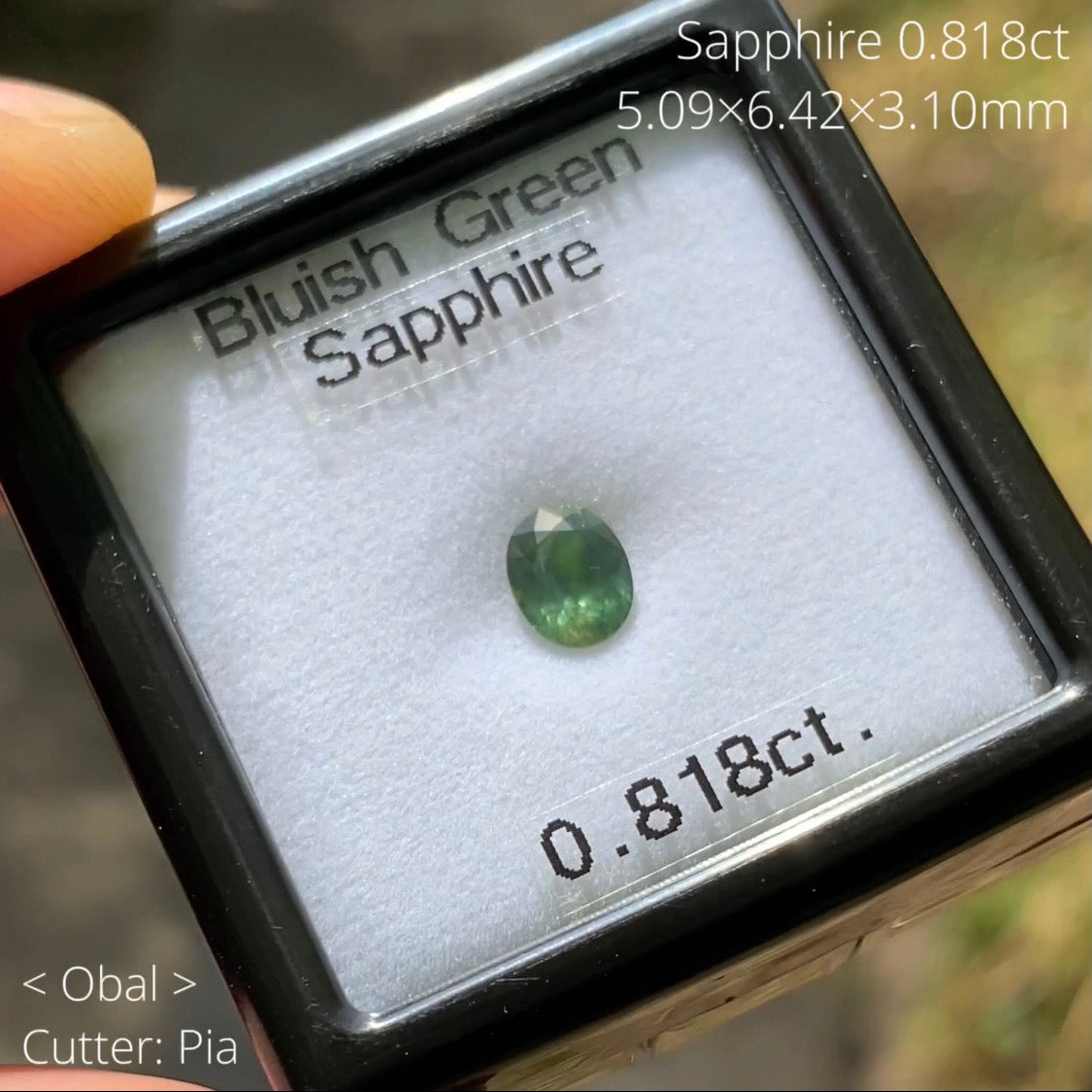深みあるグリーンの中に潜むブルーから、輝く黄緑まで色の幅のあるバンブーカラーで、ピアッちゃんの端正なオーバルシェイプに仕上げられています。