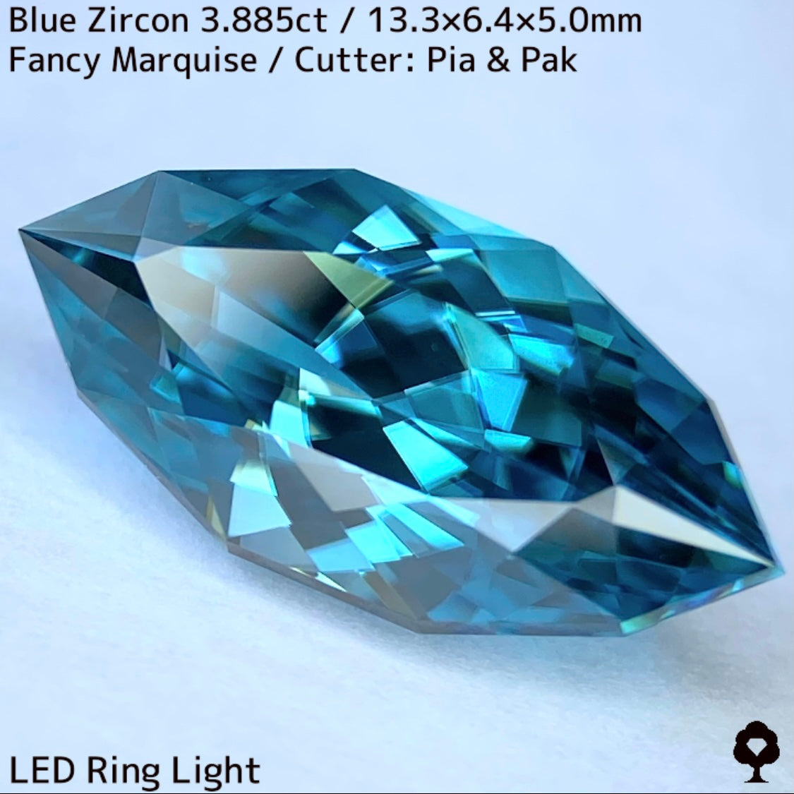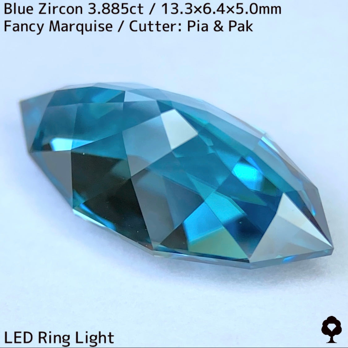 ブルージルコン3.885ct★ファイアー弾ける両端の色だまり美しいグリニッシュブルーの珍しいファンシーマーキス