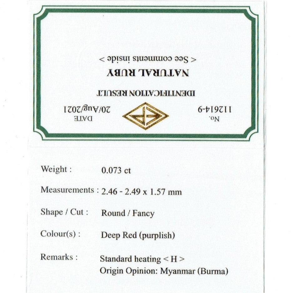 ビルマ産ピジョンブラッドレッドルビー0.073ct