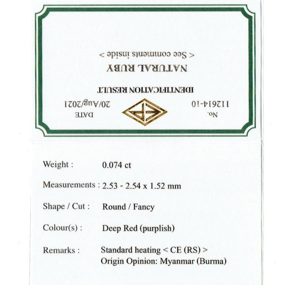 ビルマ産ピジョンブラッドレッドルビー0.074ct