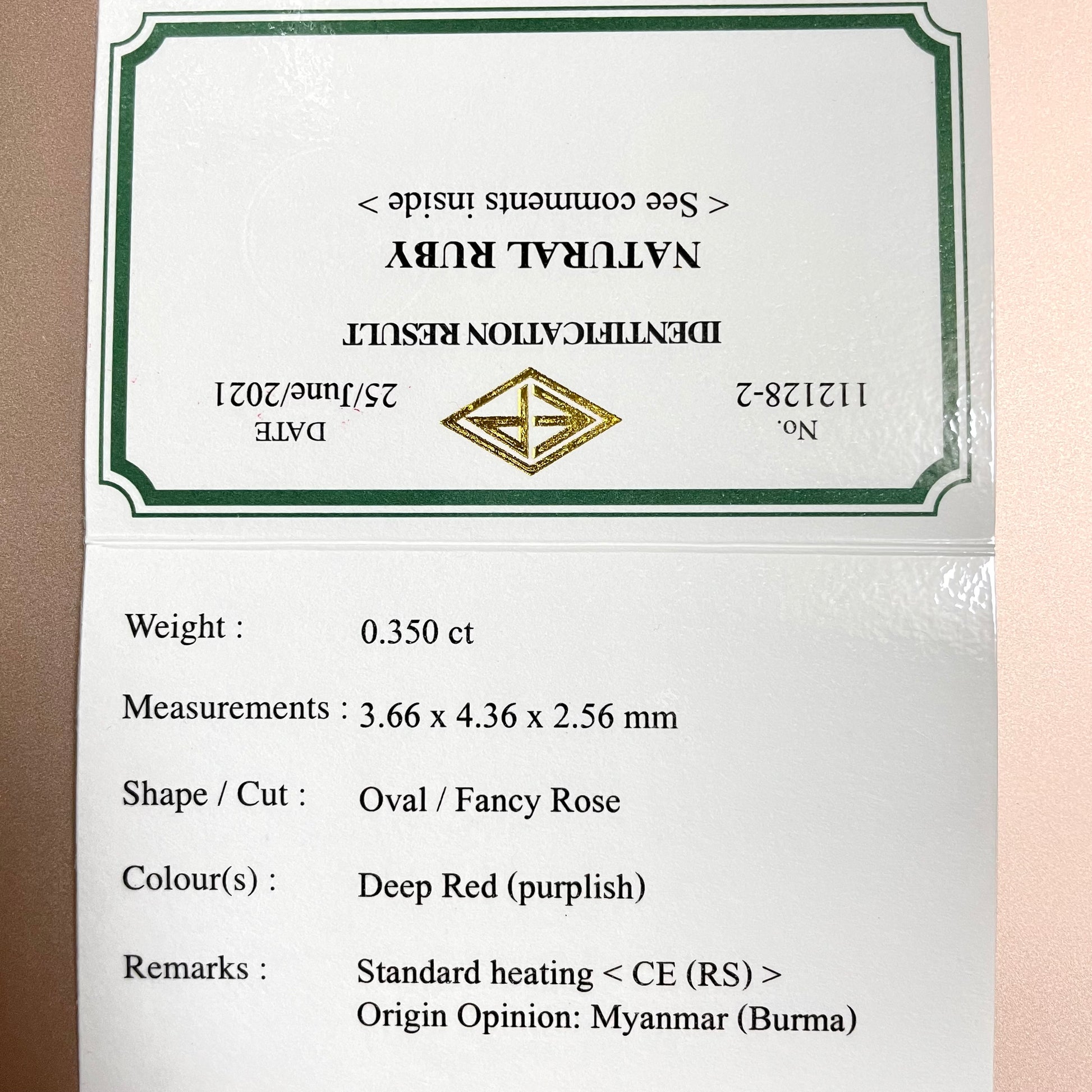 ビルマ産ピジョンブラッドレッドルビー0.350ct💎