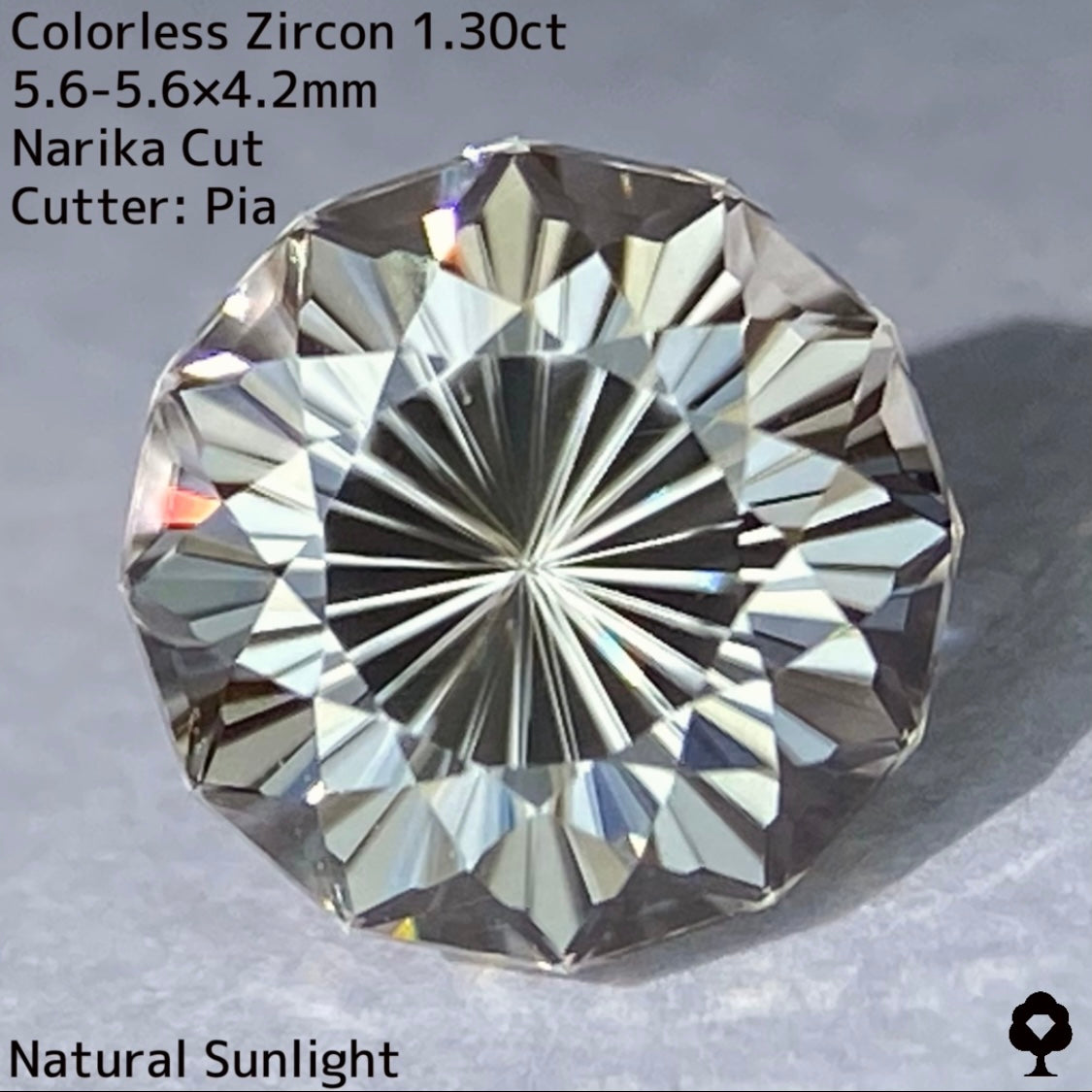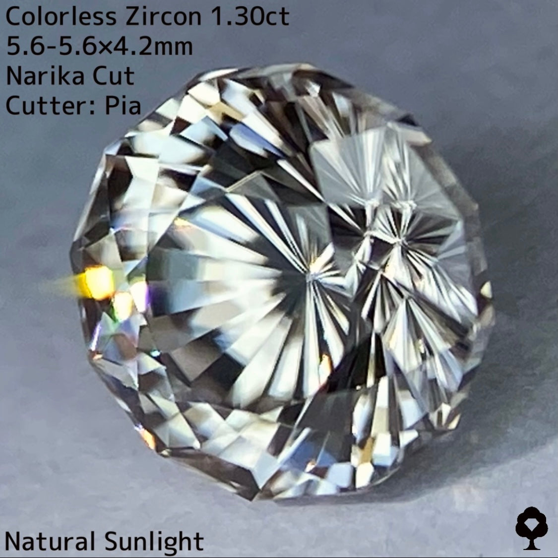 タイ語で時計を意味するナリカーカットですが、秒針のような煌めきが中央から見事に現れ、ダブリングで二重になる様子や、ジルコンの分散度の高さから現れるカラフルなファイアーとの共演は見事です。