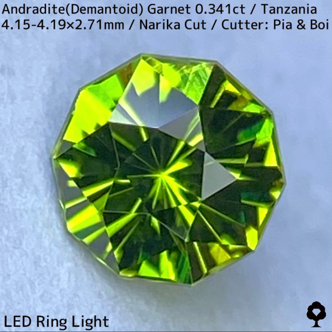 タンザニア産アンドラダイト(デマントイド)ガーネット0.341ct★希少産地の曇りなき美色美結晶の抜群カット