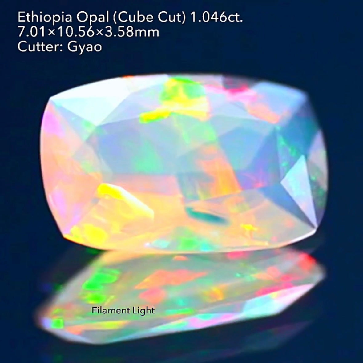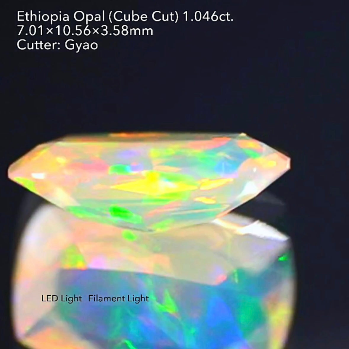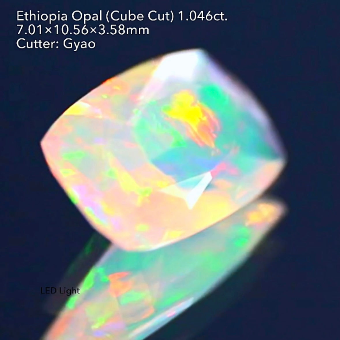 LEDライトでさらにカラフルに🎨🔦全面に遊色が踊る💃エチオピアオパール 1.046ct 変則キューブカット