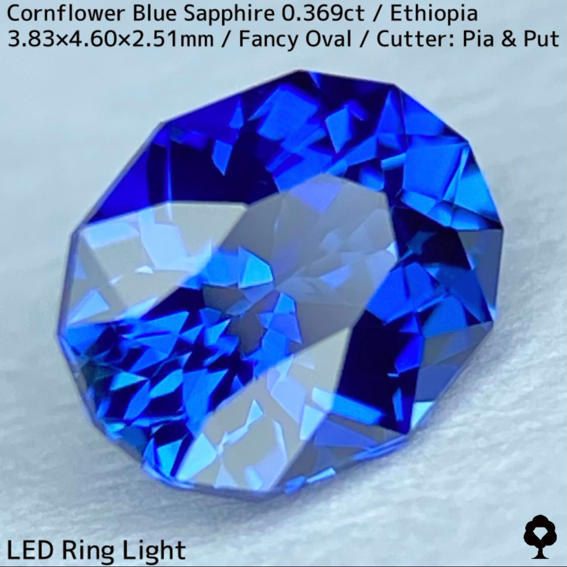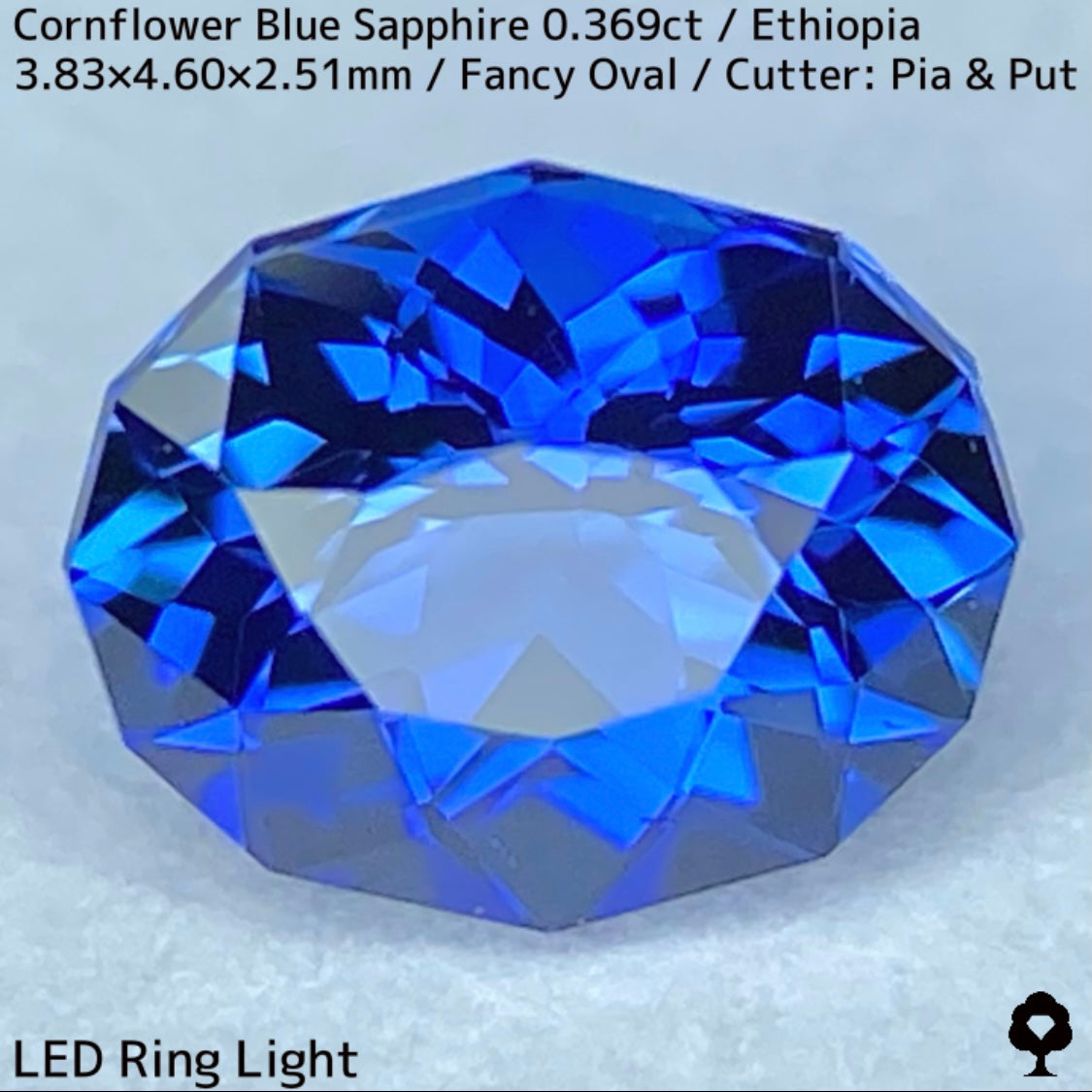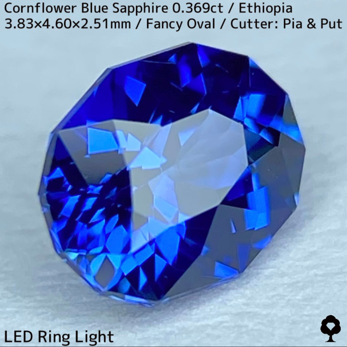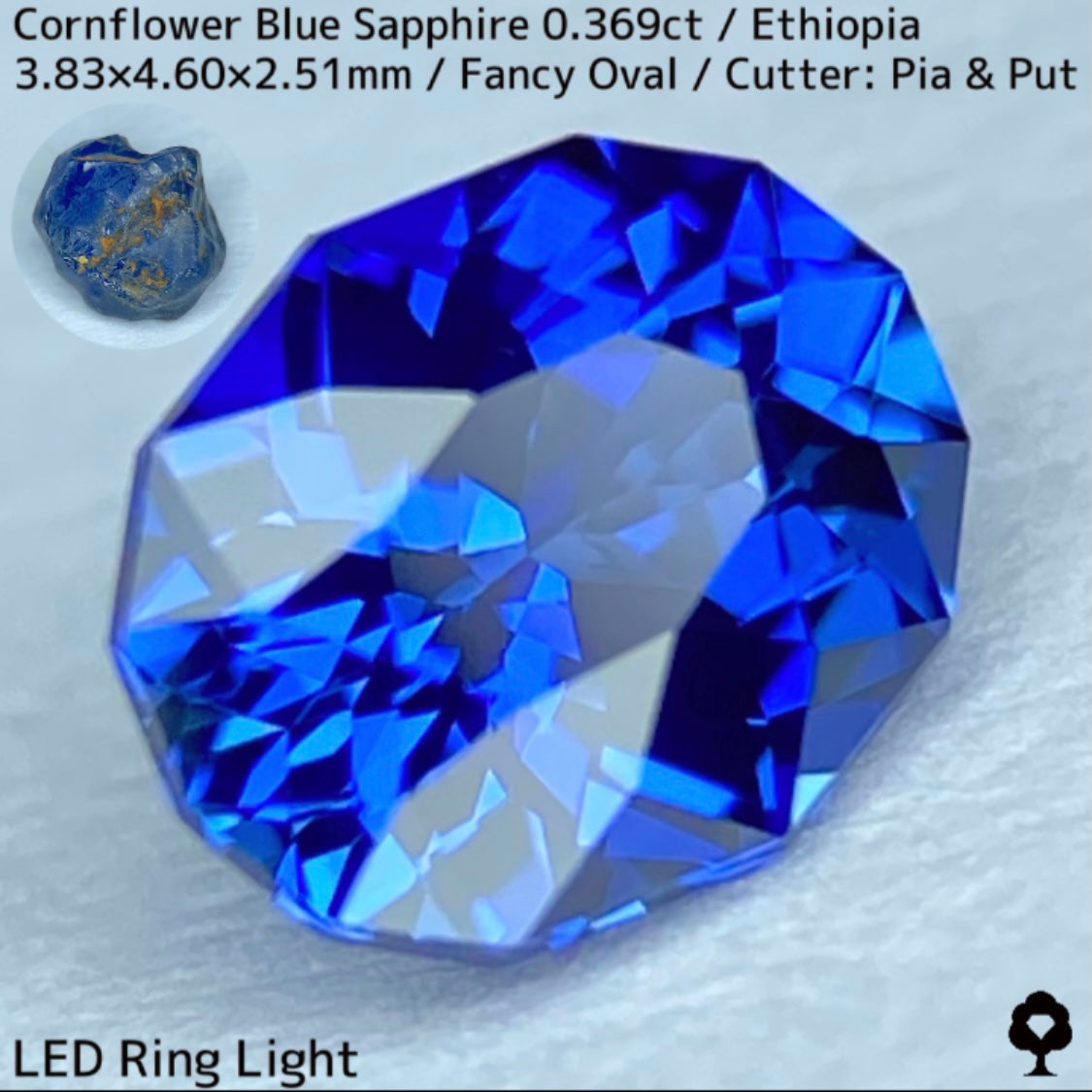 エチオピア産コーンフラワーブルーサファイア0.369ct★鮮やかさ華やかさ抜群のクリアな美結晶美カット★原石0.88ct付き