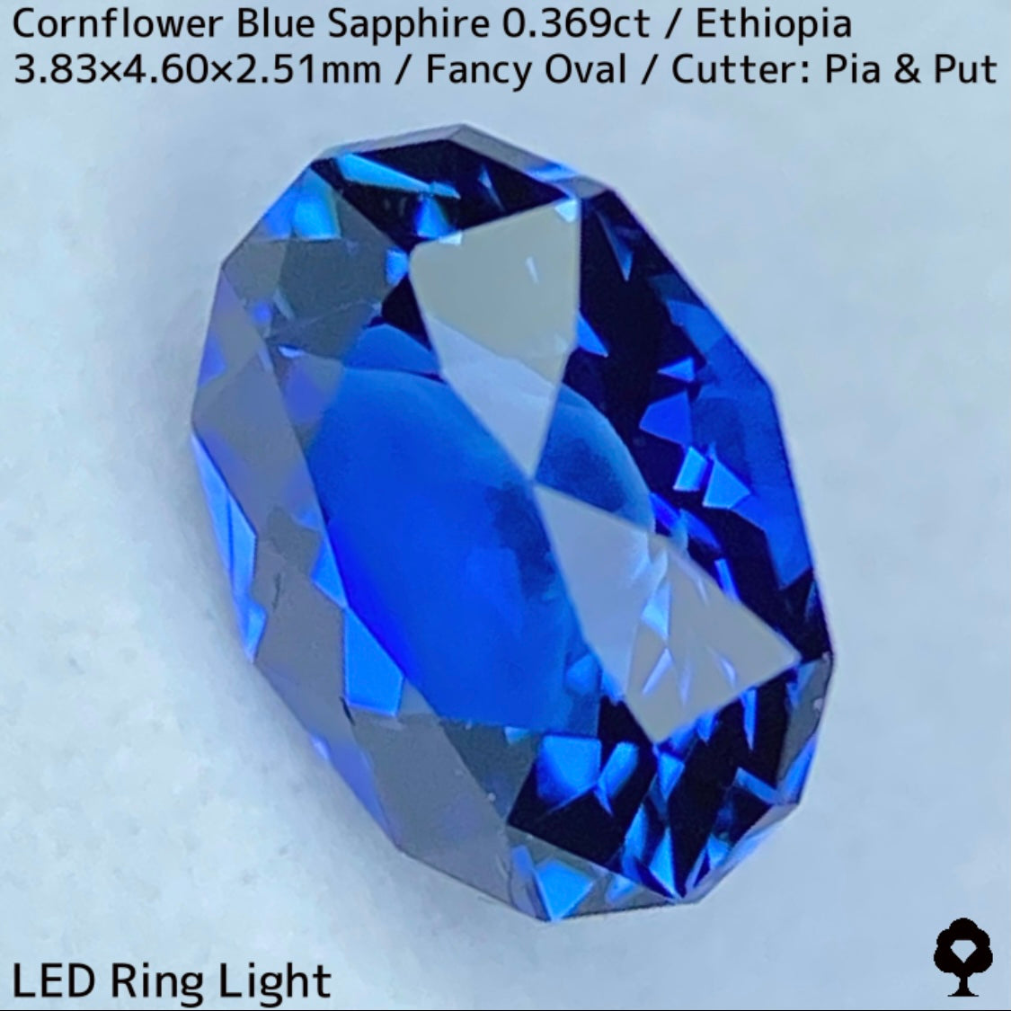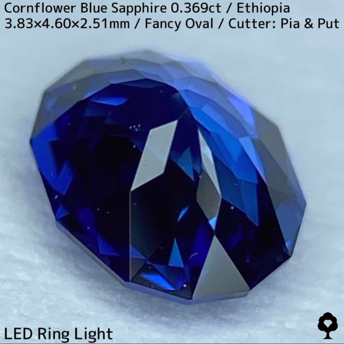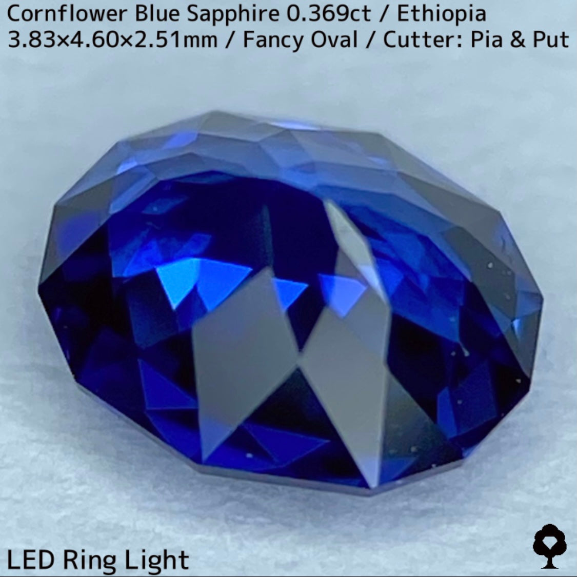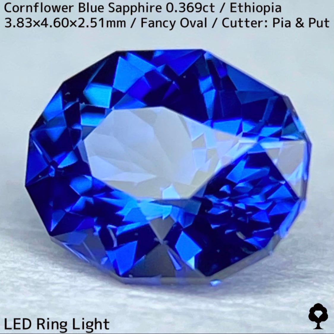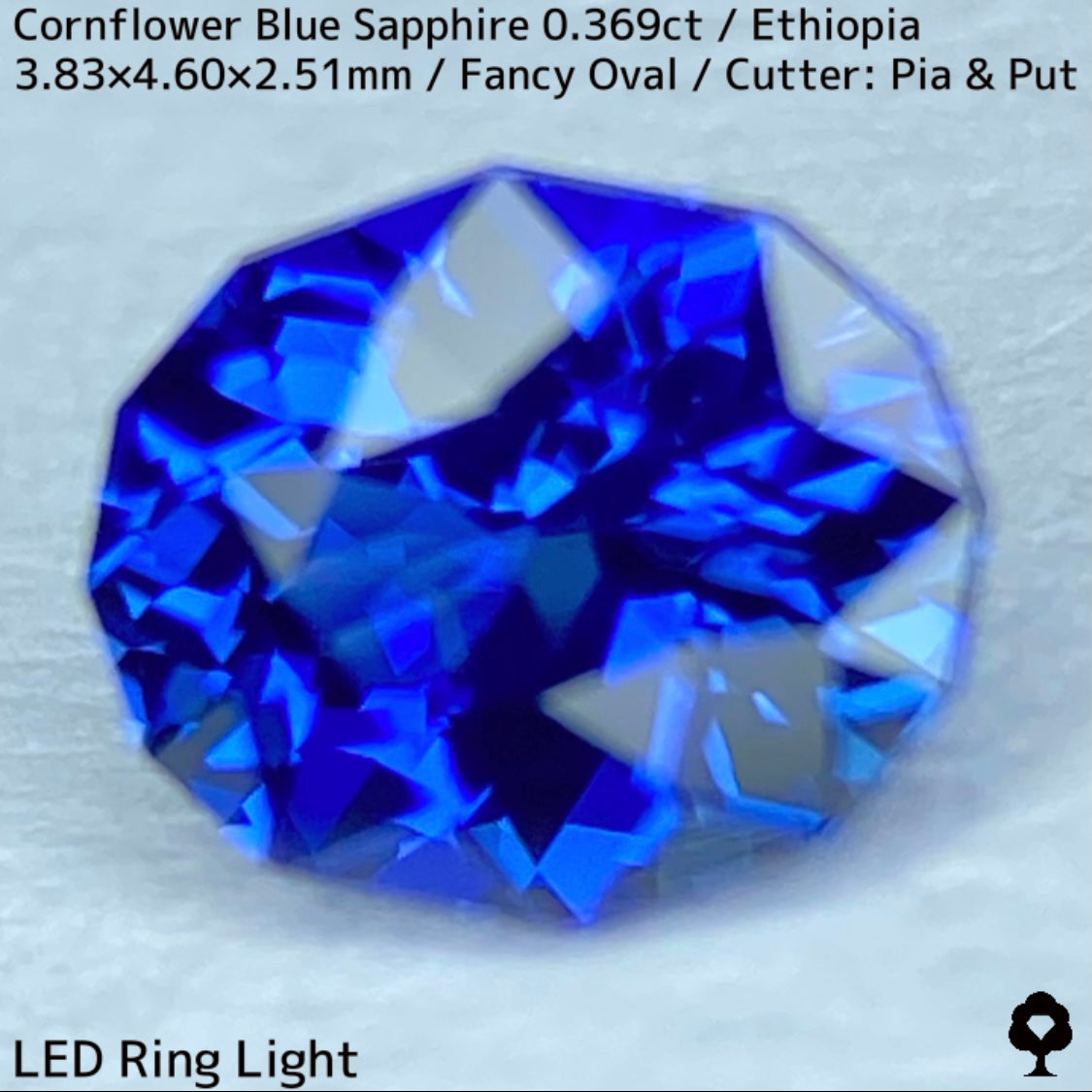 エチオピア産コーンフラワーブルーサファイア0.369ct★鮮やかさ華やかさ抜群のクリアな美結晶美カット★原石0.88ct付き
