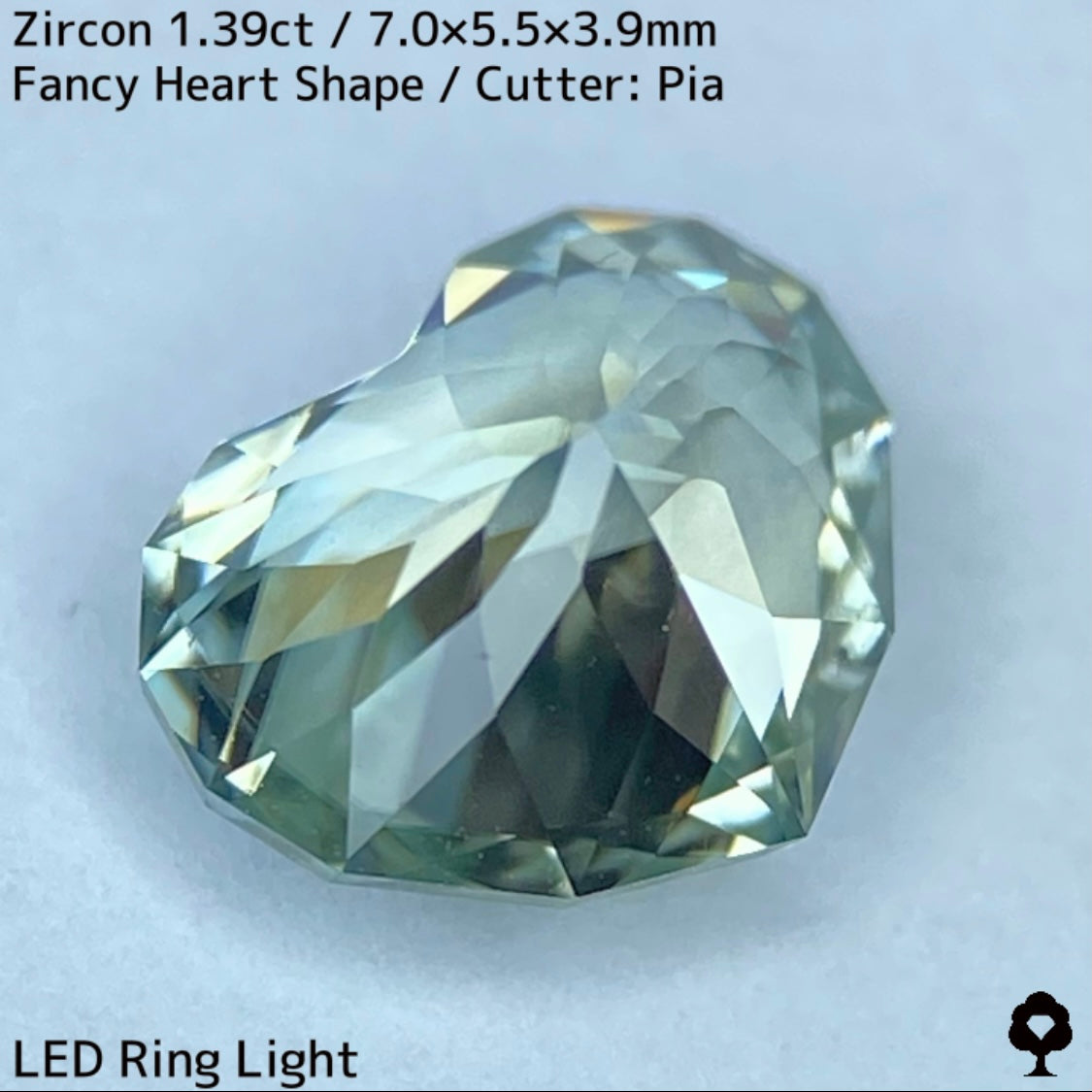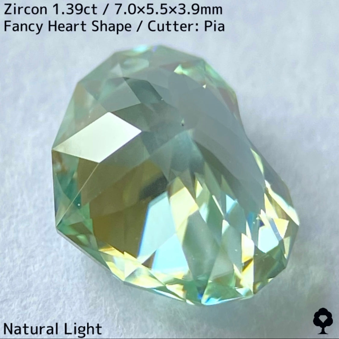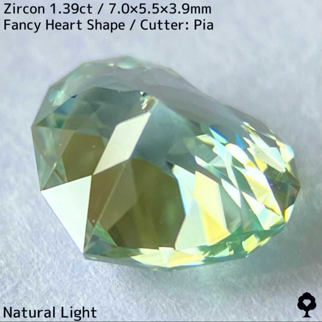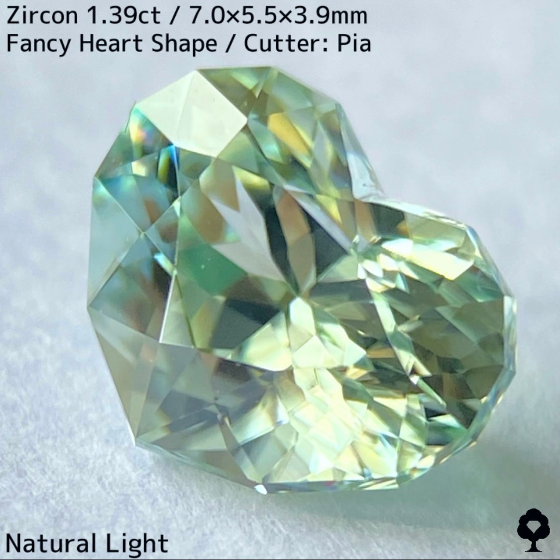 【ご当選者さま専用】ジルコン1.39ct★GTJでは珍しい横長ハートの煌めくライトブルーイッシュグリーンの美結晶