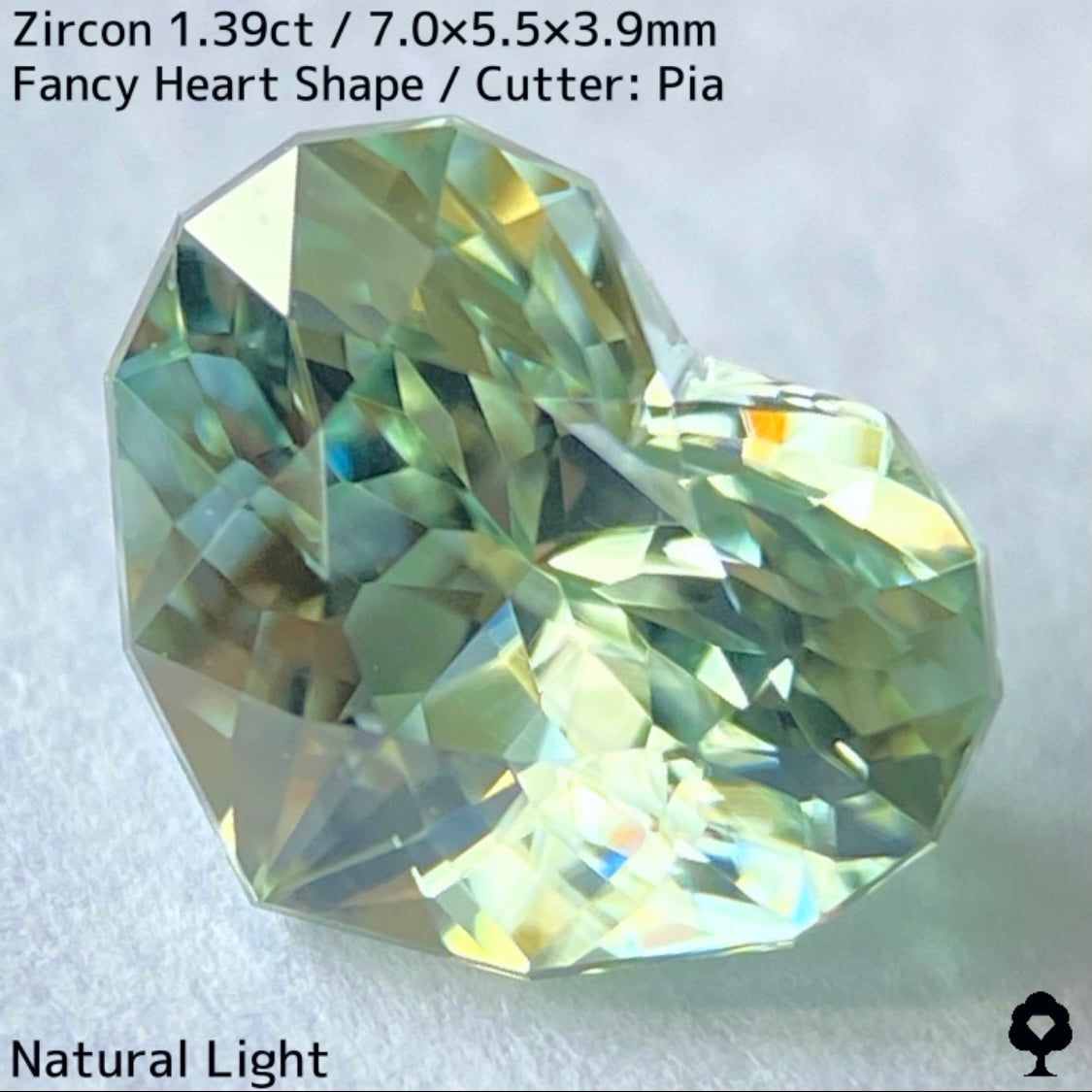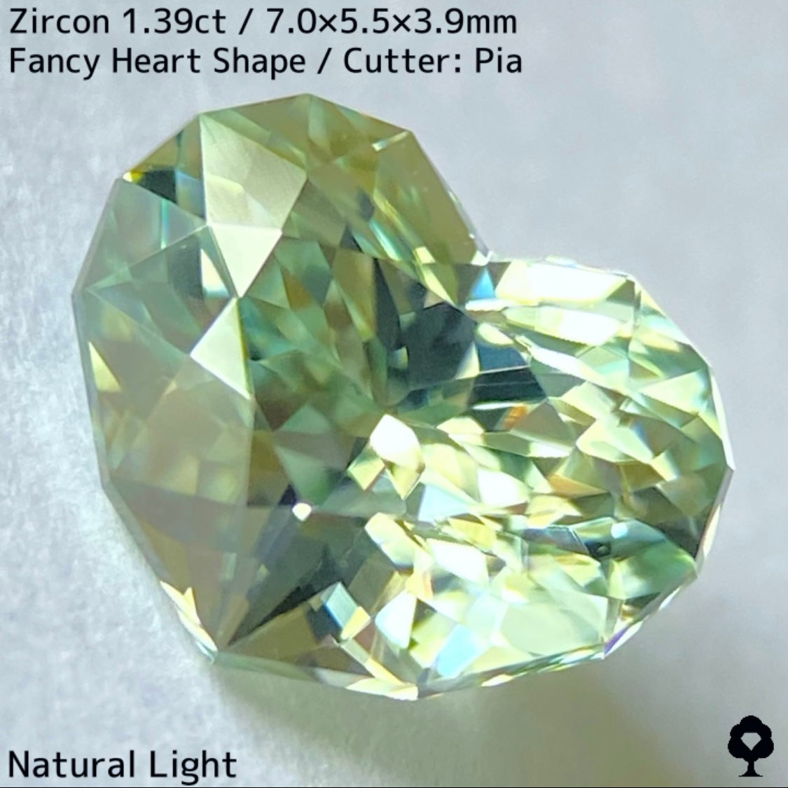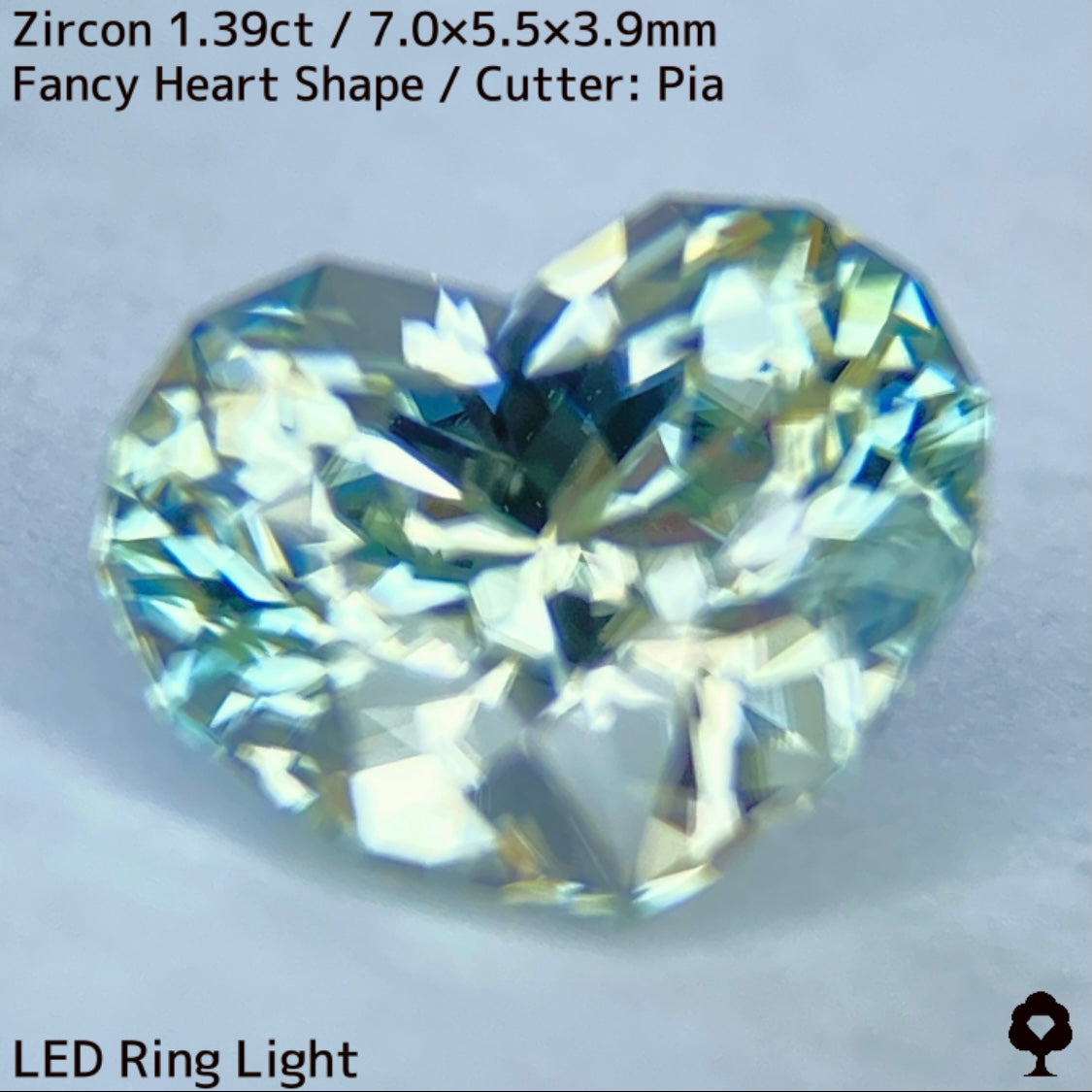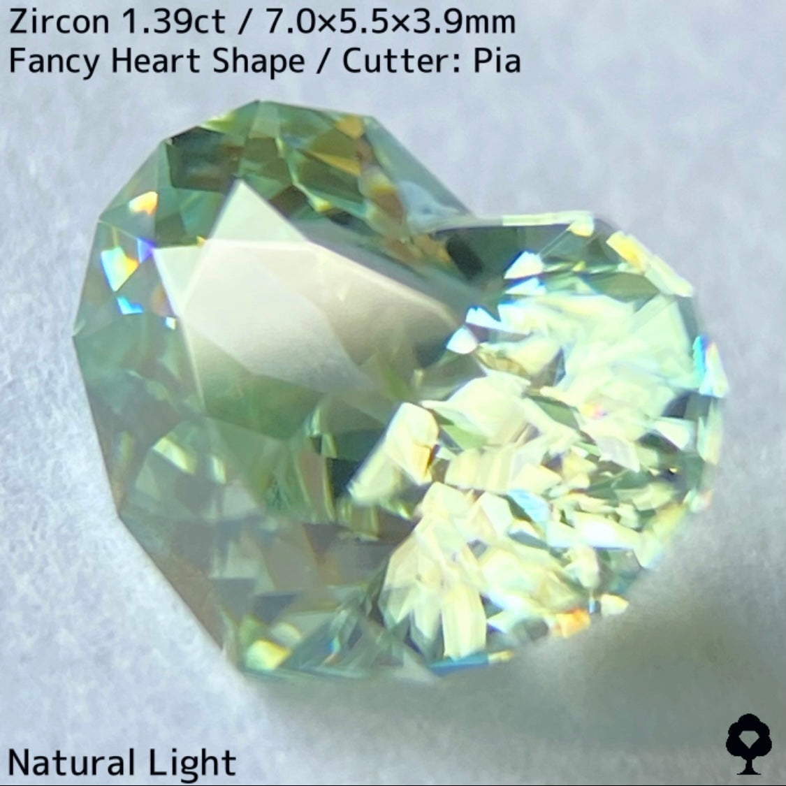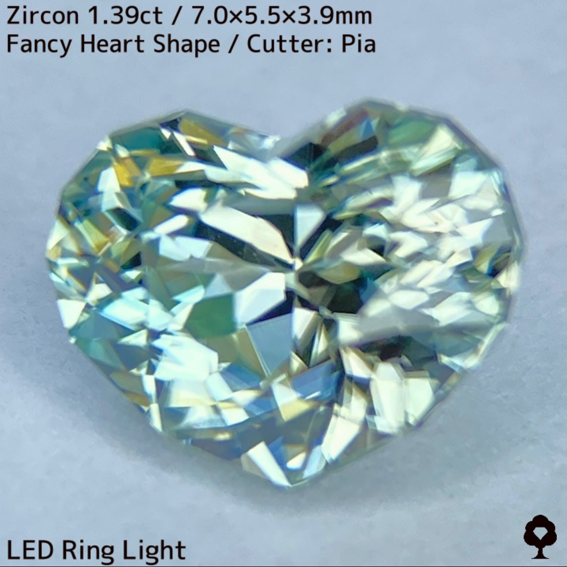 【ご当選者さま専用】ジルコン1.39ct★GTJでは珍しい横長ハートの煌めくライトブルーイッシュグリーンの美結晶