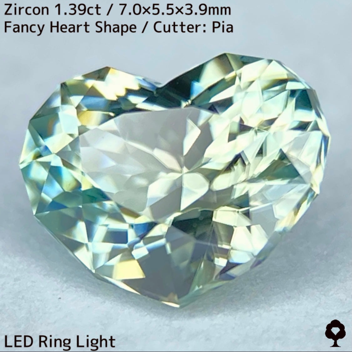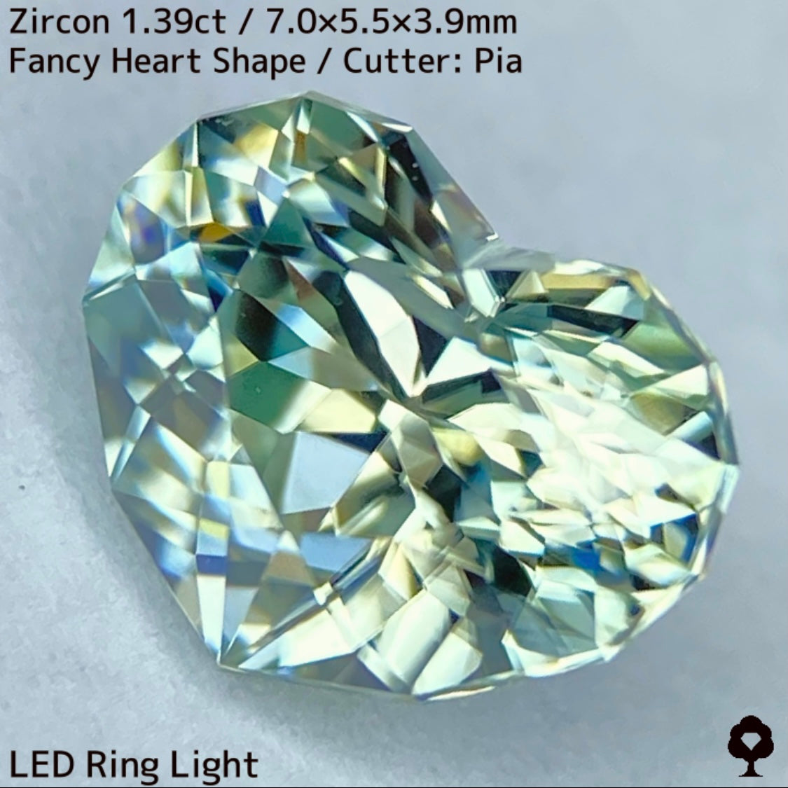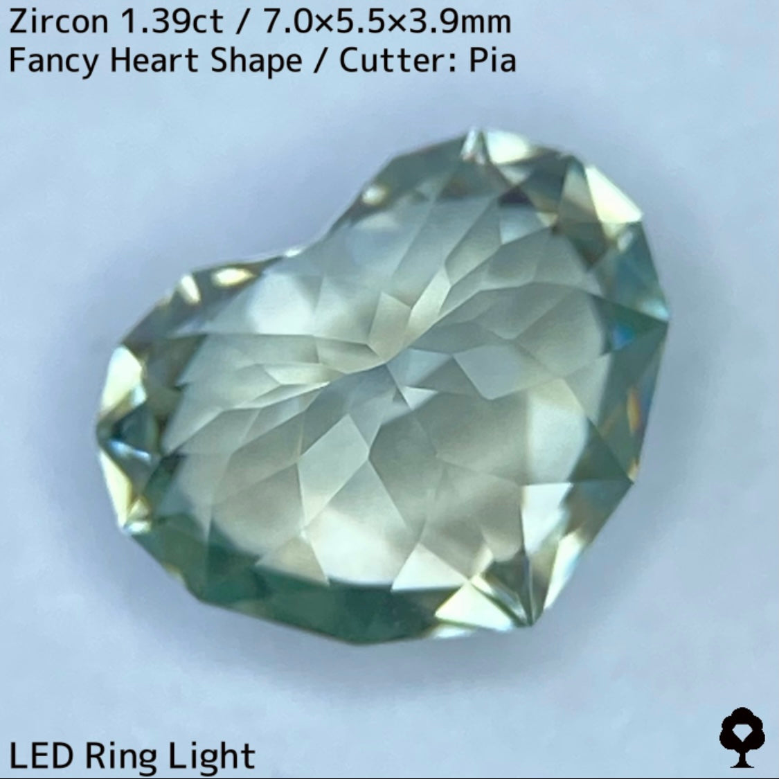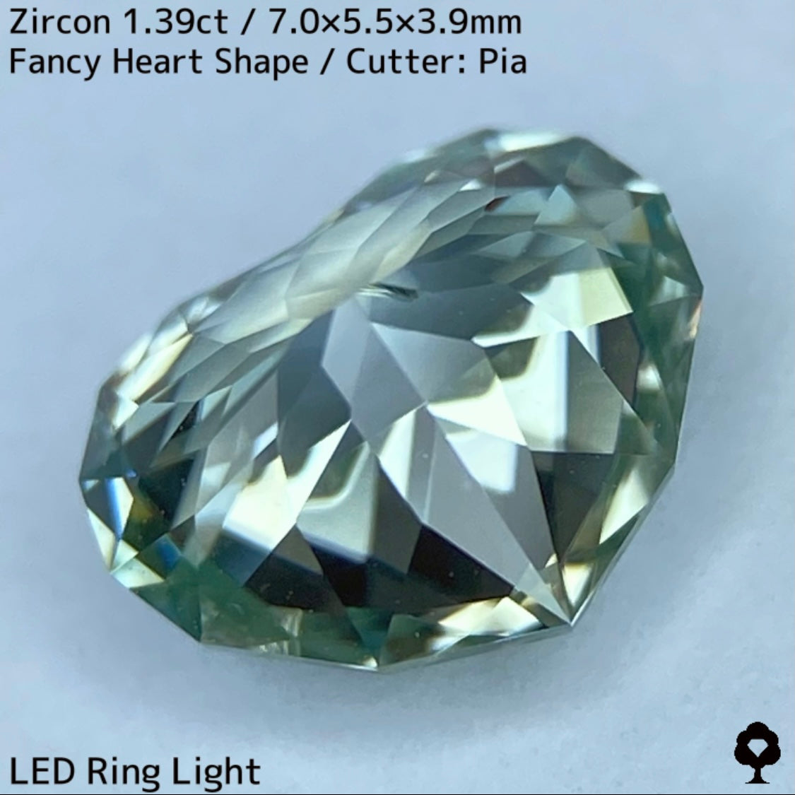 【ご当選者さま専用】ジルコン1.39ct★GTJでは珍しい横長ハートの煌めくライトブルーイッシュグリーンの美結晶