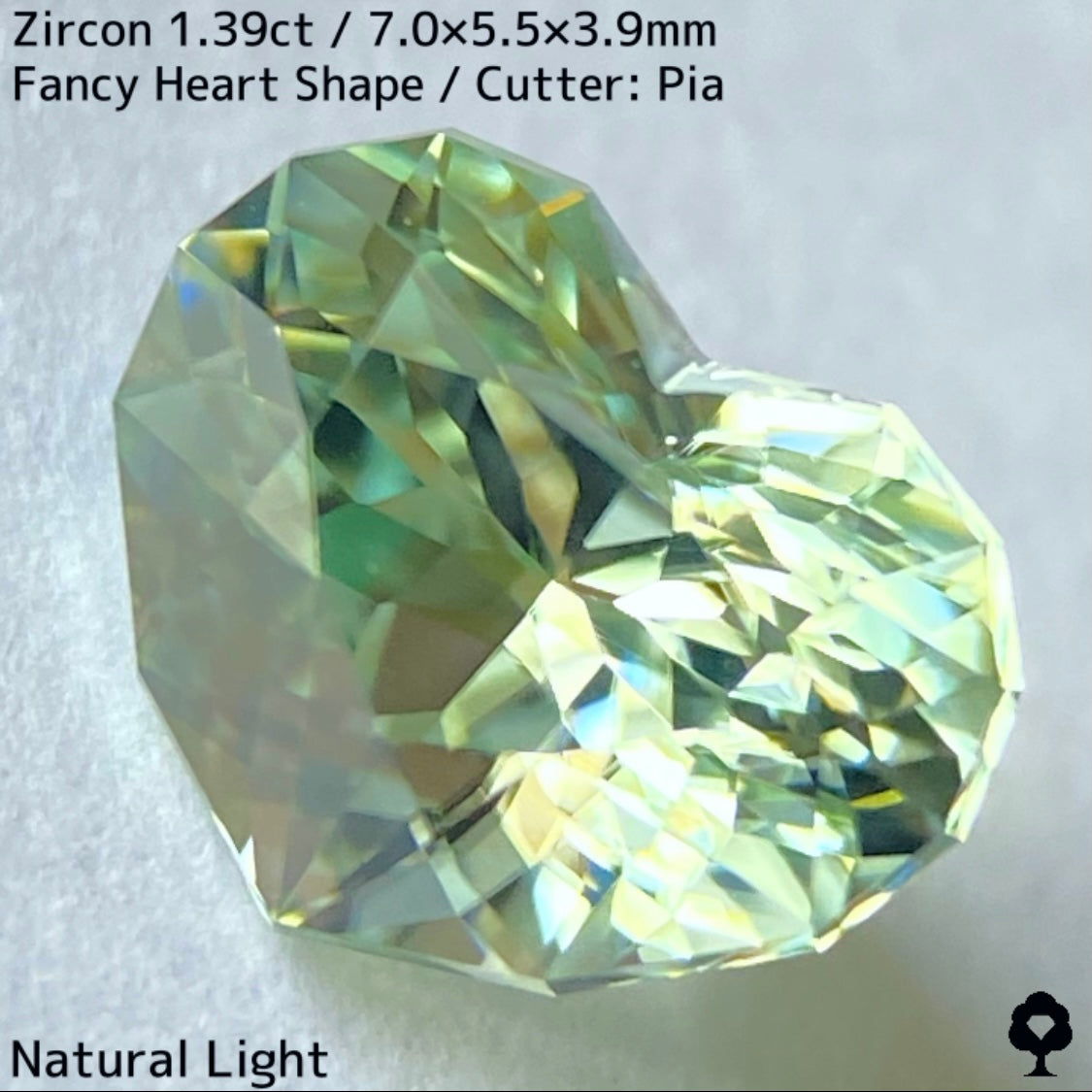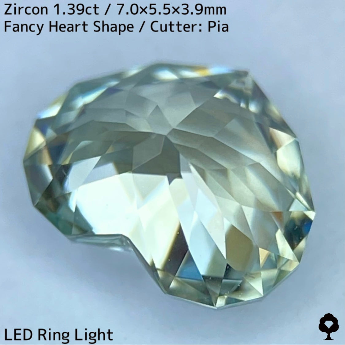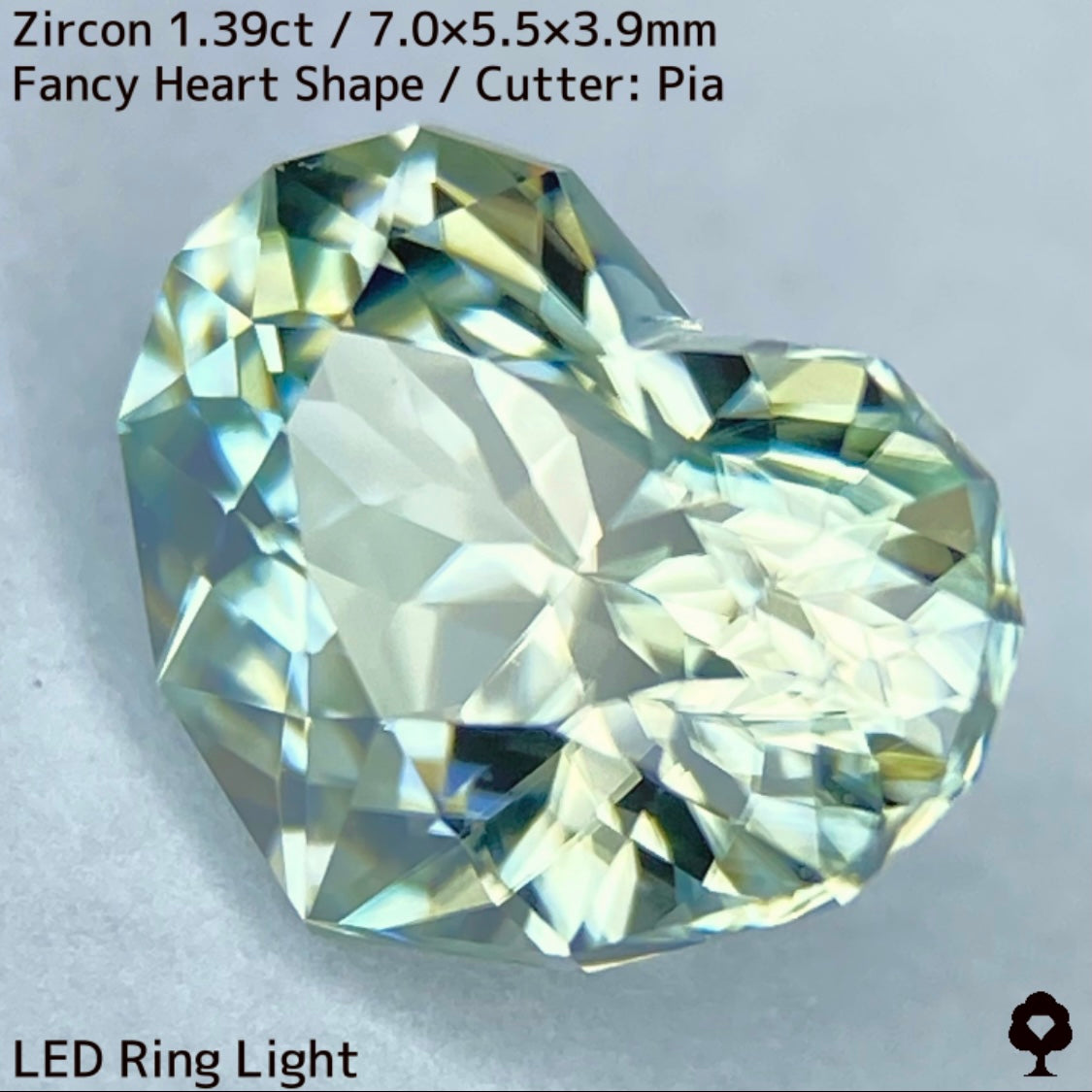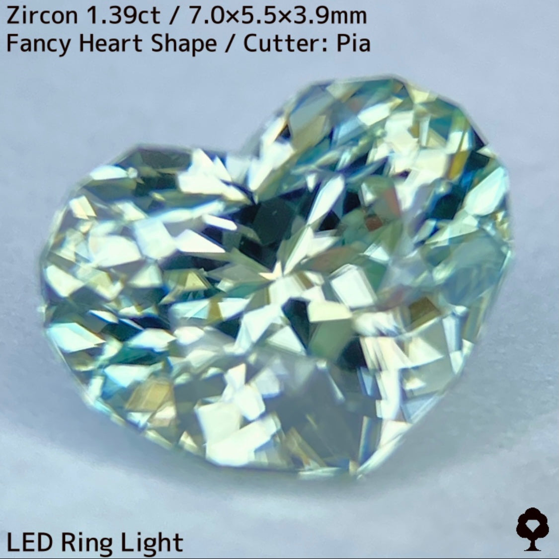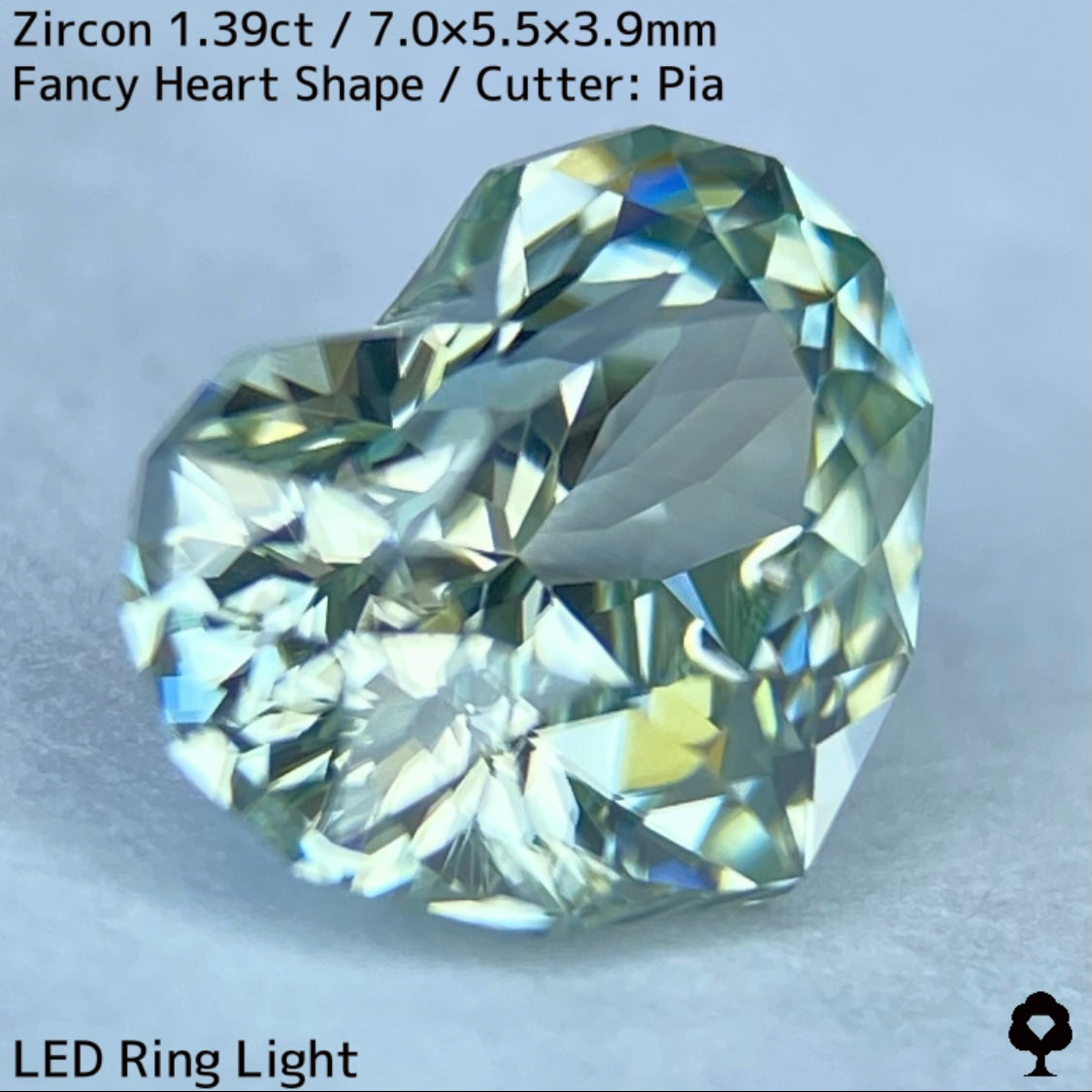 【ご当選者さま専用】ジルコン1.39ct★GTJでは珍しい横長ハートの煌めくライトブルーイッシュグリーンの美結晶
