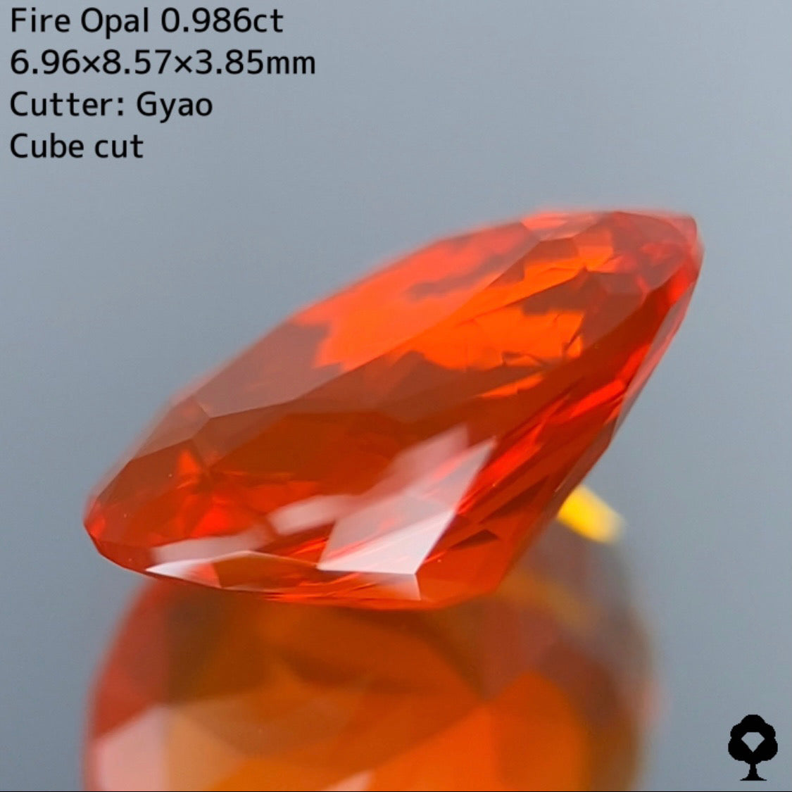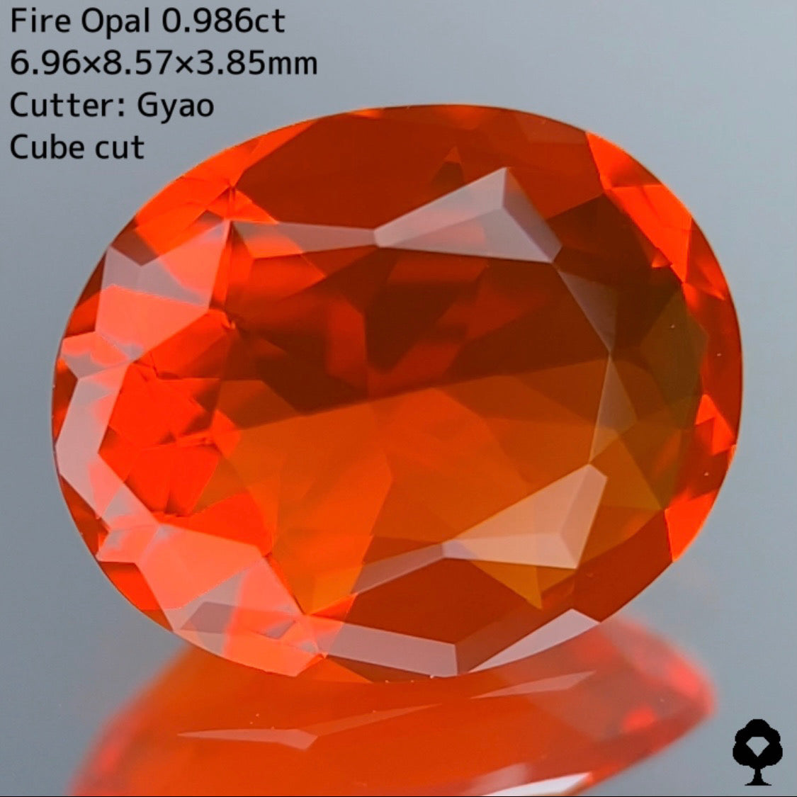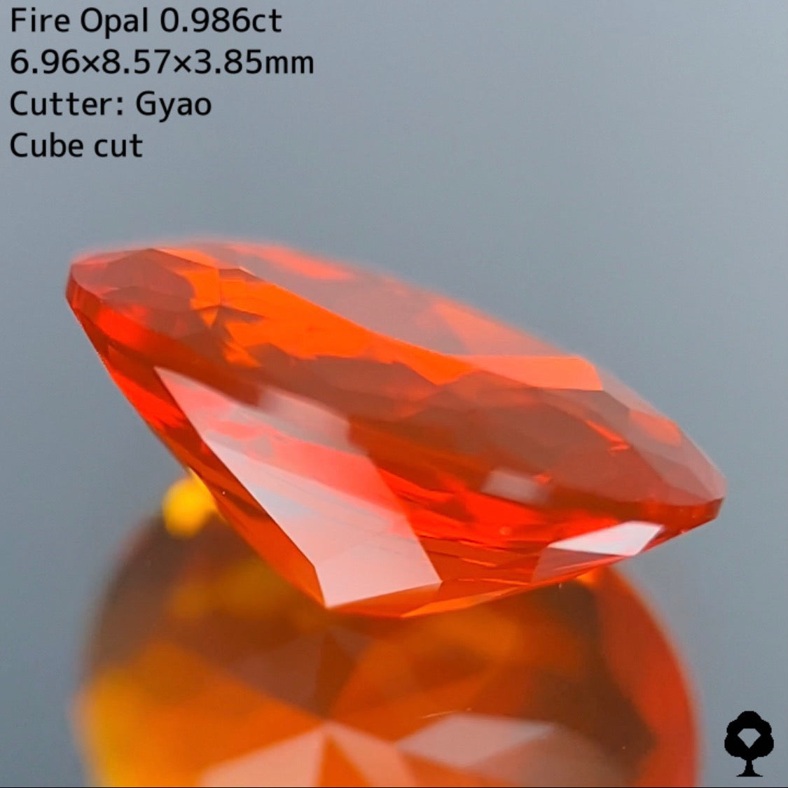 GTJオリジナルカットのキューブカットとZBカットの共演★ファイアーオパール 0.986ct【Cube cut・ZB cut】