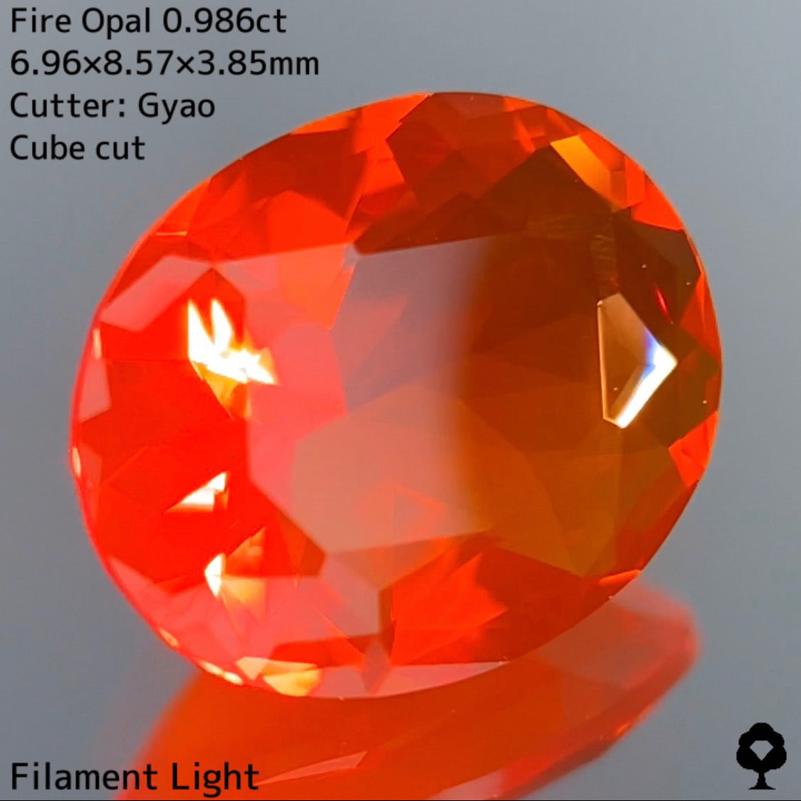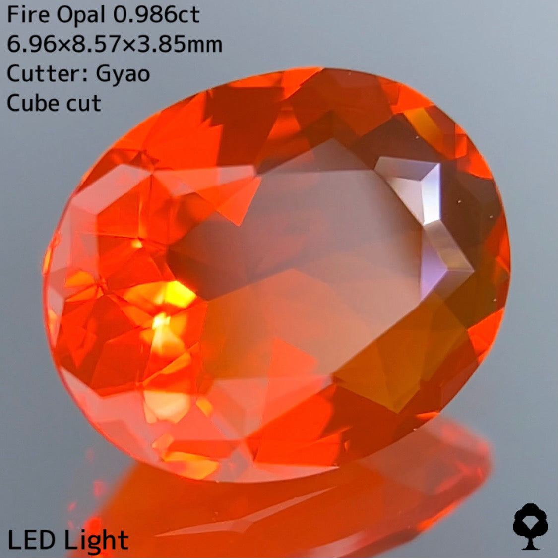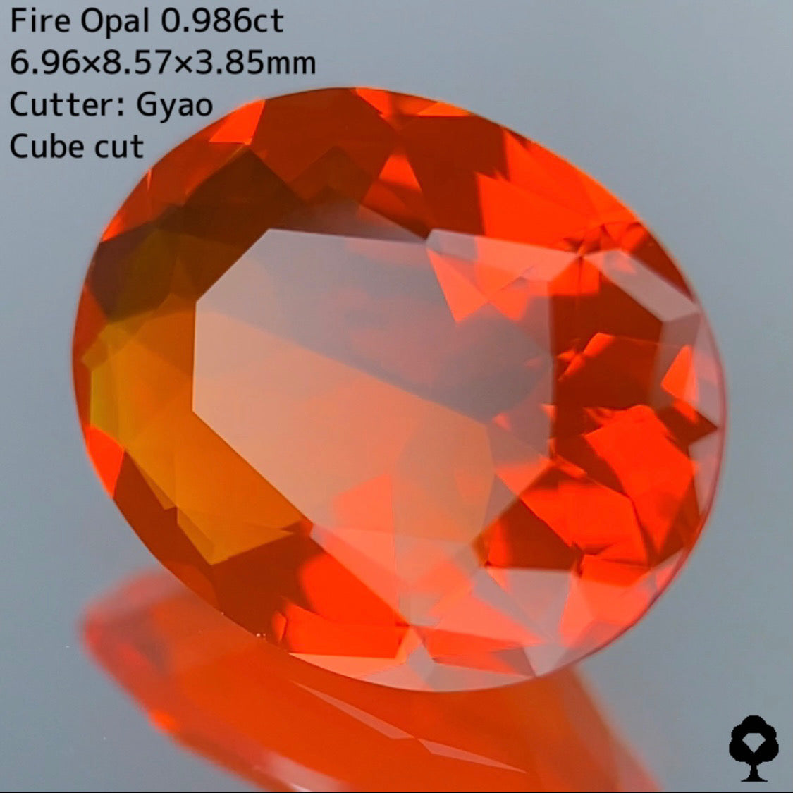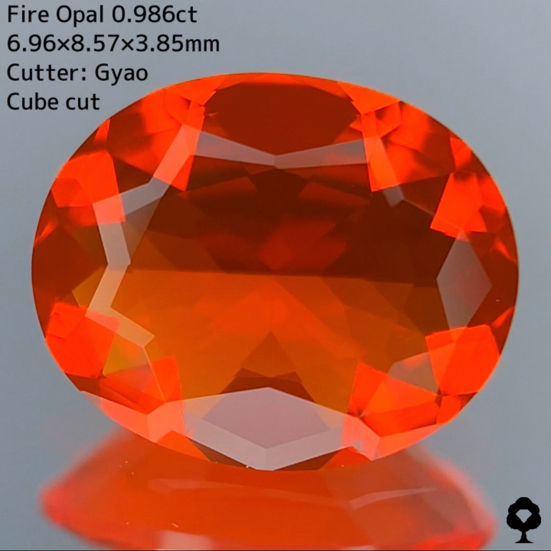 GTJオリジナルカットのキューブカットとZBカットの共演★ファイアーオパール 0.986ct【Cube cut・ZB cut】