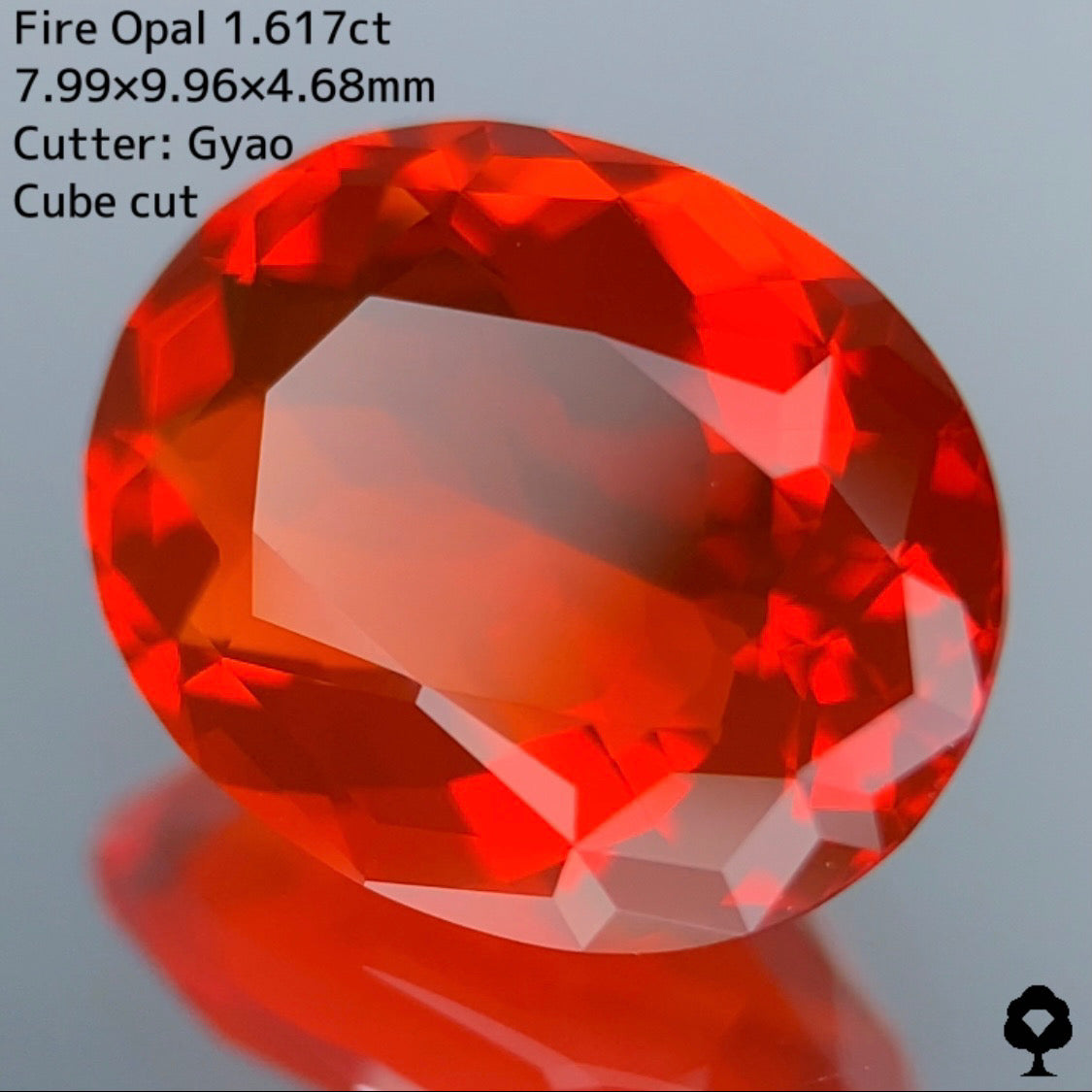 鮮やかオレンジが燃える変則キューブオーバル★ファイアーオパール 1.617ct【Cube cut】