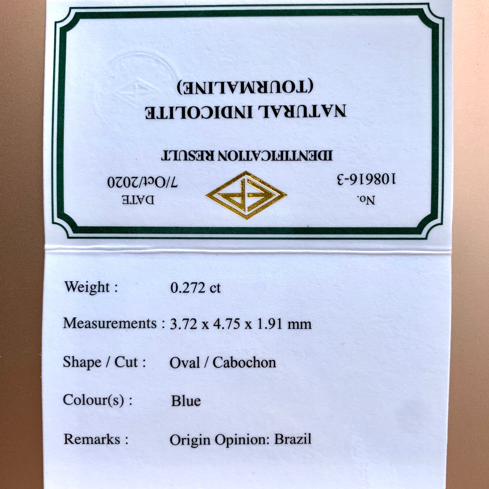 コチラは、当店のカボション専門カッター通称「中川家兄」が仕上げました、ブラジル産インディゴライト(トルマリン)0.272ctです✨