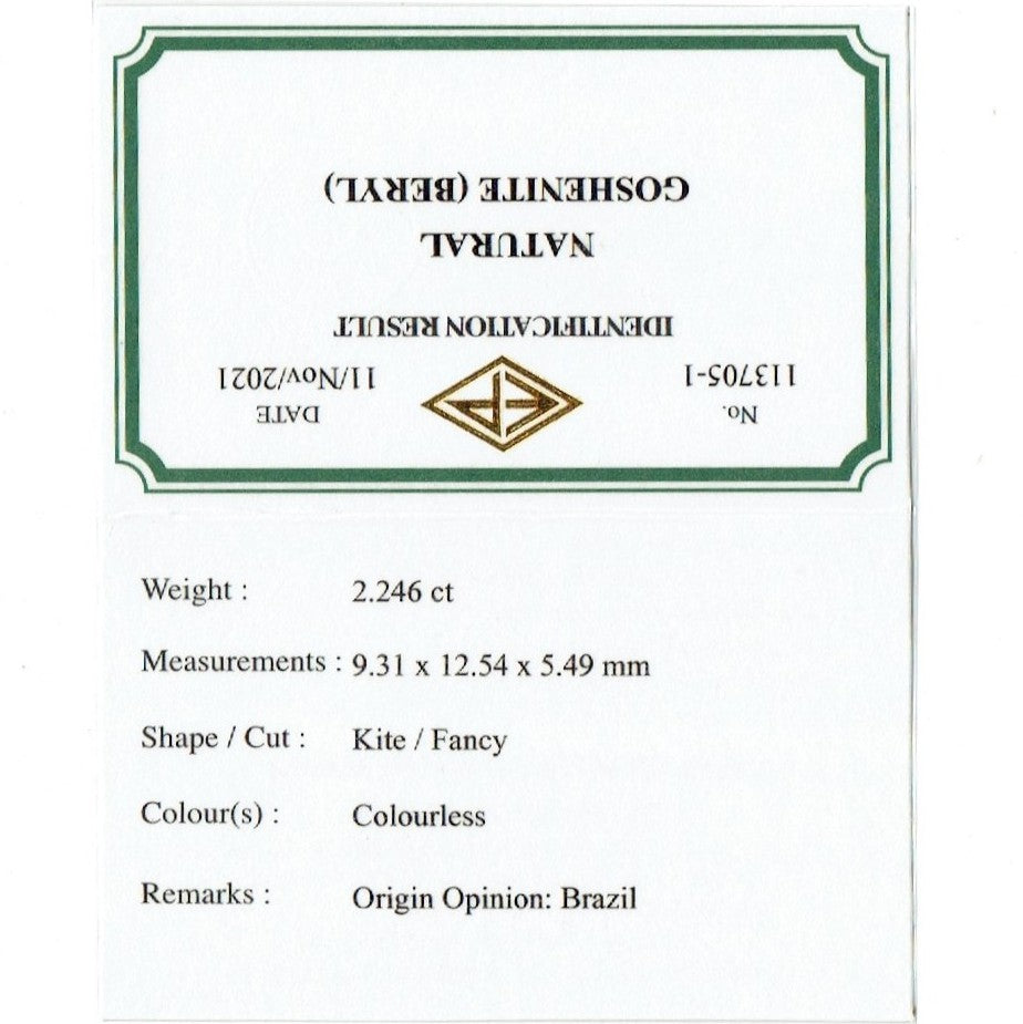 美しく鋭いカイト型&窓付きパビリオン◇ゴッシェナイト(カラーレスベリル)2.246ct💎