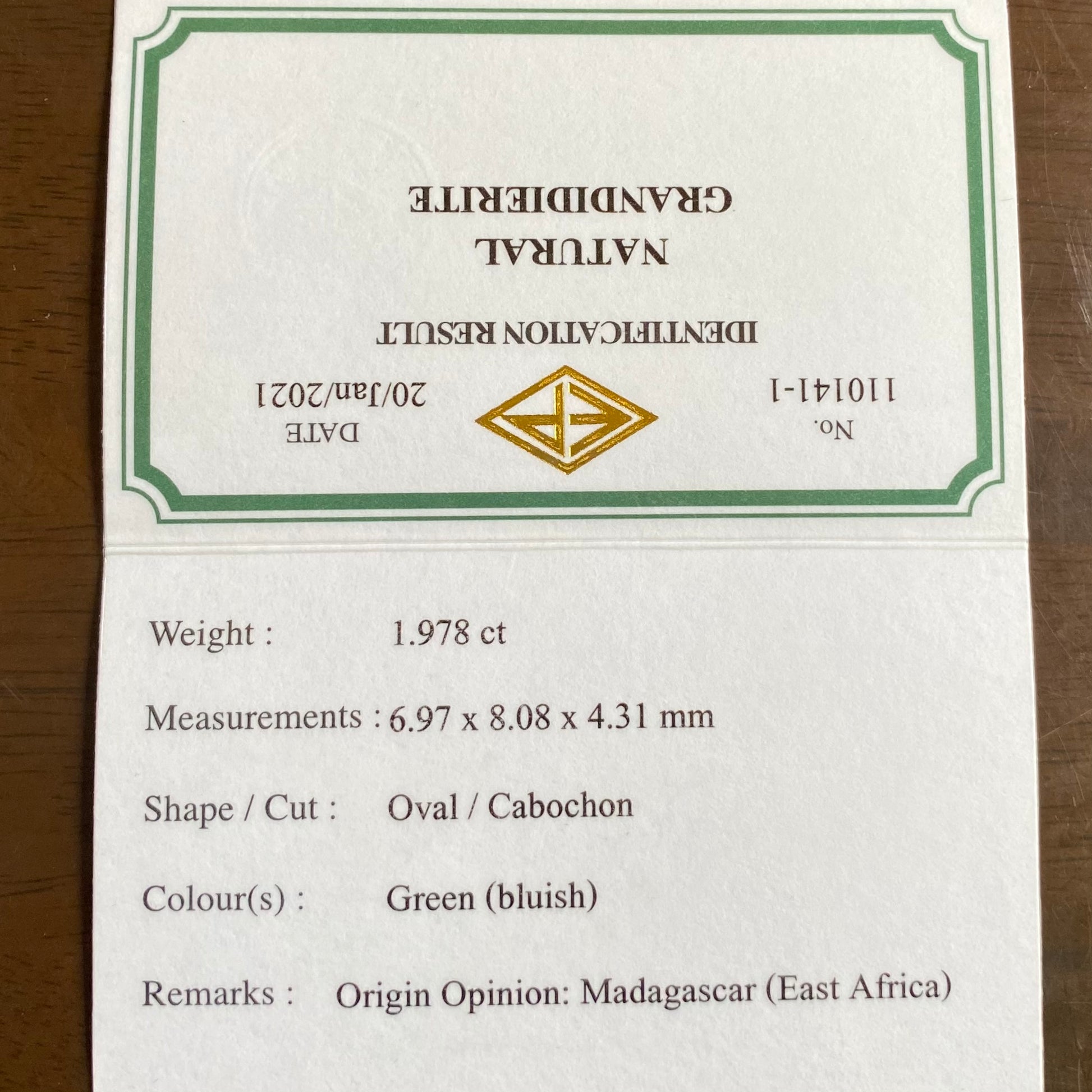 グランディディエライトらしいブルーグリーン。発色も色ノリも良く、程よい透明度と厚みが、作品の内部に入った光を絶妙に溜め込んで輝いてくれています。