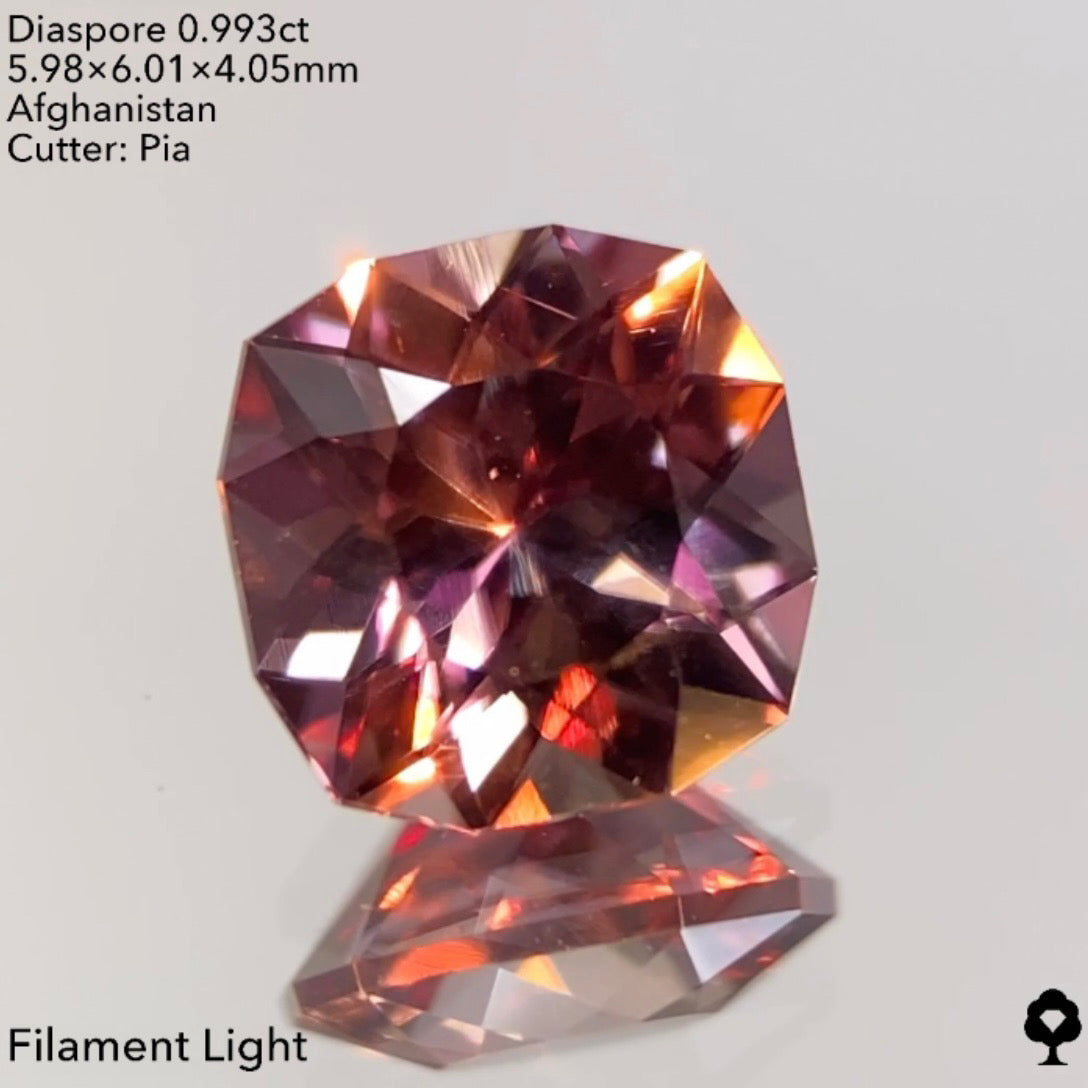 【お客さま専用】【GTJウェブサイト個展プライス】妖艶ピンクの美クッションに走る繊維状構造のライン★ダイアスポア0.993ct ピアッちゃん作品