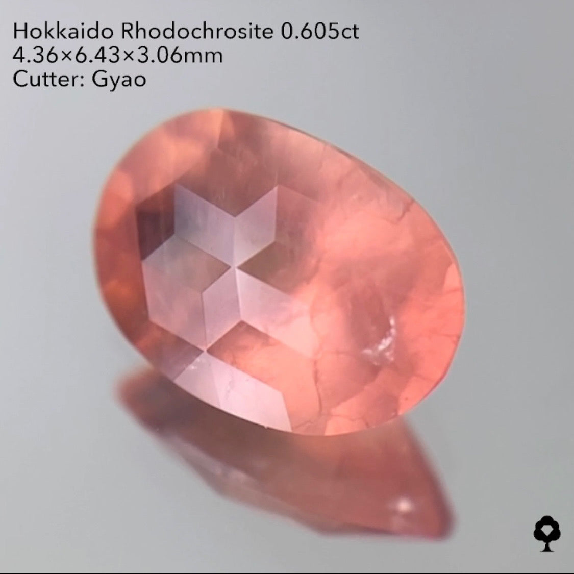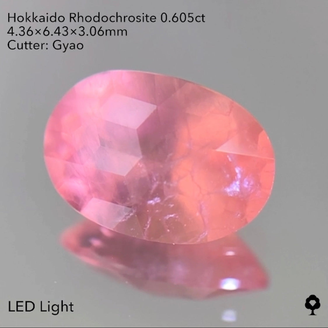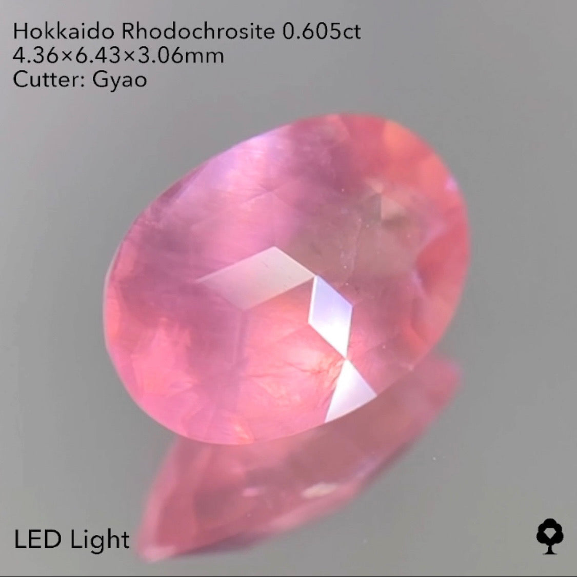 柔らかくカットが難しく、今後は産出しない稀少な北海道産ロードクロサイトを、GTJ独自カットキューブスターのオーバルに独創的天才カッター【ゲオちゃん】が仕上げました。