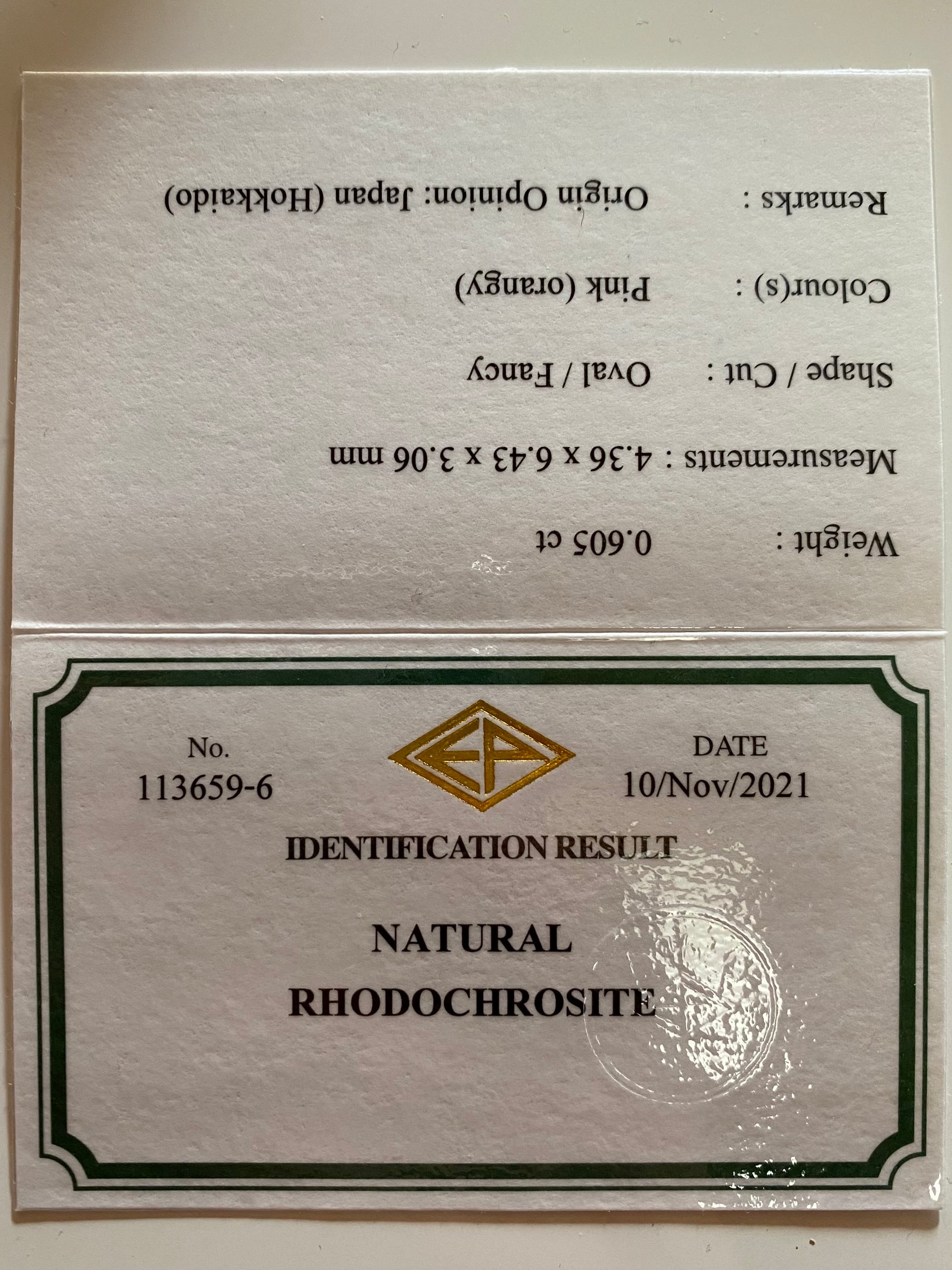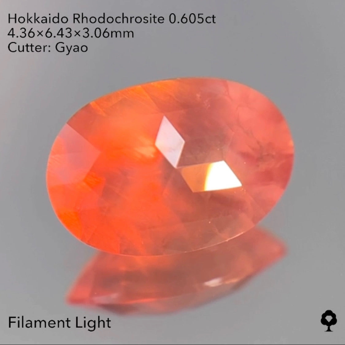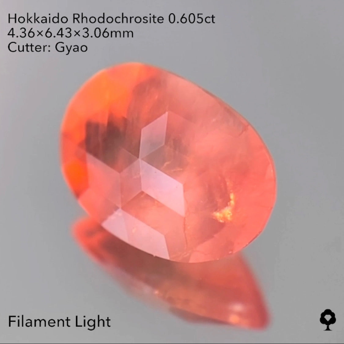 柔らかくカットが難しく、今後は産出しない稀少な北海道産ロードクロサイトを、GTJ独自カットキューブスターのオーバルに独創的天才カッター【ゲオちゃん】が仕上げました。