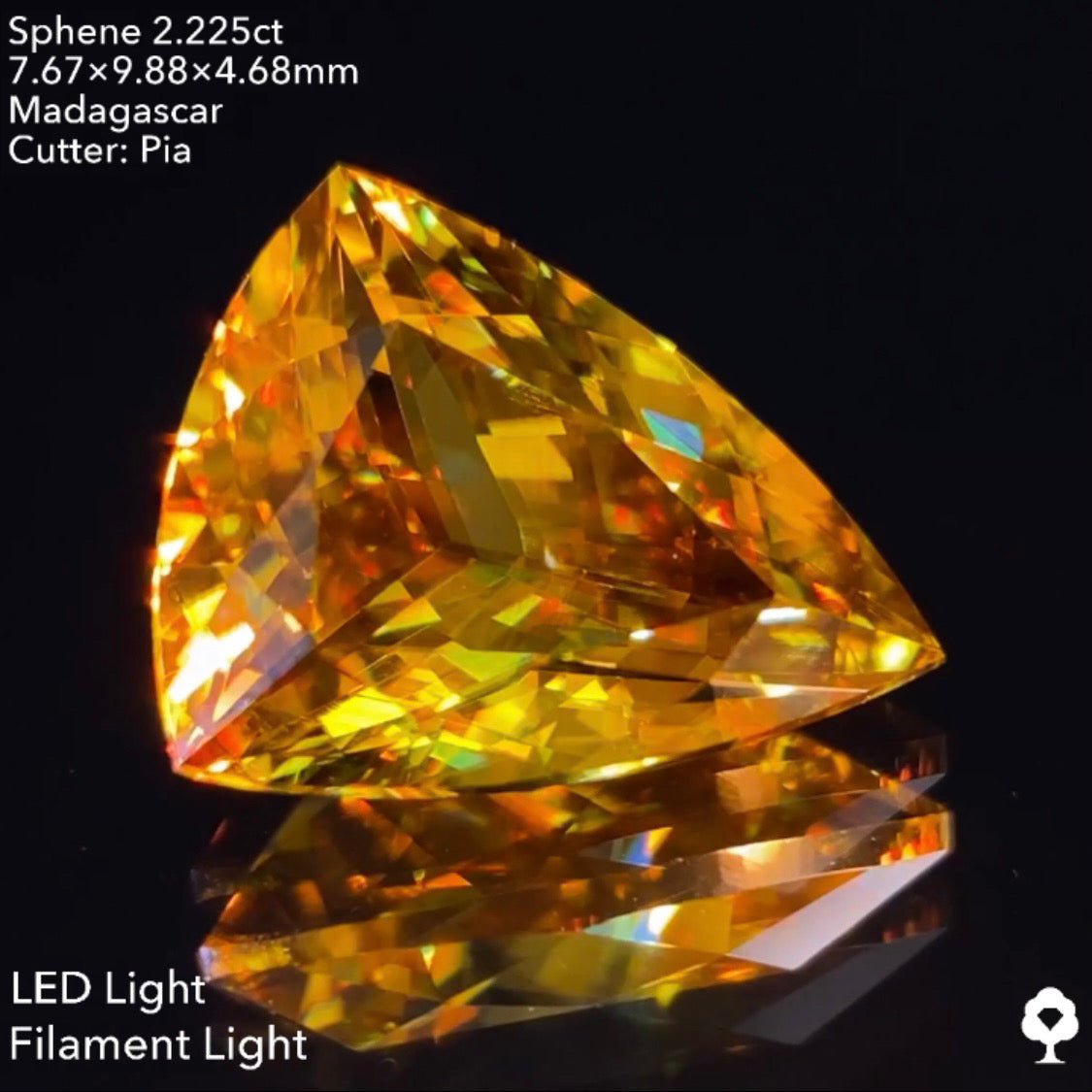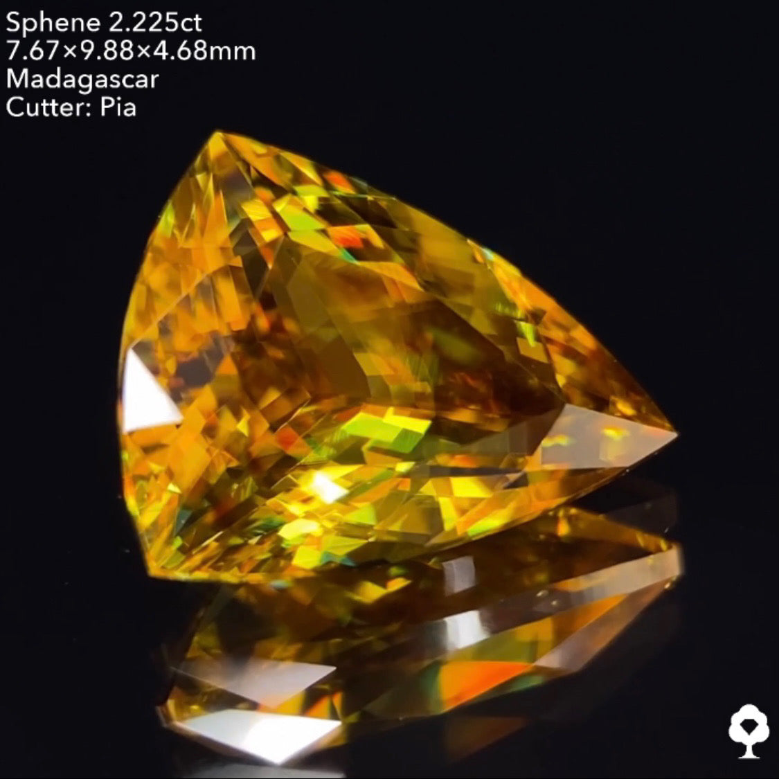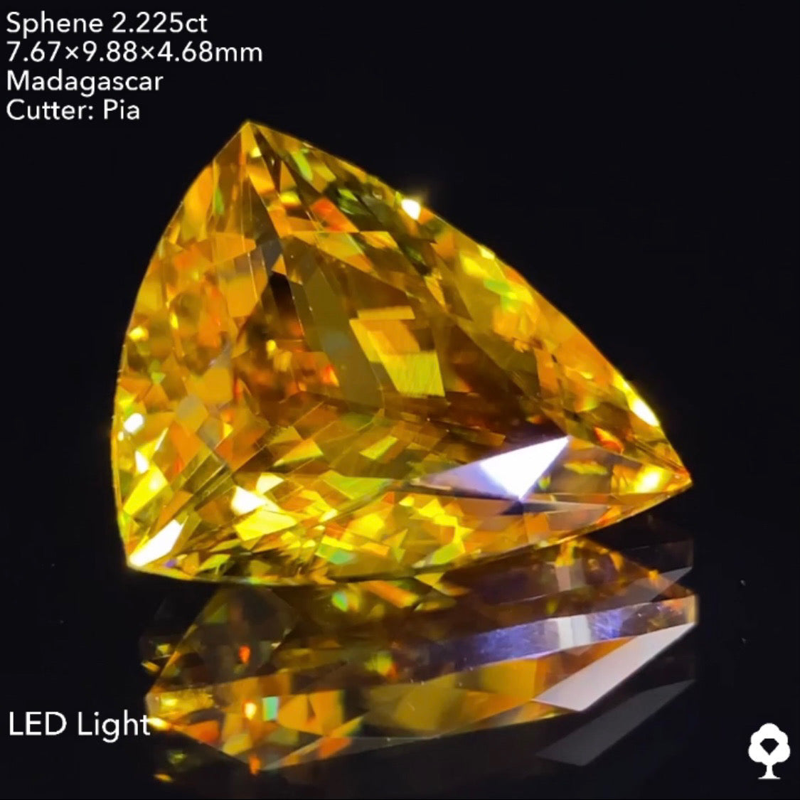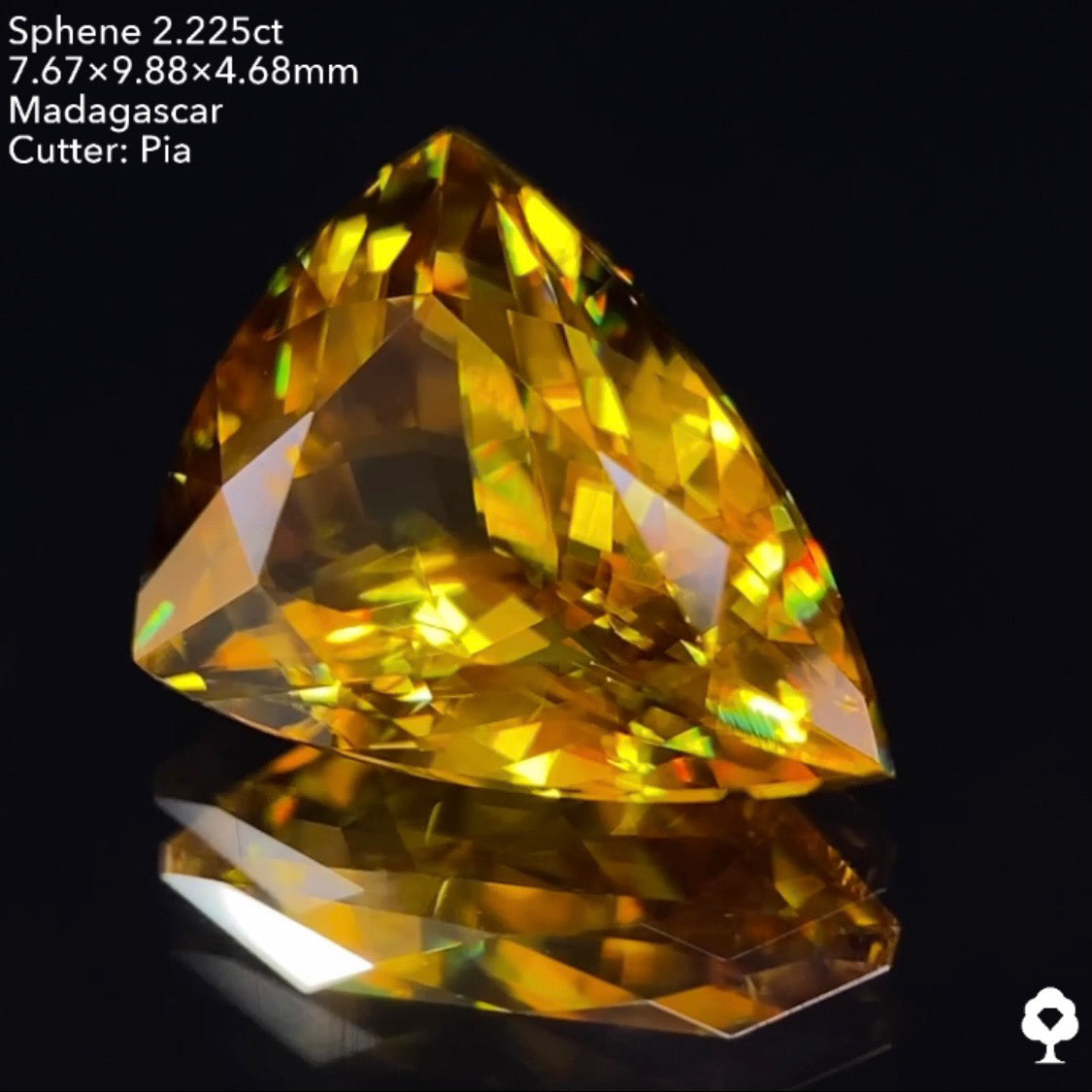 5/4(水)22:00終了!【24時間リレー1円オークション】研ぎ澄まされたカットとトリリアントが屈折率と分散度を最大限に引き出す★スフェーン2.225ct ピアッちゃん作品