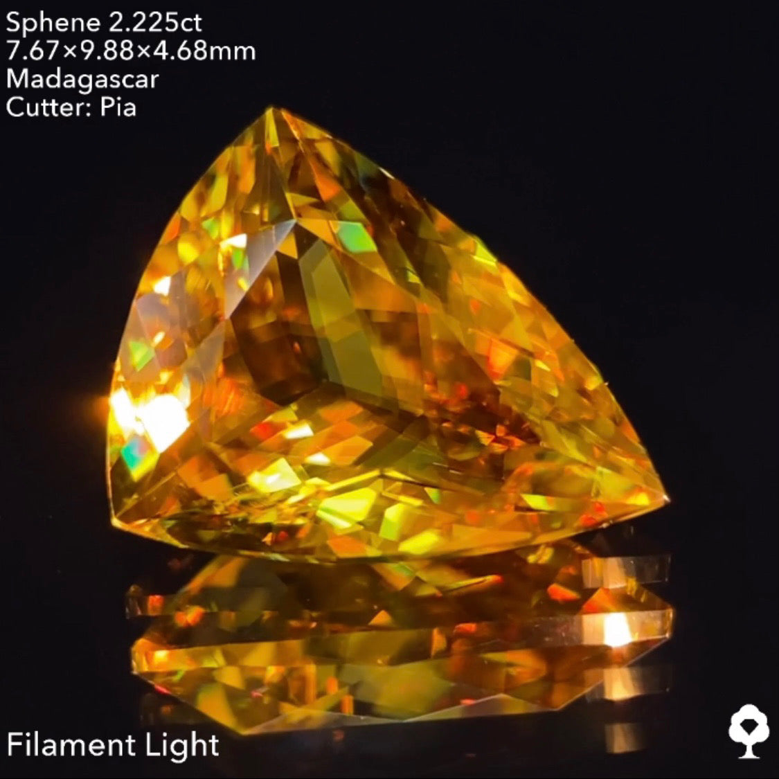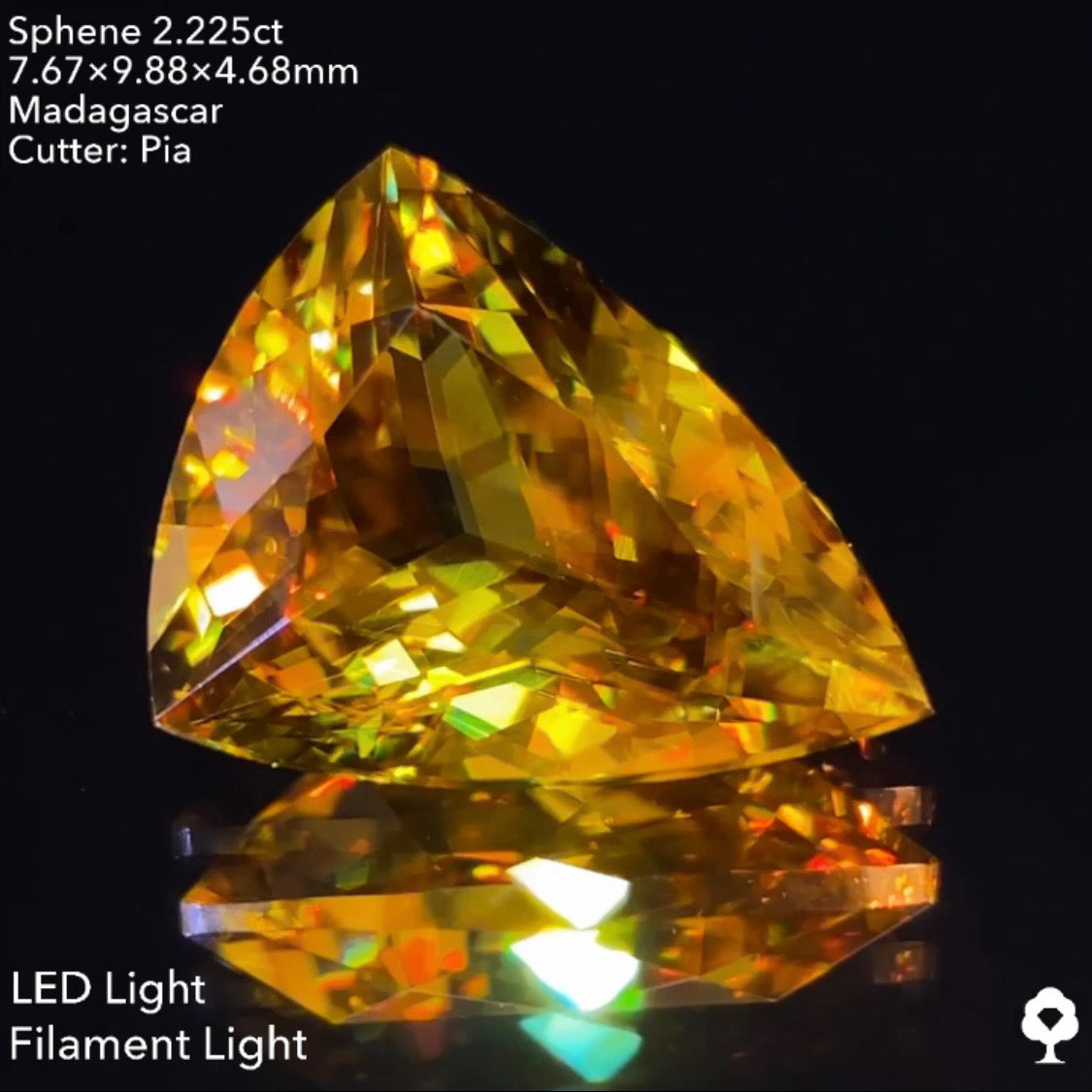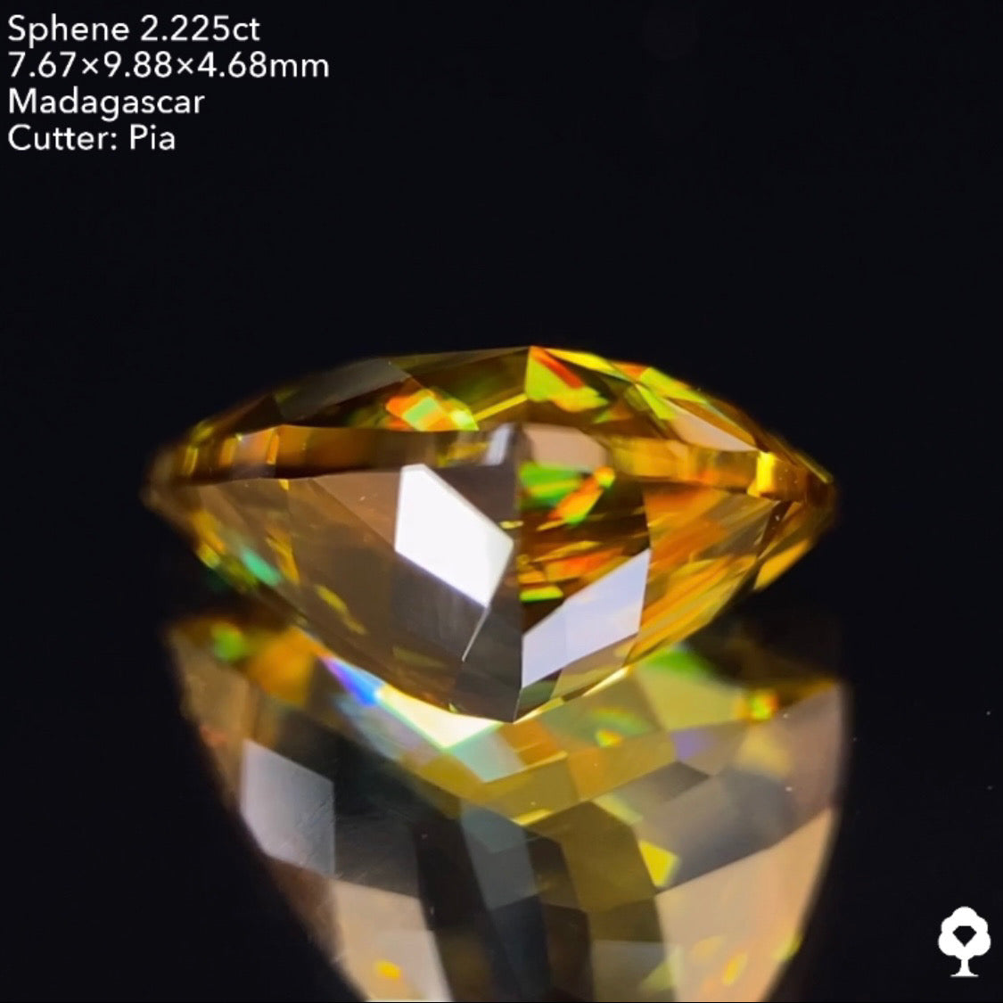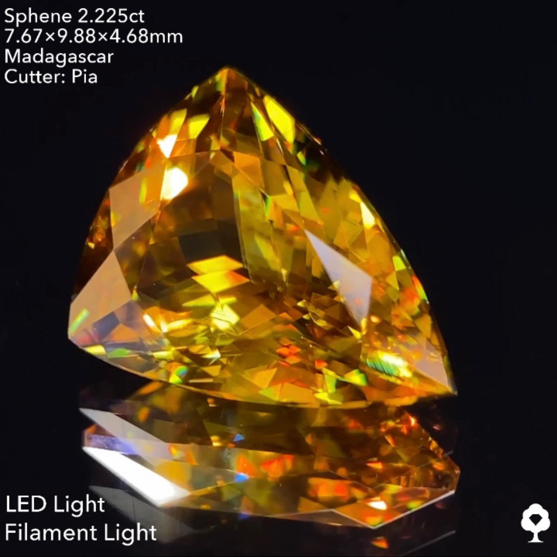 5/4(水)22:00終了!【24時間リレー1円オークション】研ぎ澄まされたカットとトリリアントが屈折率と分散度を最大限に引き出す★スフェーン2.225ct ピアッちゃん作品