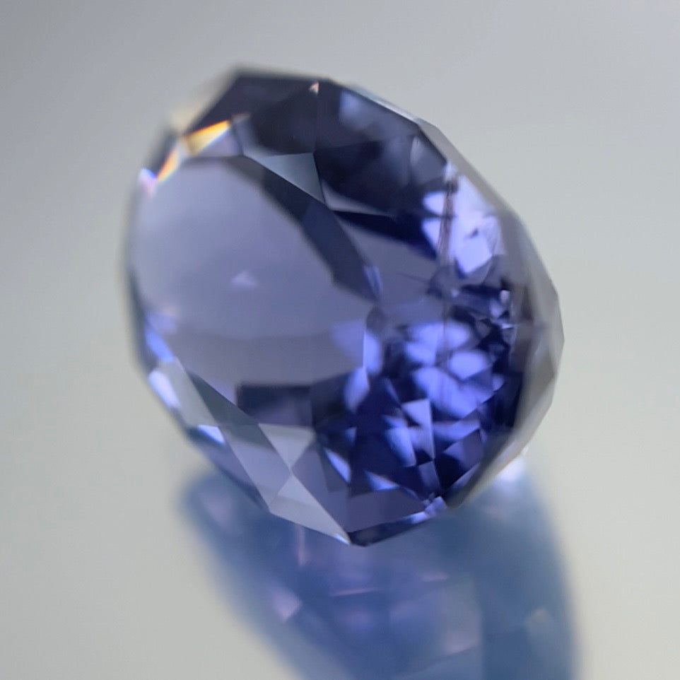 程よい明るさのアイオライトパープルが全体を占めますが、多少性のあるアイオライトらしく色が抜けている箇所があり、パープルの輝きに加えシルバーの輝きを同時に楽しめます。
