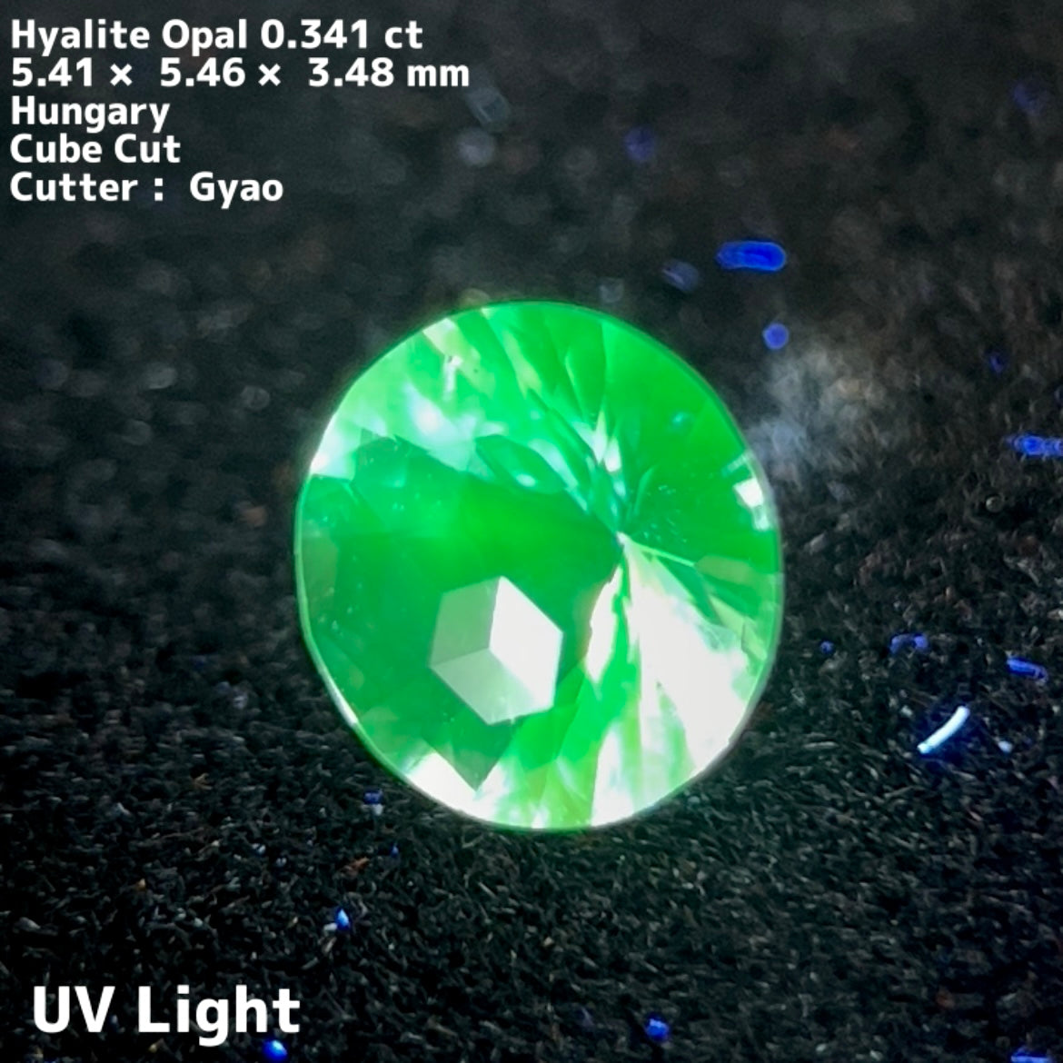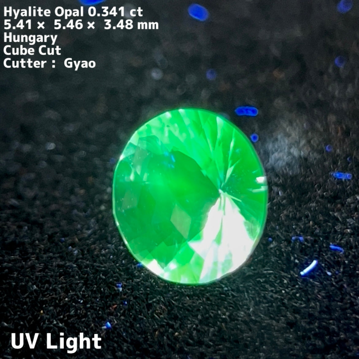 UVライトを当てると蛍のような蛍光グリーンが美しく、均一ではない蛍光性が自然のつくりあげる芸術性を感じさせてくれます。