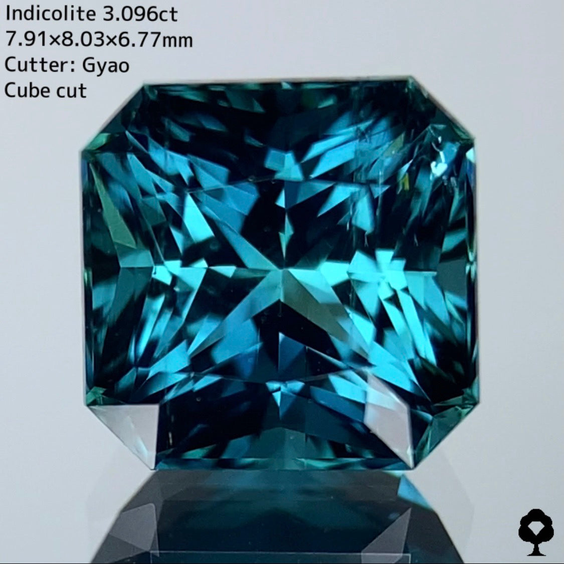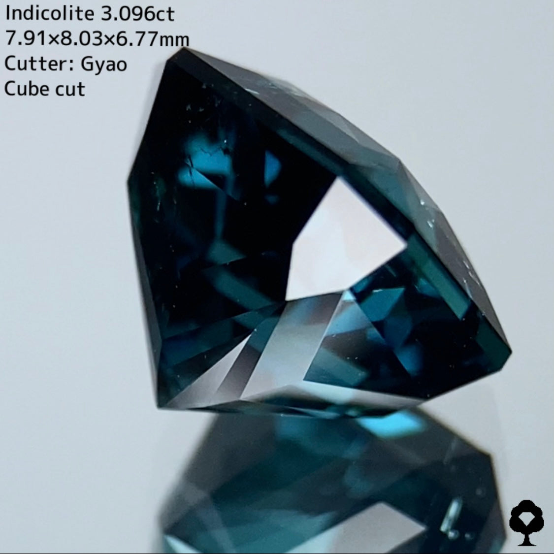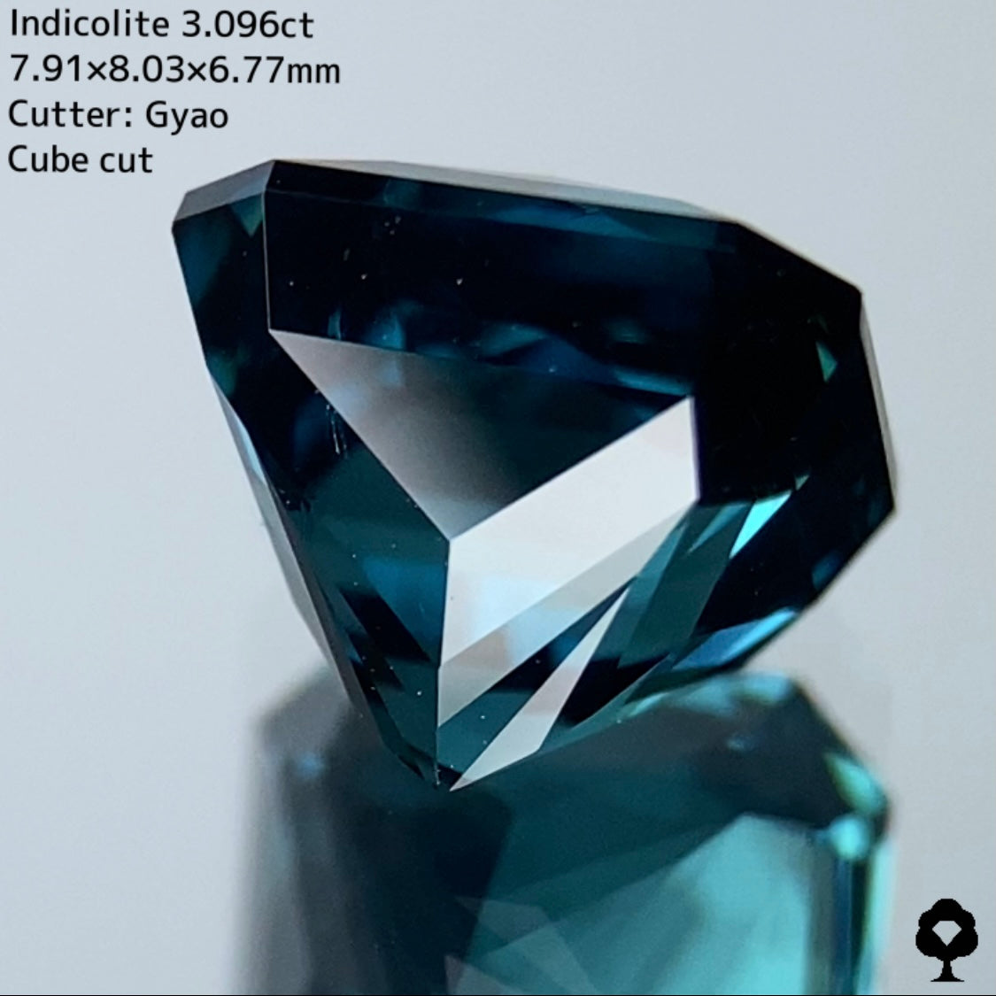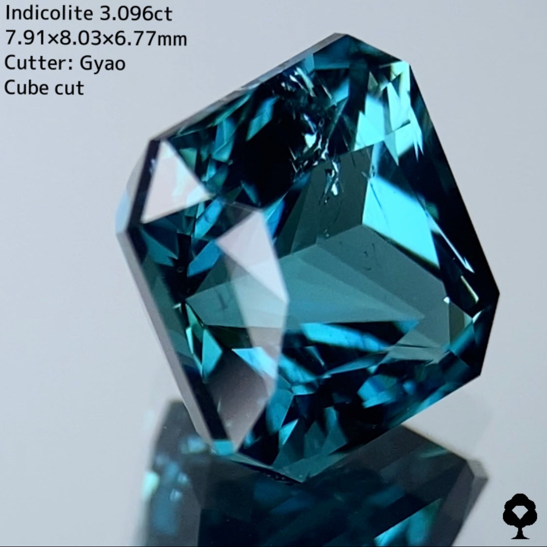 大粒・美色・芸術カットの傑作プリンセスアッシャーキューブカット★インディゴライト 3.096ct【Cube cut】