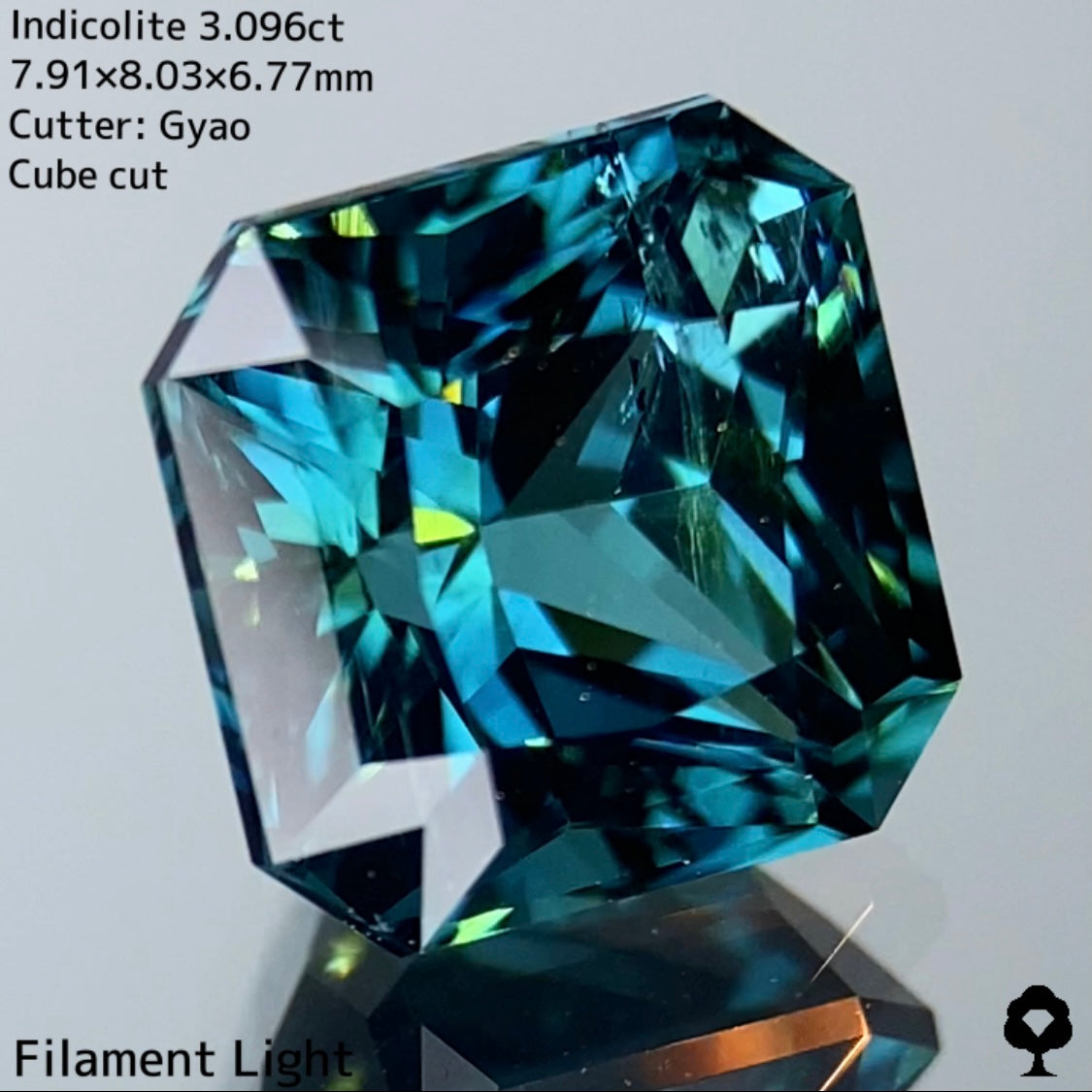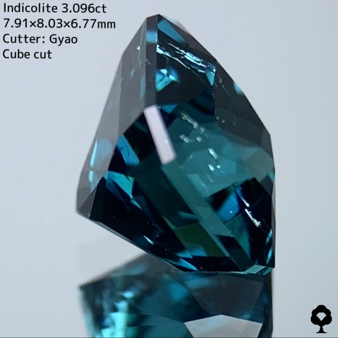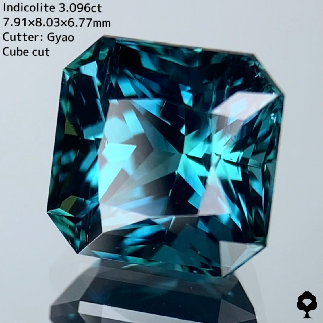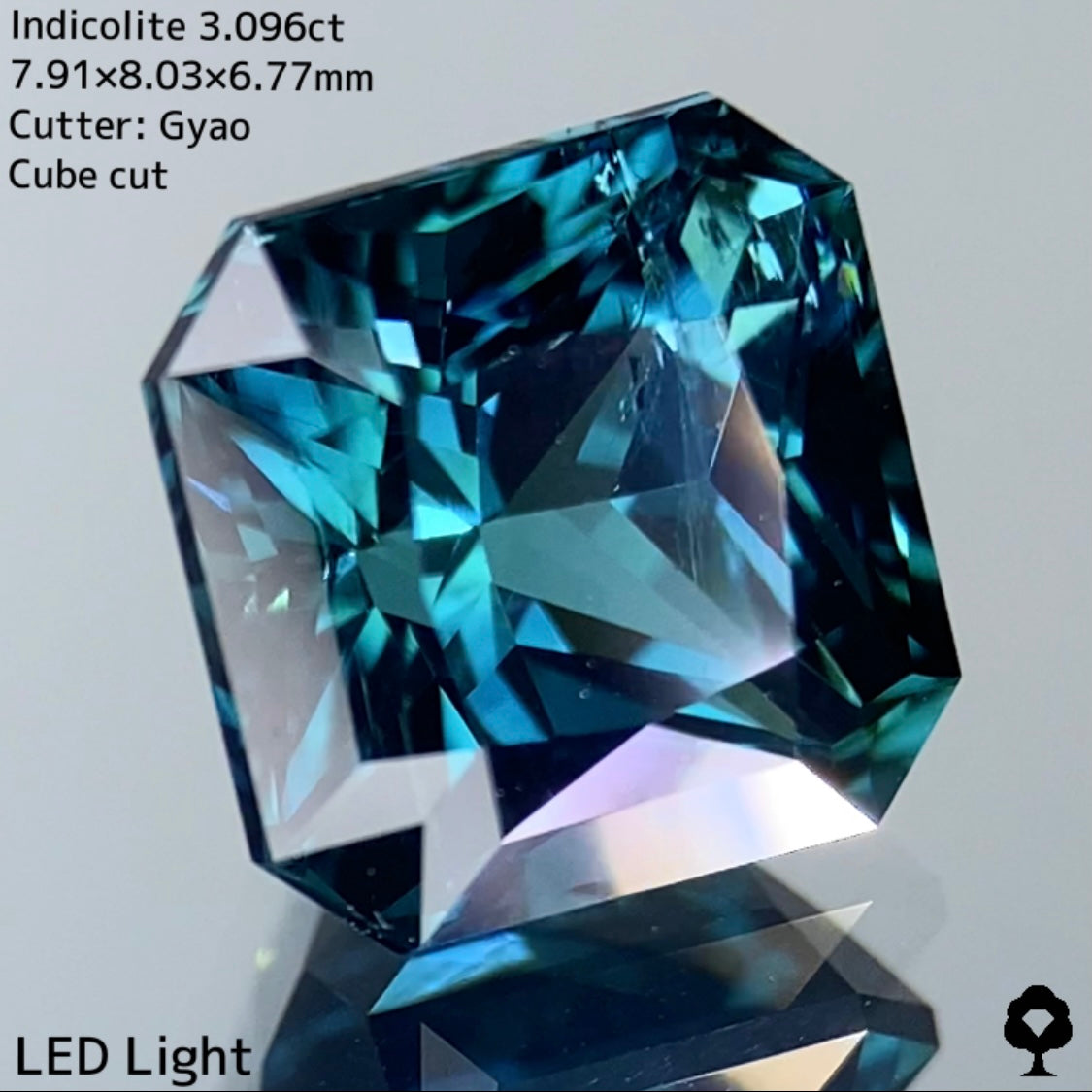 大粒・美色・芸術カットの傑作プリンセスアッシャーキューブカット★インディゴライト 3.096ct【Cube cut】