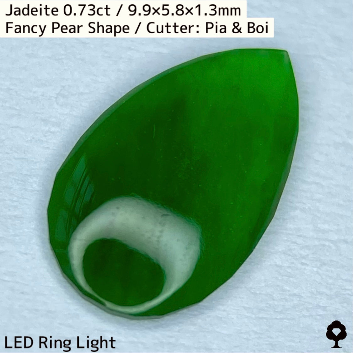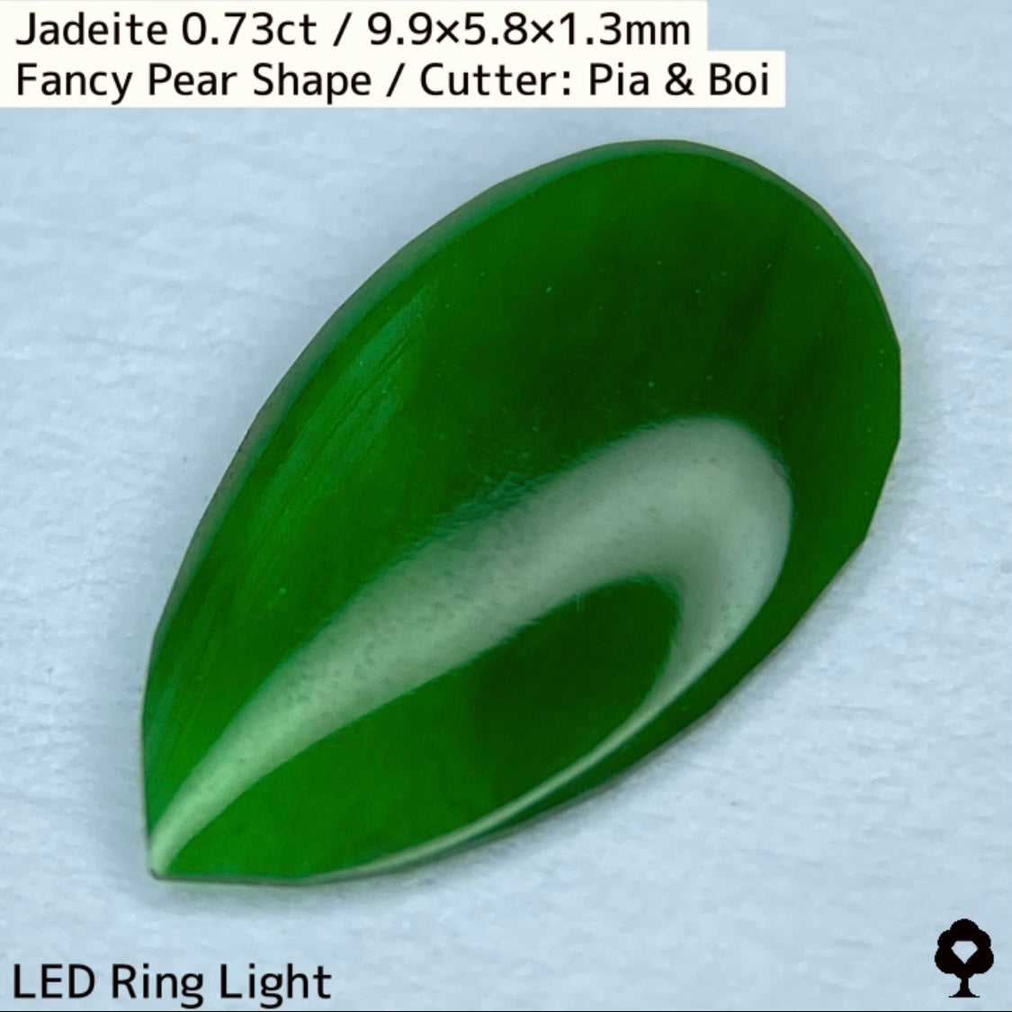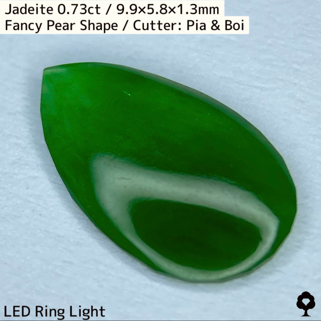 【抽選販売2/14(水)21時のライブで〆切抽選】翡翠0.73ct★先端の濃淡が可愛いさりげなく縁取られたペアシェイプ