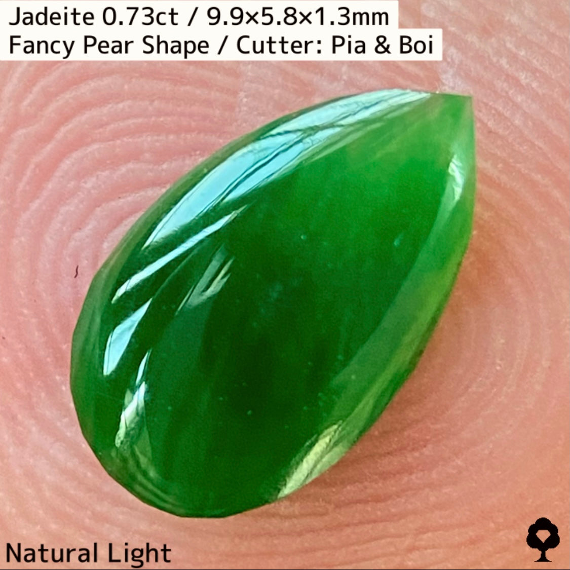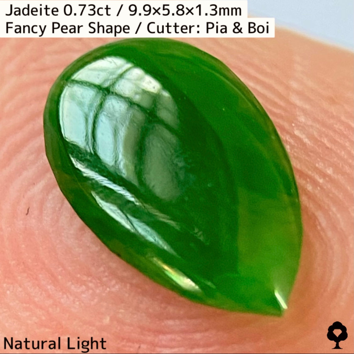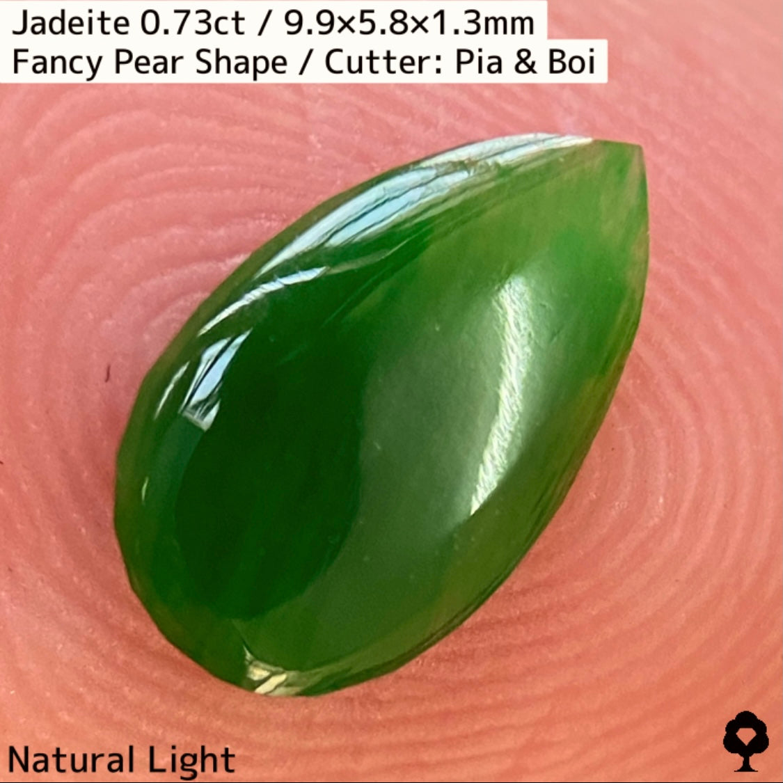 【抽選販売2/14(水)21時のライブで〆切抽選】翡翠0.73ct★先端の濃淡が可愛いさりげなく縁取られたペアシェイプ