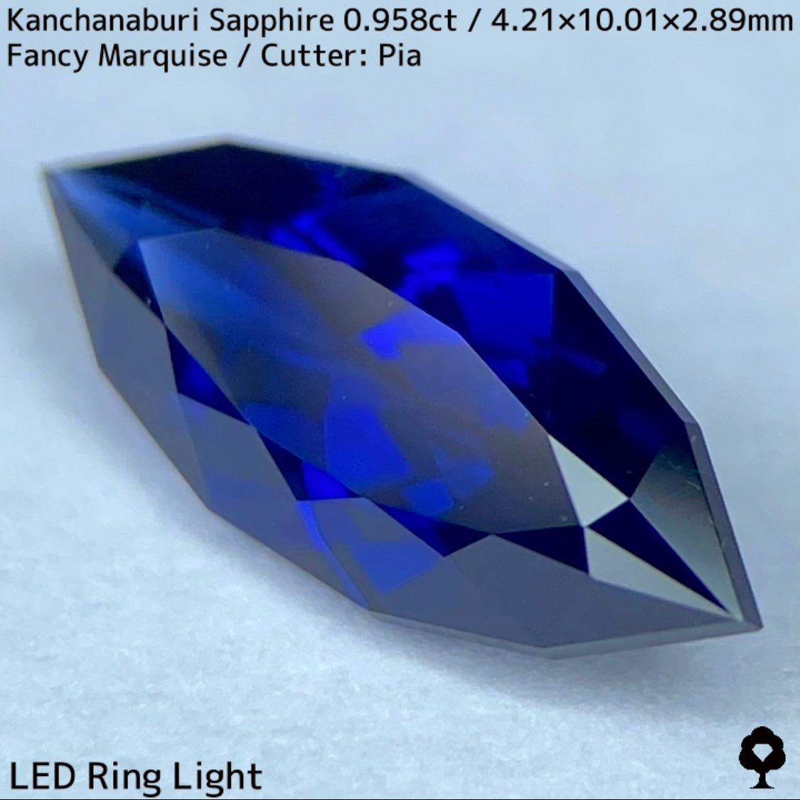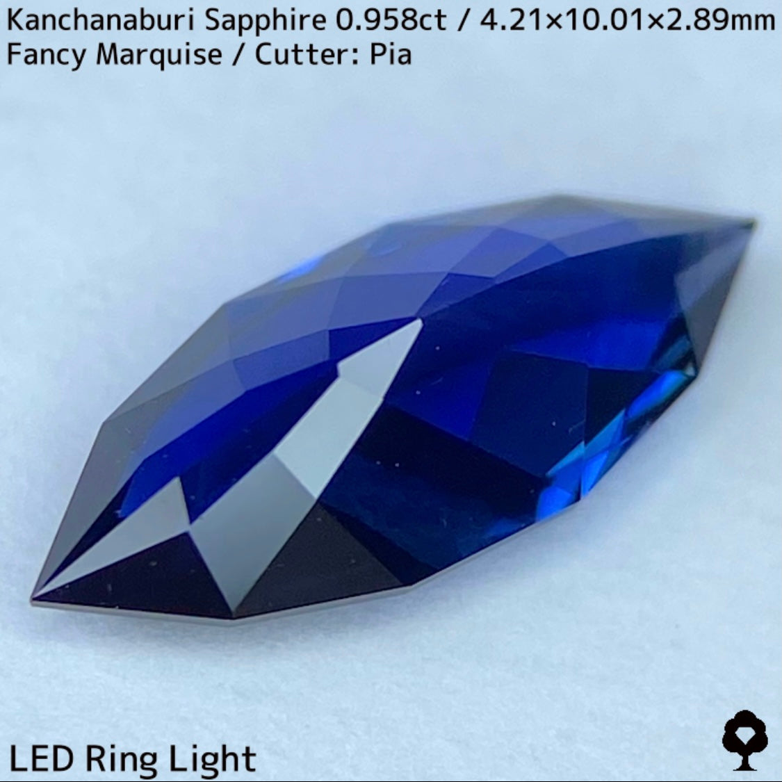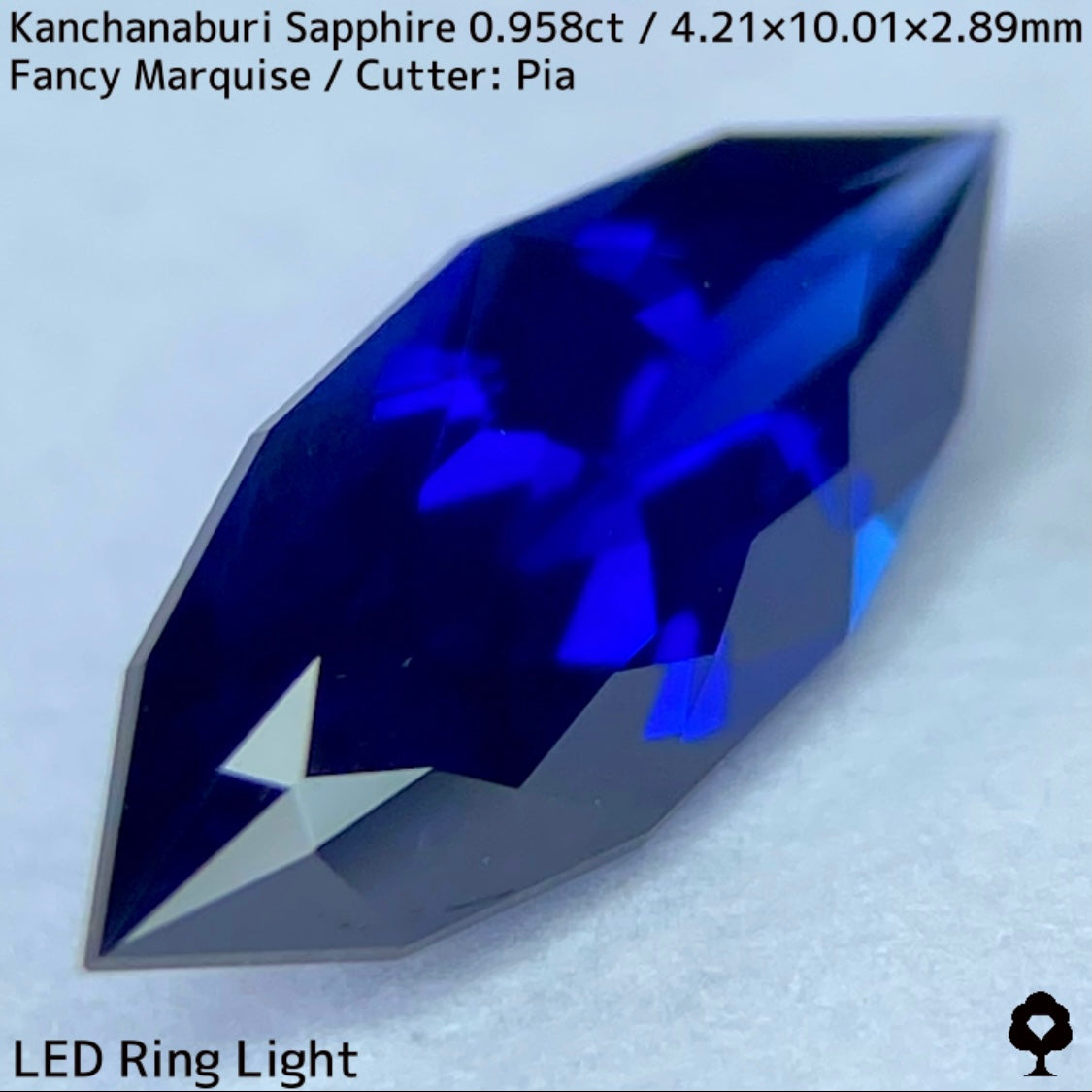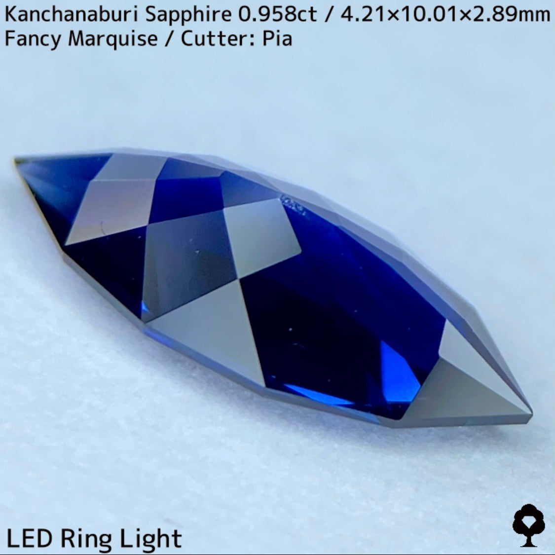 カンチャナブリー産サファイア0.985ct★カンチャらしい少しスリーピーな美しいロイヤルブルー系のファンシーマーキス