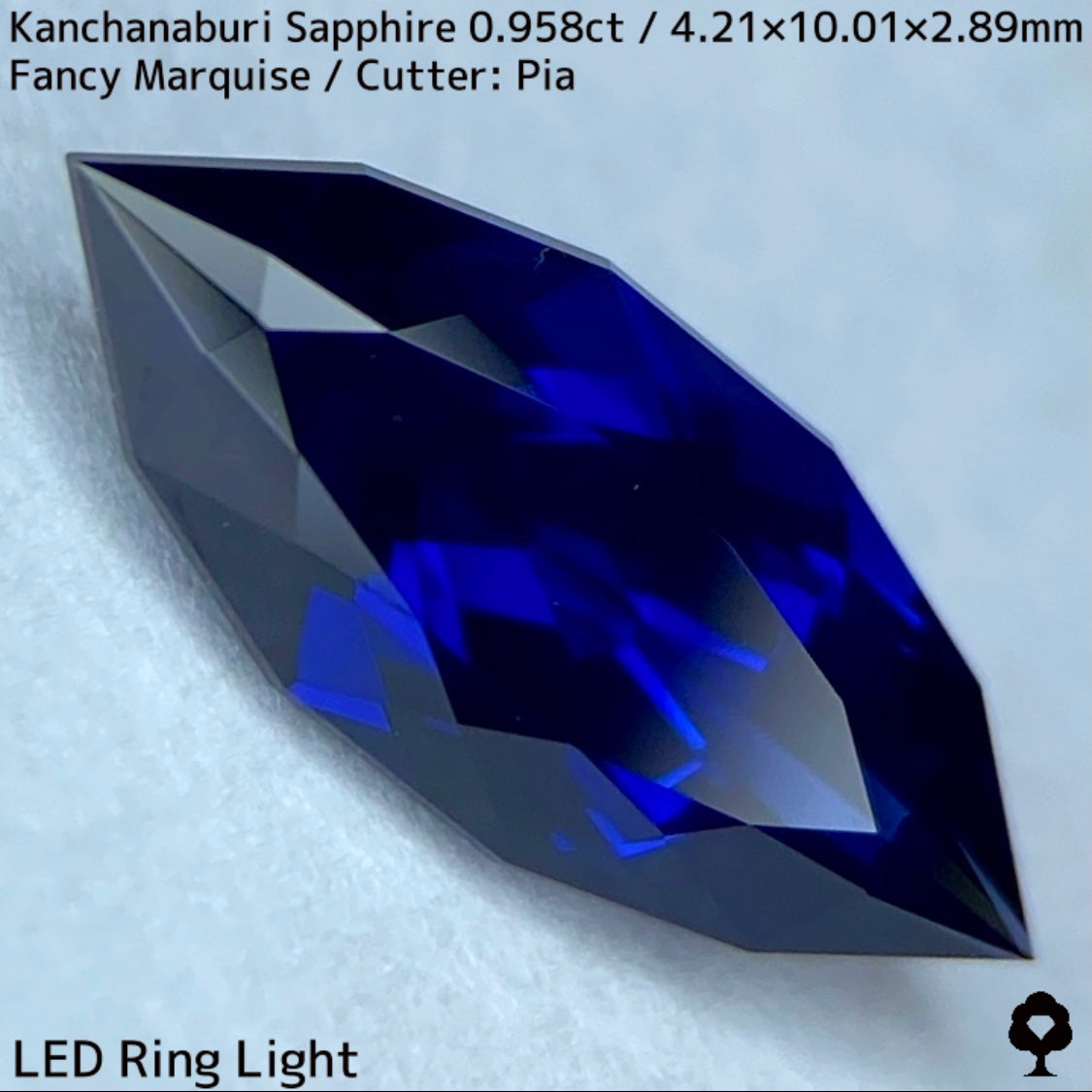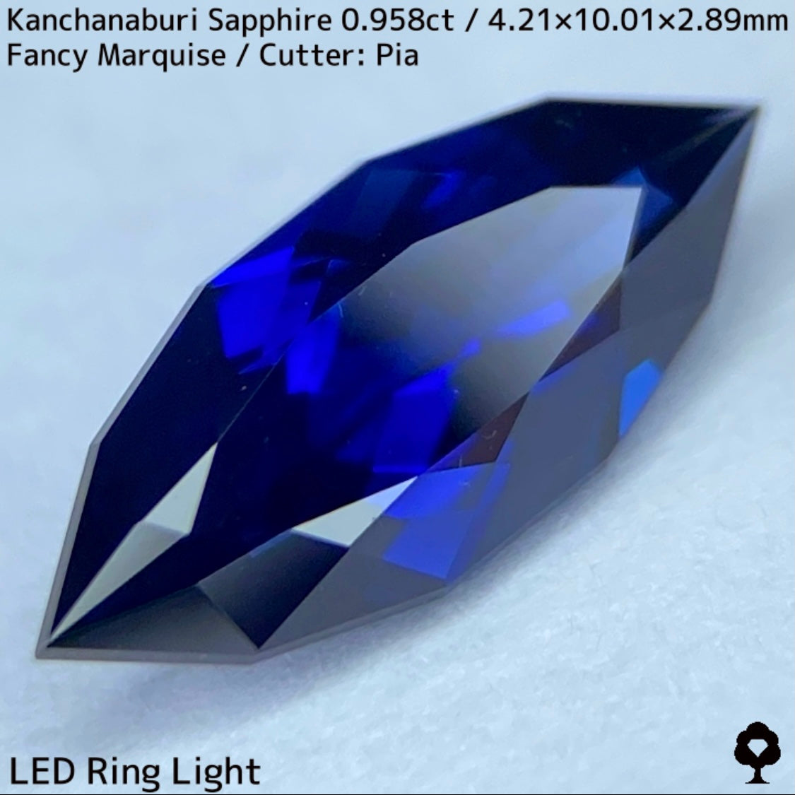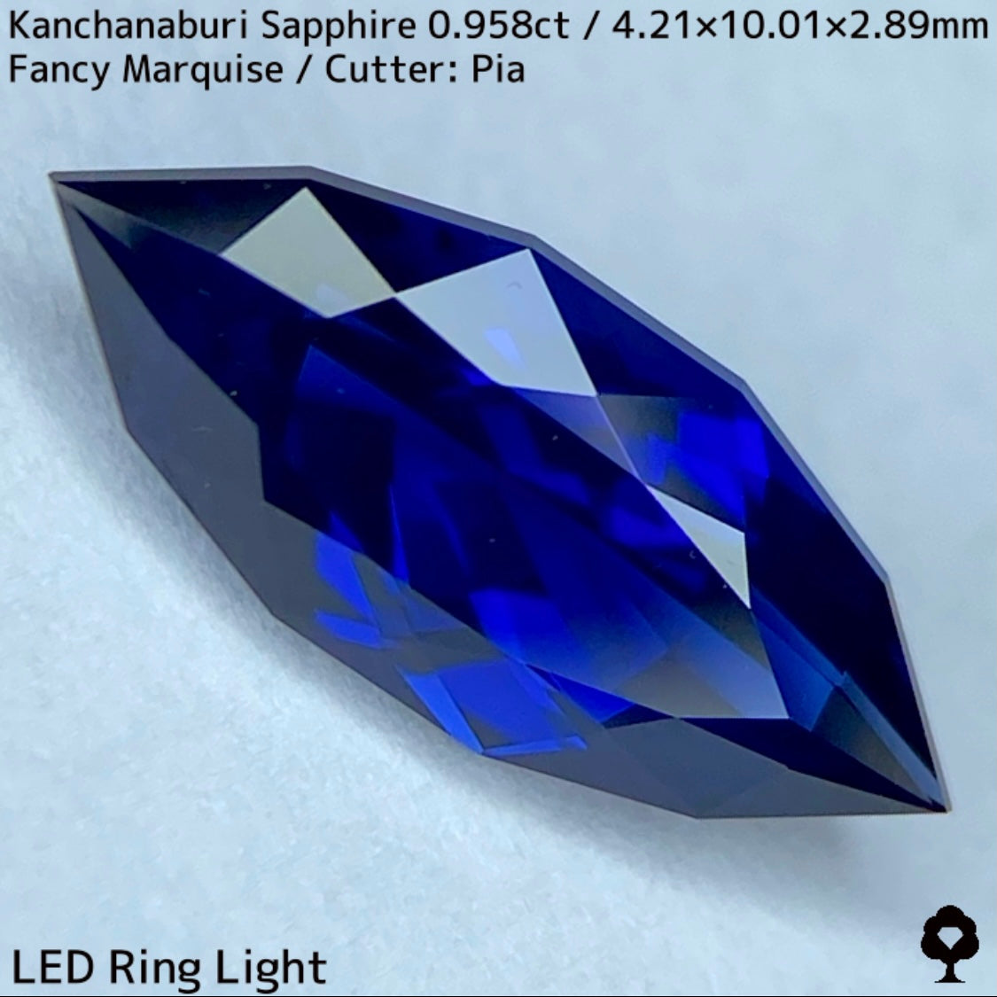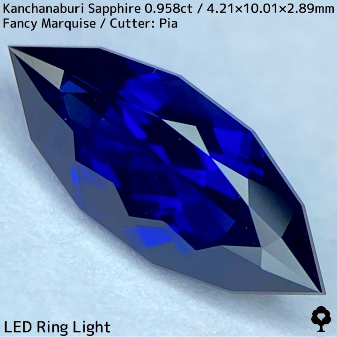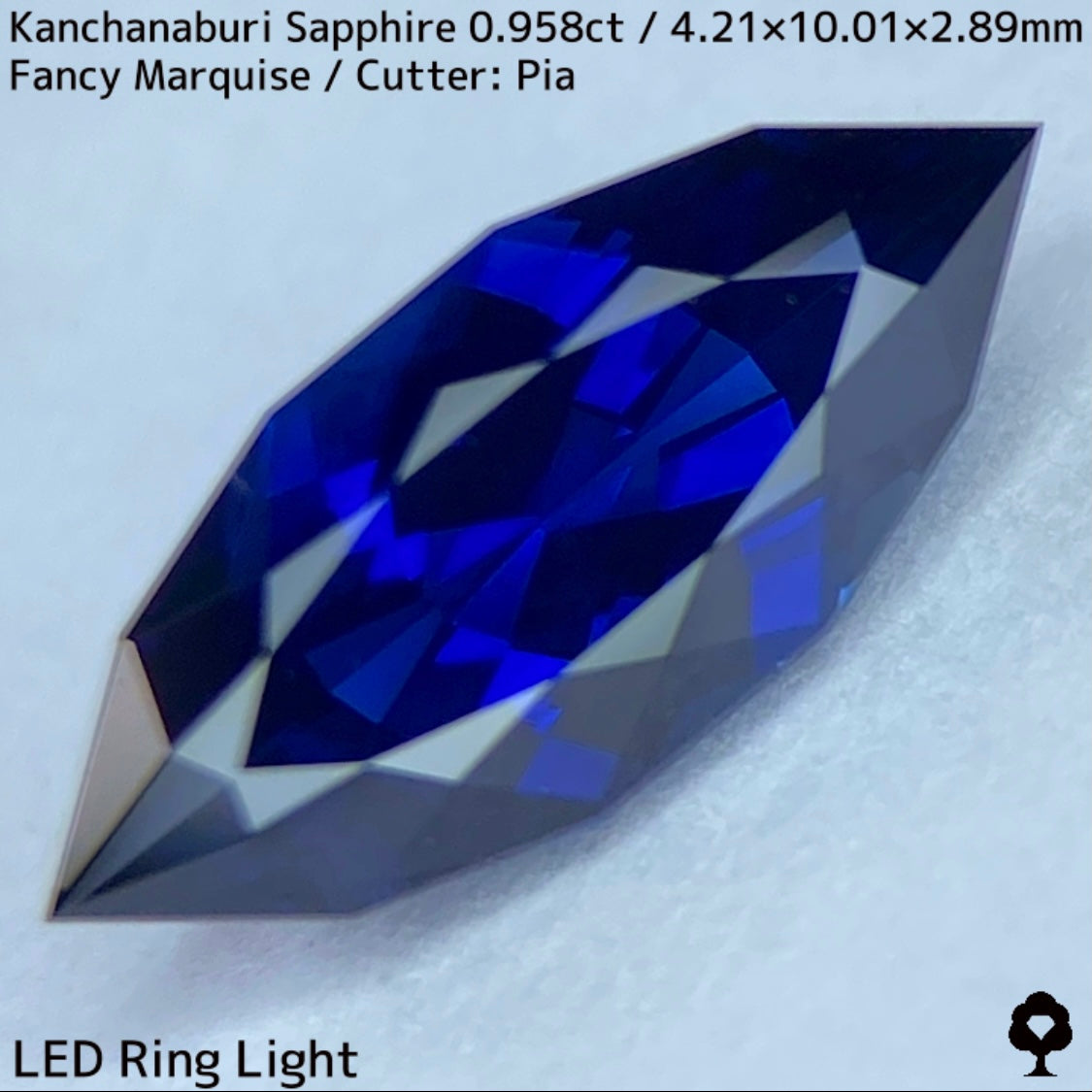 カンチャナブリー産サファイア0.985ct★カンチャらしい少しスリーピーな美しいロイヤルブルー系のファンシーマーキス