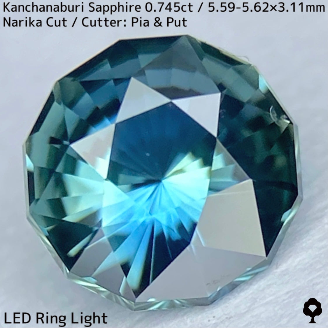 カンチャナブリーらしいシルキーさはわずかに感じられる程度で、透明度抜群の石質からタイ語で時計を意味するナリカーカットによる、時計の針のような鋭い煌めきが楽しめる一石です。