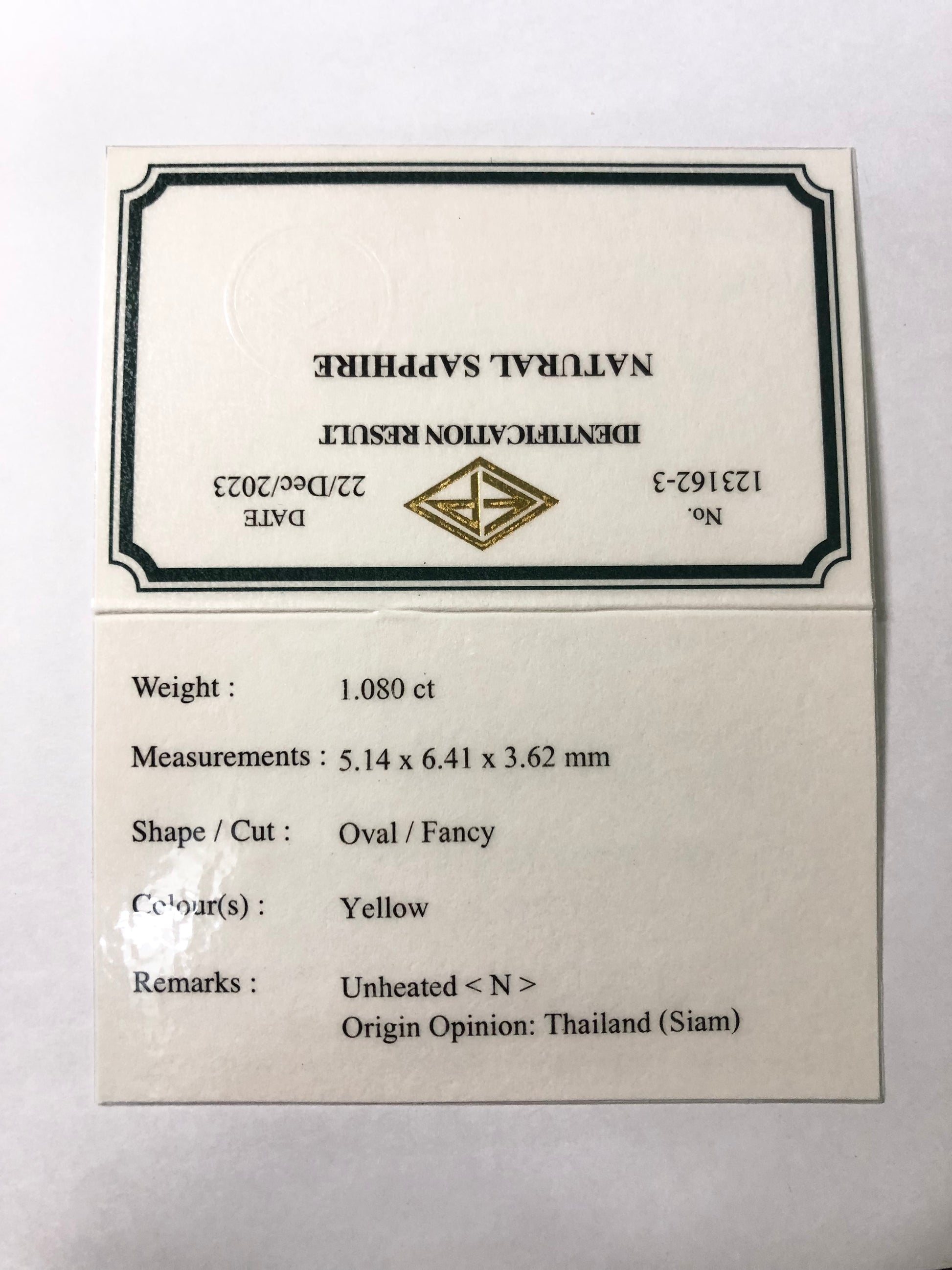 【お客さま専用】非加熱イエローサファイア1.080ct★お問合せ特別価格