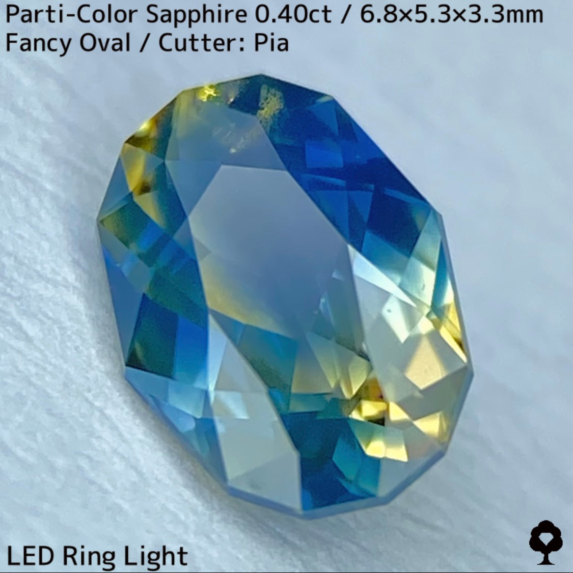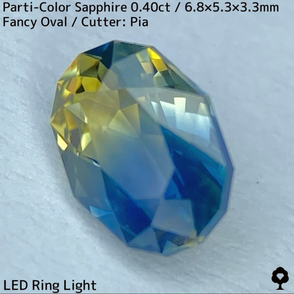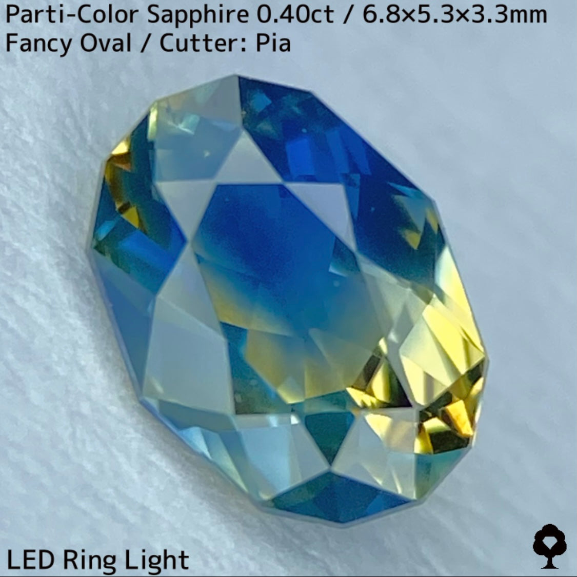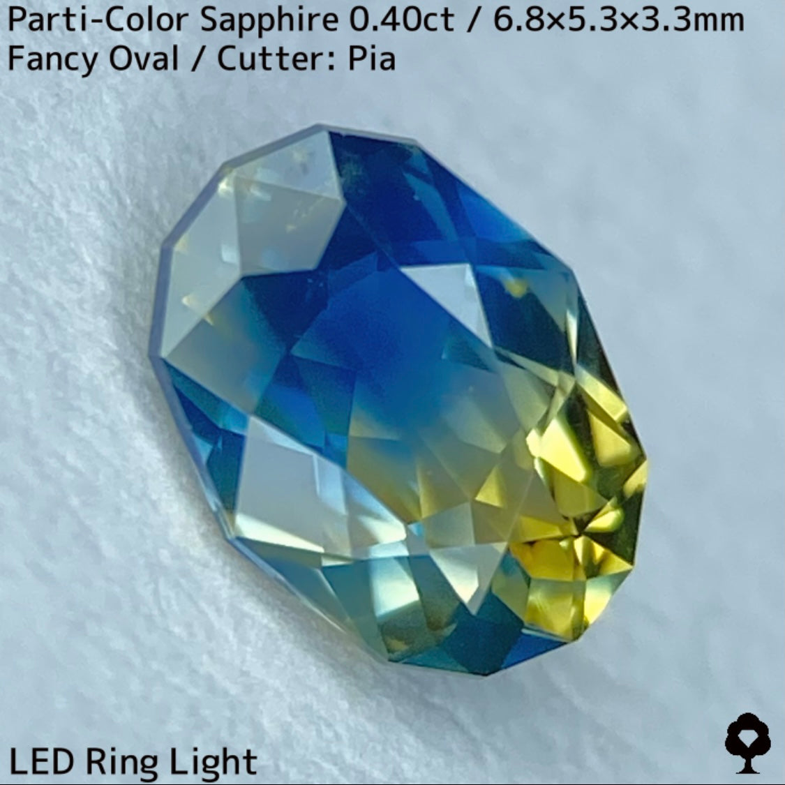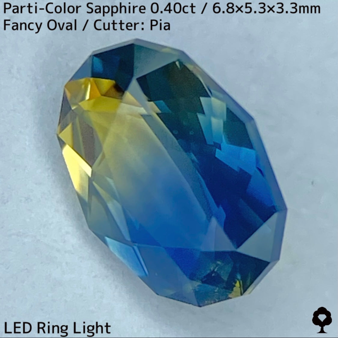 カンチャナブリー産パーティカラーサファイア0.40ct★鮮やかなイエローにシルキーブルーの色だまり